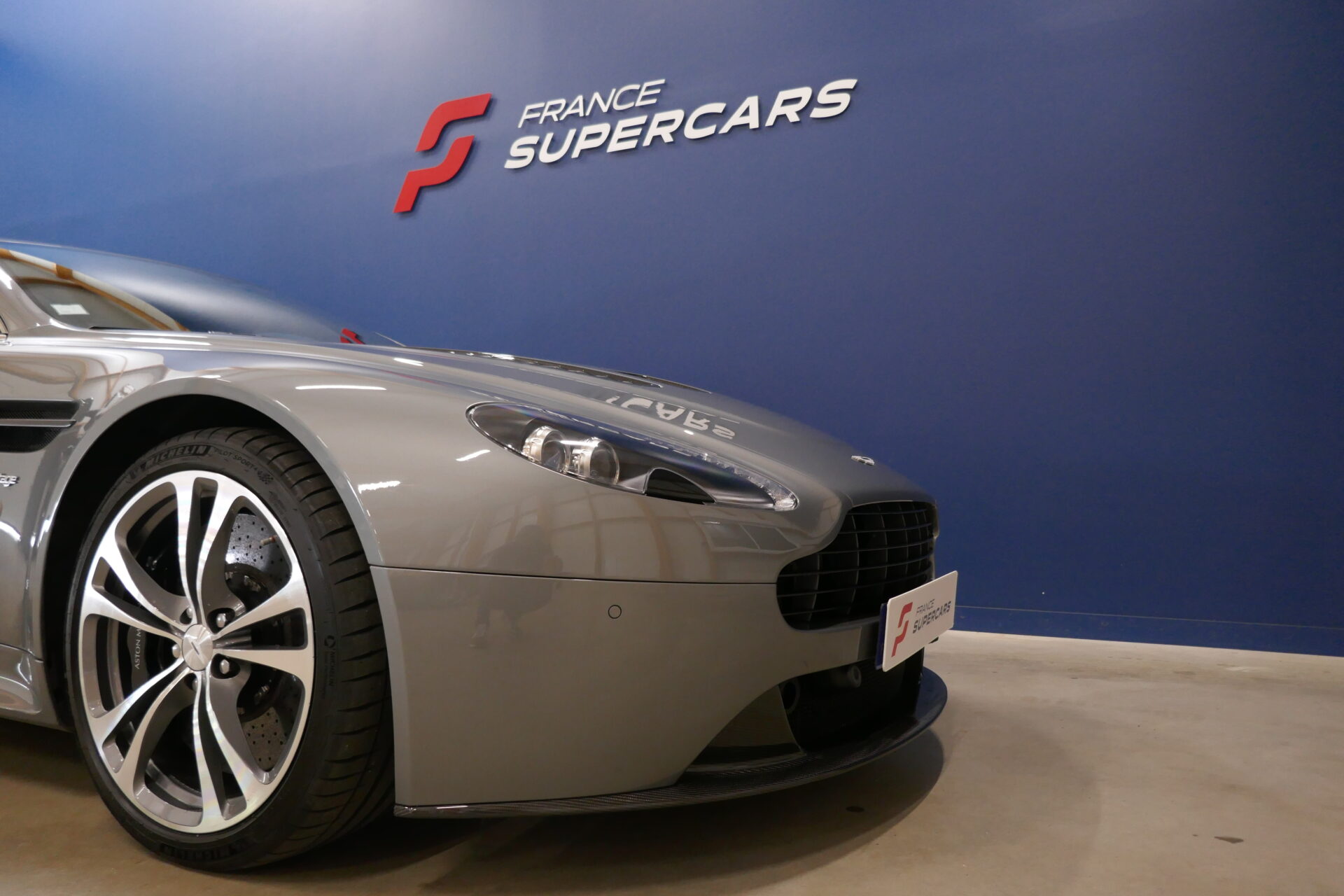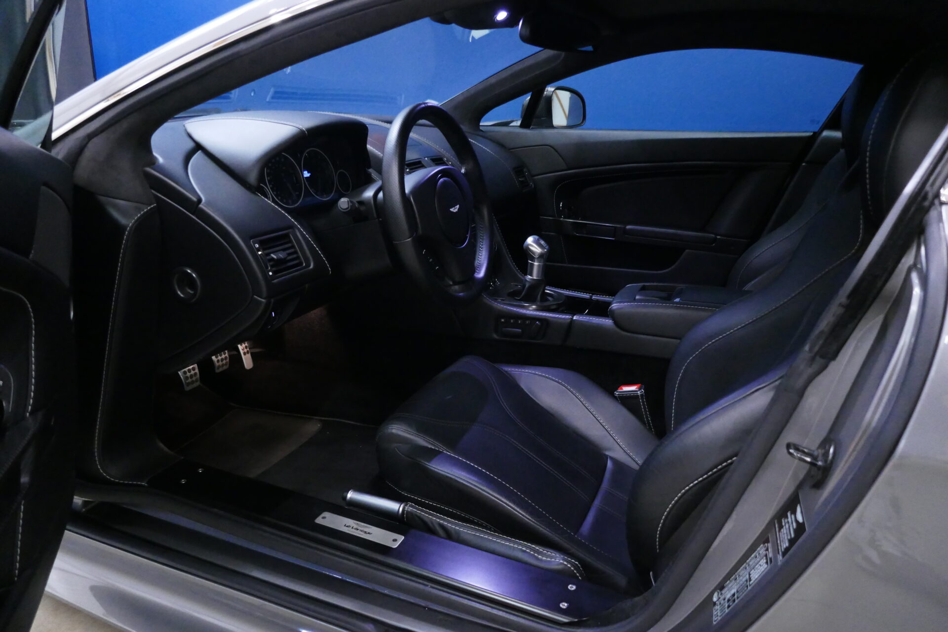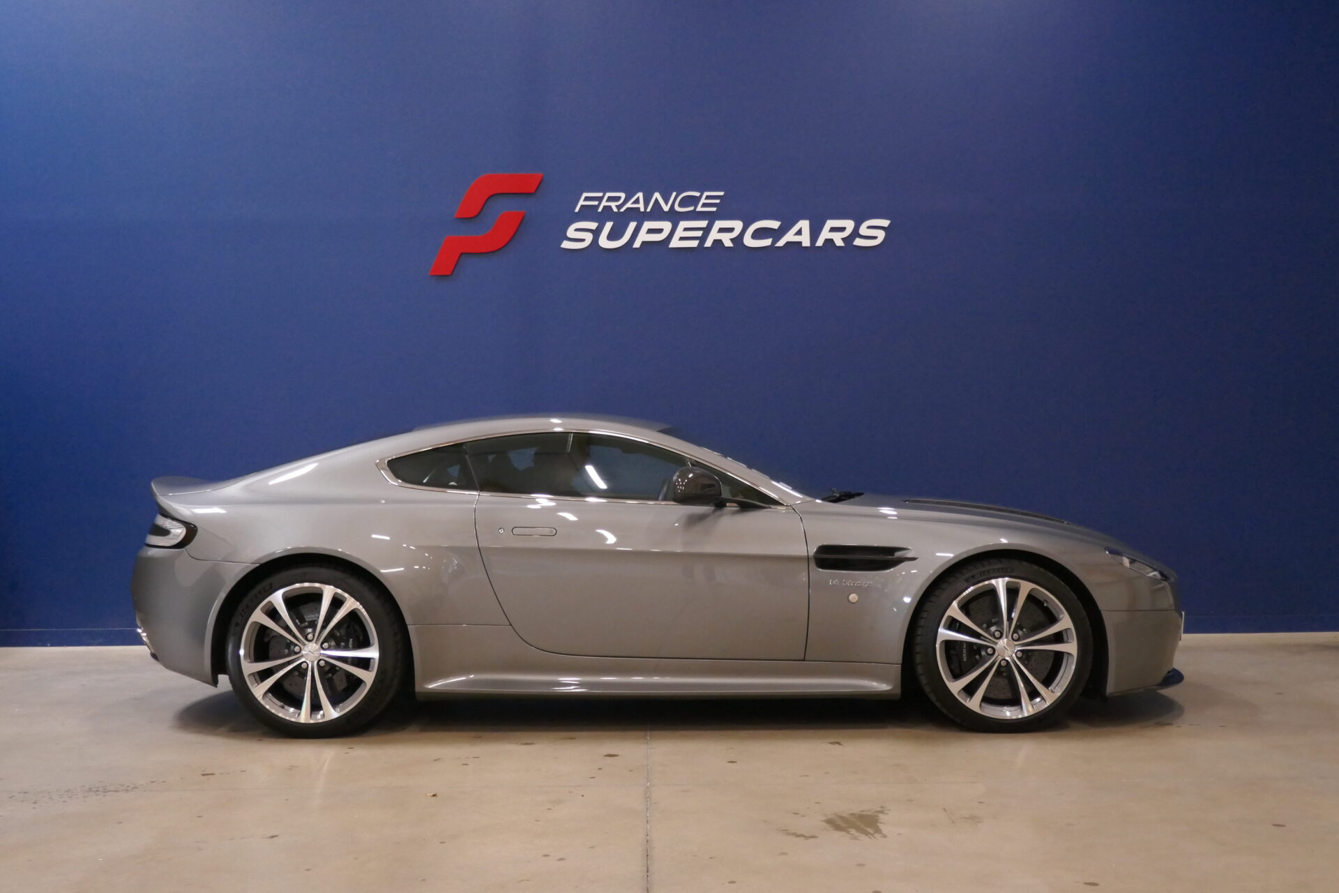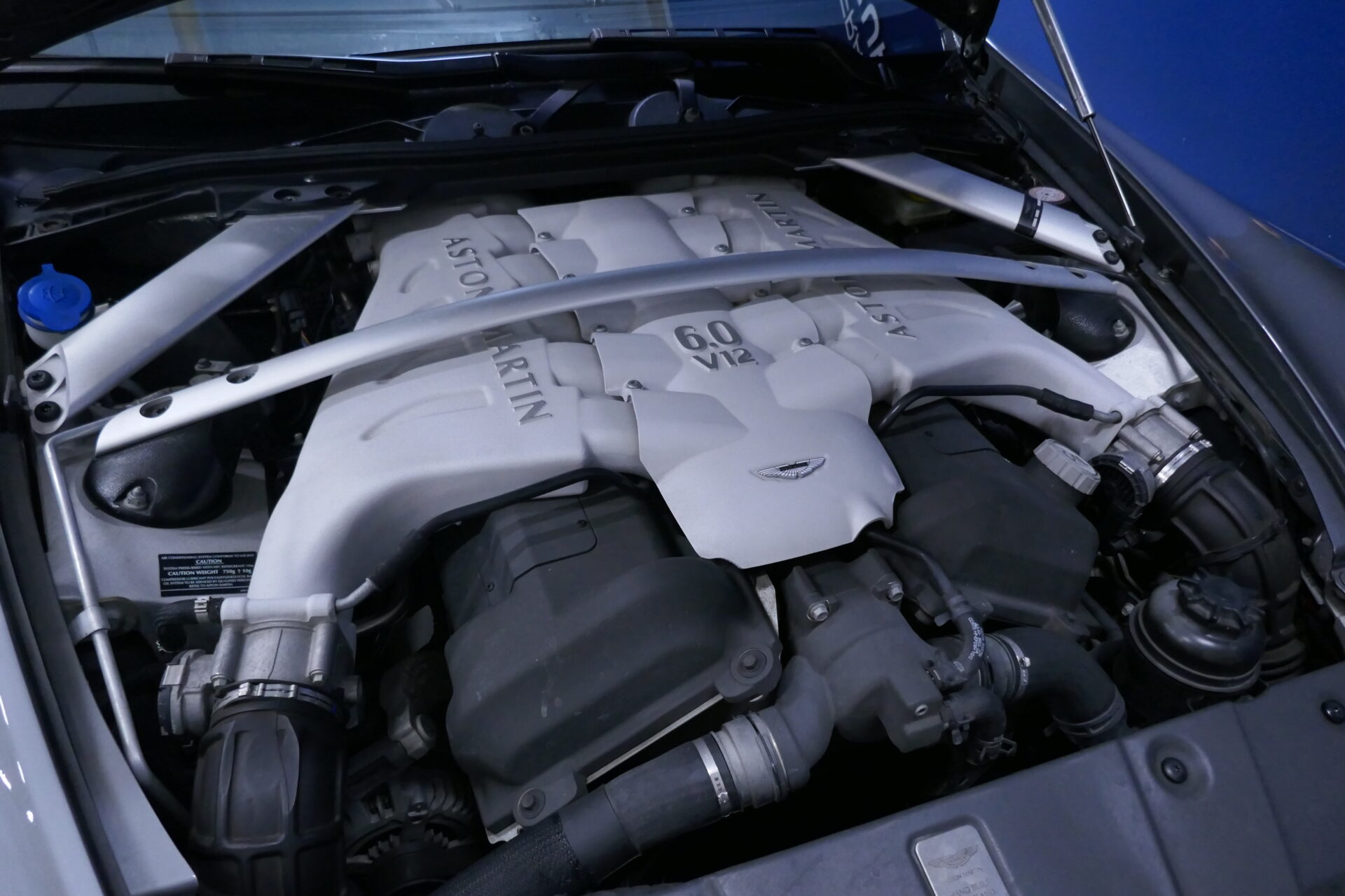 Au début de sa carrière, elle était donc équipée d’un V8 4.3, puis d’un 4.7 et c’est finalement en 2009 que la gamme s’agrémente d’une version animée par un V12, déjà présentée en 2007 sous la forme du concept car V12 Vantage RS. Alors que la V8 existait en boîte mécanique et Sportshift (séquentielle robotisée à simple embrayage), la V12 débarque uniquement en boîte manuelle. Elle reprenait l’ensemble moteur-boîte de la DBS (année modèle 2007), à savoir un majestueux V12 6.0 avec boite manuelle à 6 rapports.