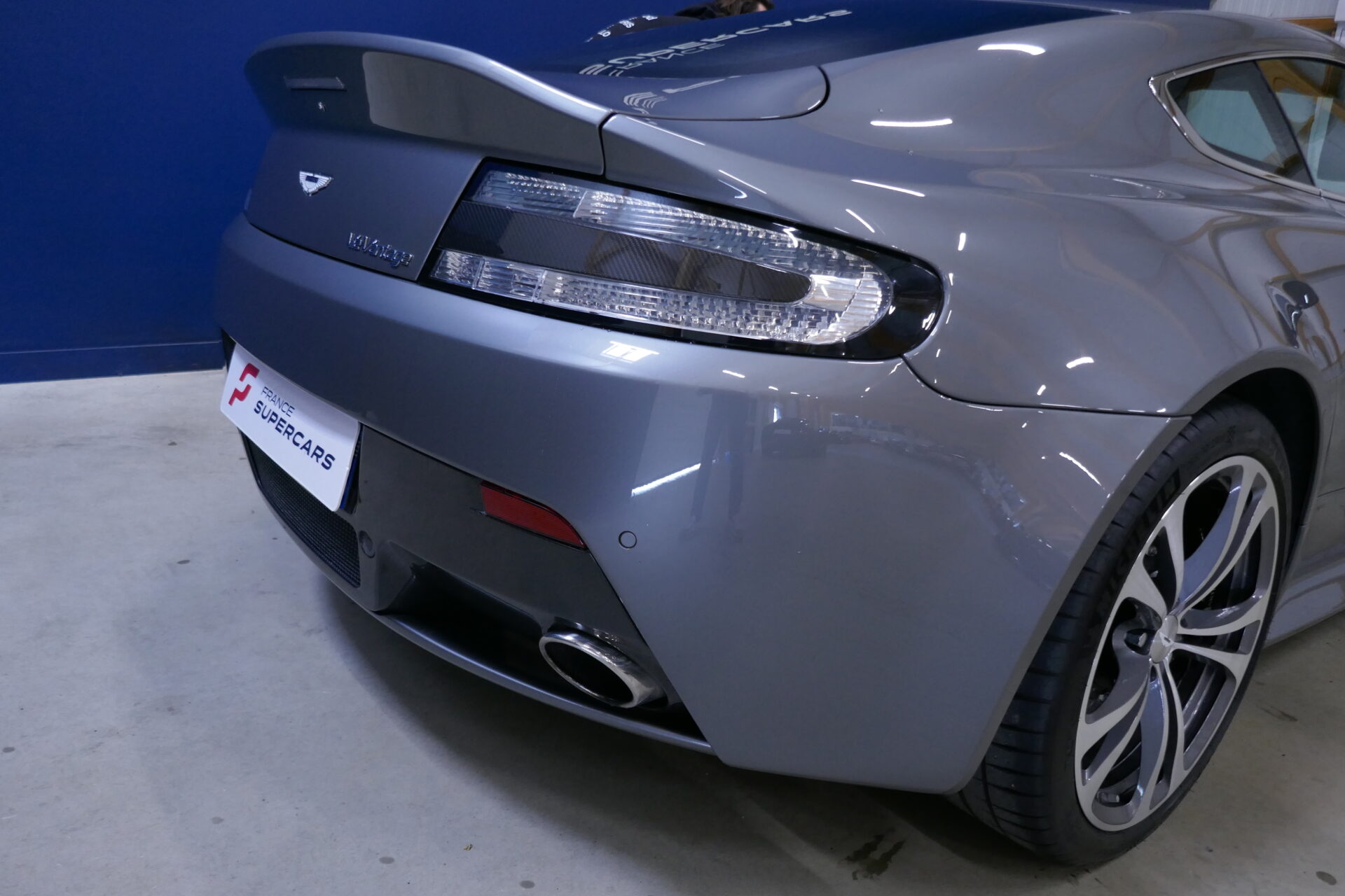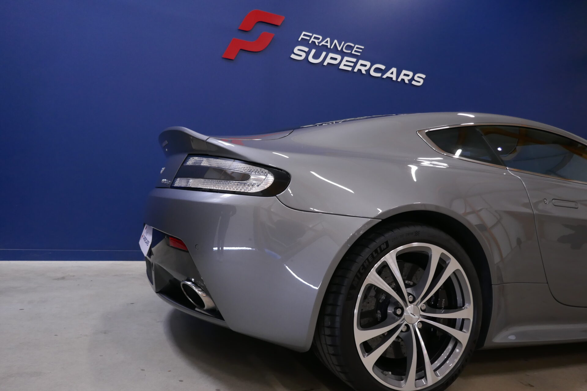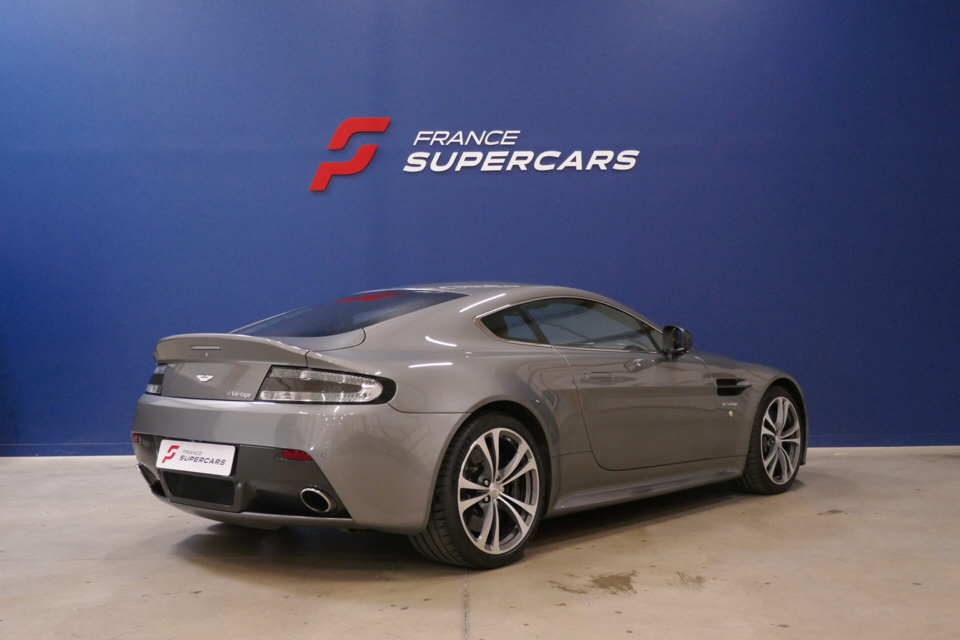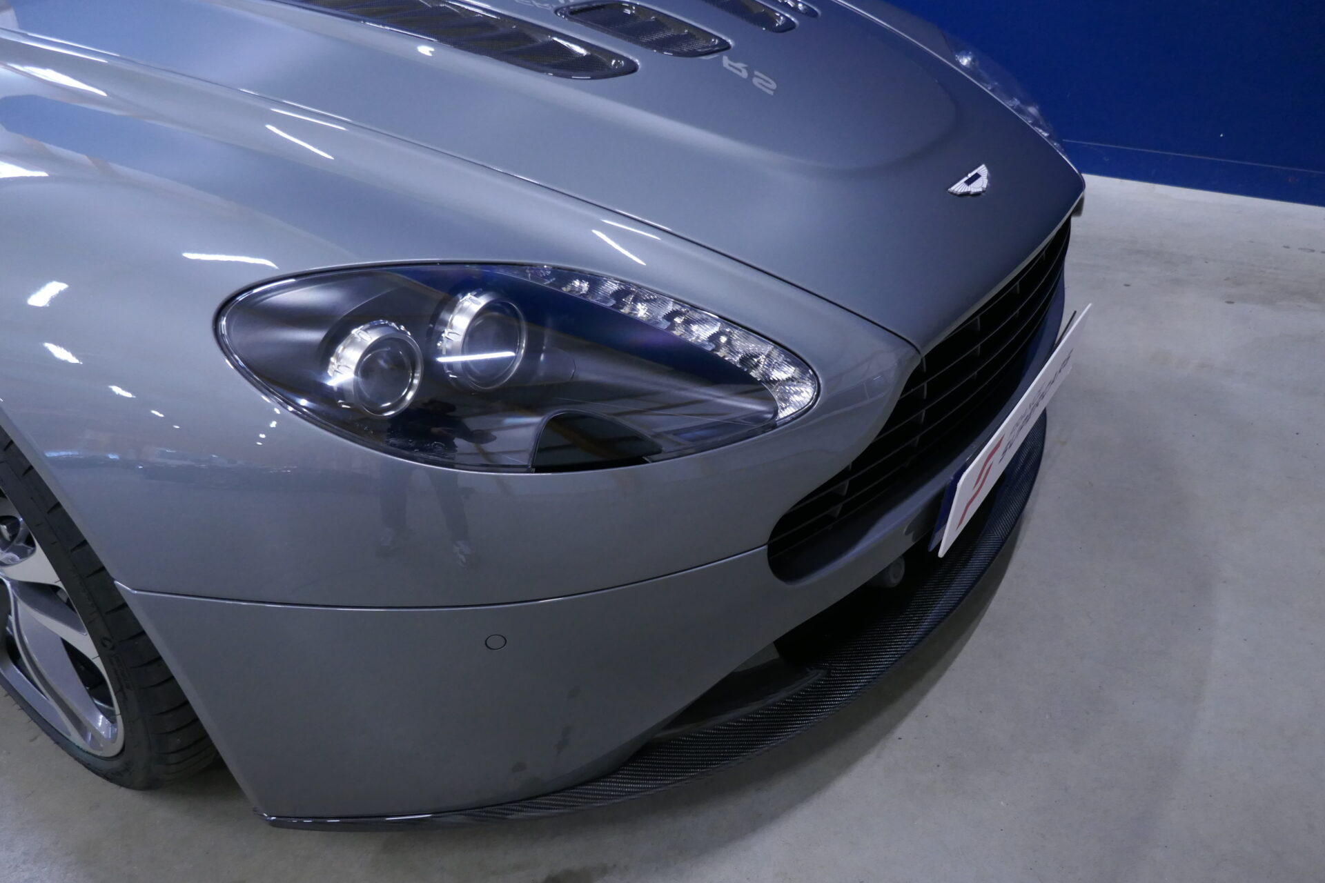Au début de sa carrière, elle était donc équipée d’un V8 4.3, puis d’un 4.7 et c’est finalement en 2009 que la gamme s’agrémente d’une version animée par un V12, déjà présentée en 2007 sous la forme du concept car V12 Vantage RS. Alors que la V8 existait en boîte mécanique et Sportshift (séquentielle robotisée à simple embrayage), la V12 débarque uniquement en boîte manuelle. Elle reprenait l’ensemble moteur-boîte de la DBS (année modèle 2007), à savoir un majestueux V12 6.0 avec boite manuelle à 6 rapports.