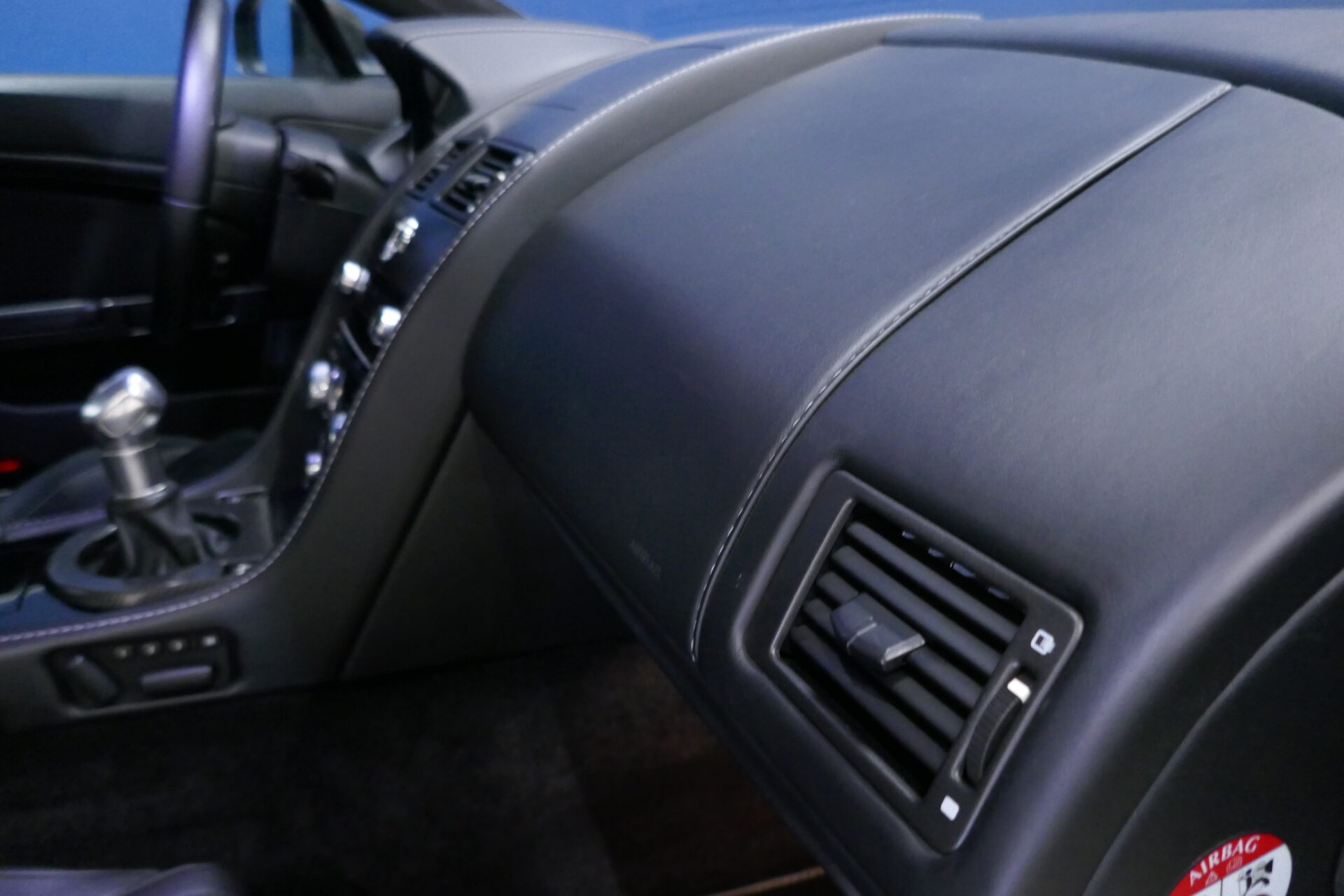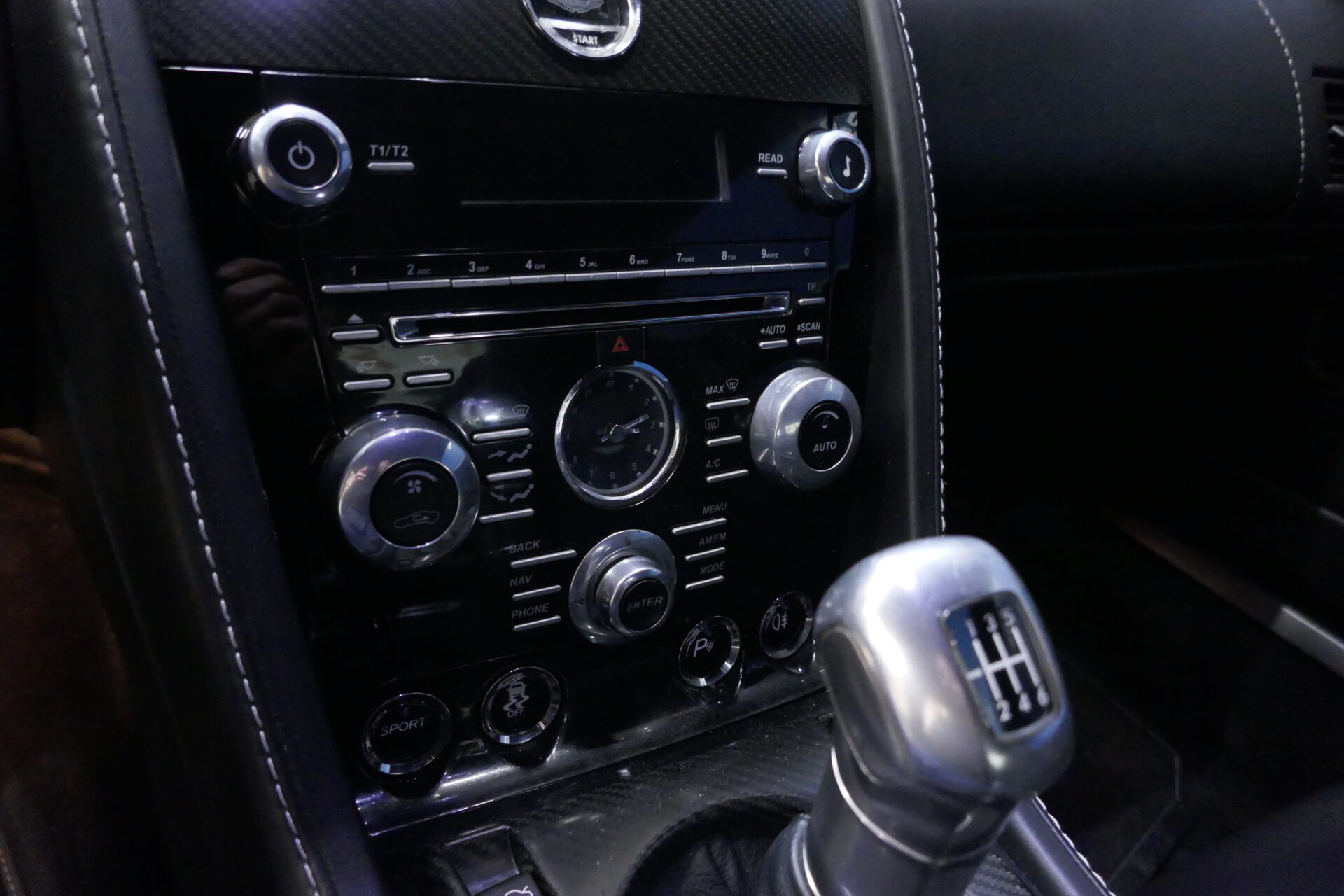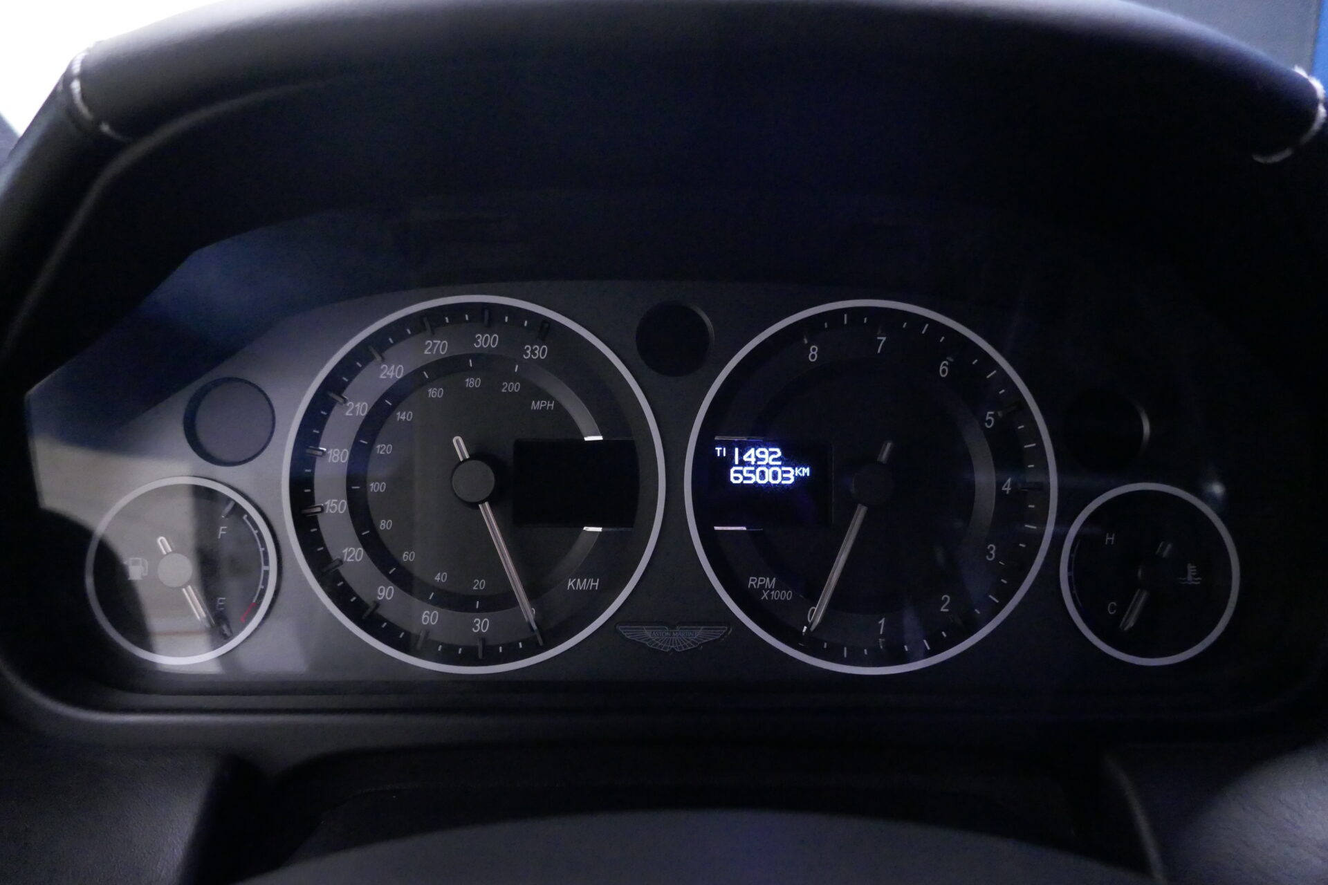 L’habitacle dégage également une ambiance toute particulière. Cet intérieur représente l’esprit Aston Martin qui s’est un peu perdu dans les derniers modèles, depuis l’alliance avec Mercedes. Un savant mélange de tradition, d’élégance et de sportivité, avec une présentation de bonne qualité mais comportant quelques particularités (on ne peut pas appeler cela des défauts) typiquement « British » qui perturberont les habitués des sportives allemandes.