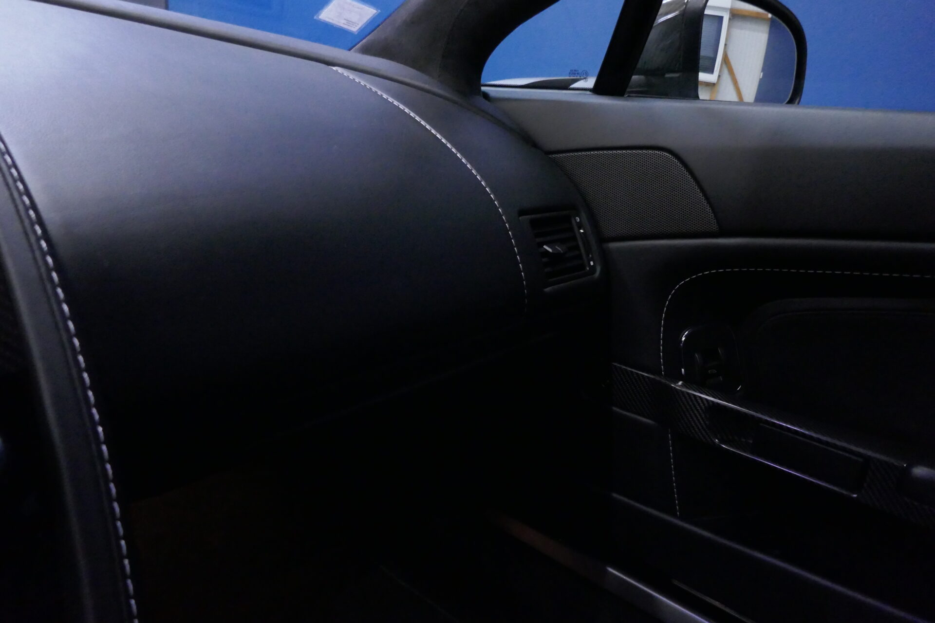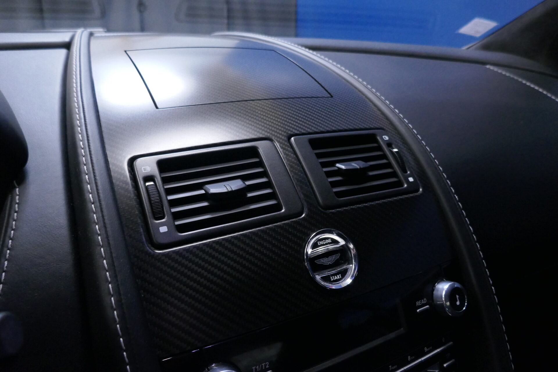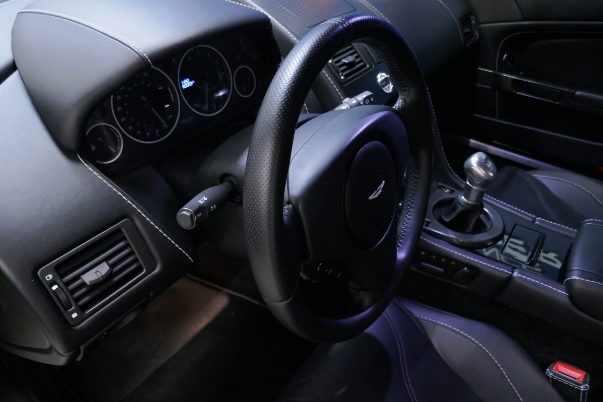 L’habitacle dégage également une ambiance toute particulière. Cet intérieur représente l’esprit Aston Martin qui s’est un peu perdu dans les derniers modèles, depuis l’alliance avec Mercedes. Un savant mélange de tradition, d’élégance et de sportivité, avec une présentation de bonne qualité mais comportant quelques particularités (on ne peut pas appeler cela des défauts) typiquement « British » qui perturberont les habitués des sportives allemandes.