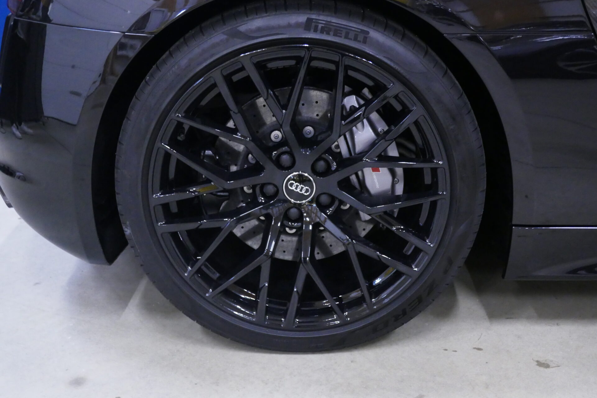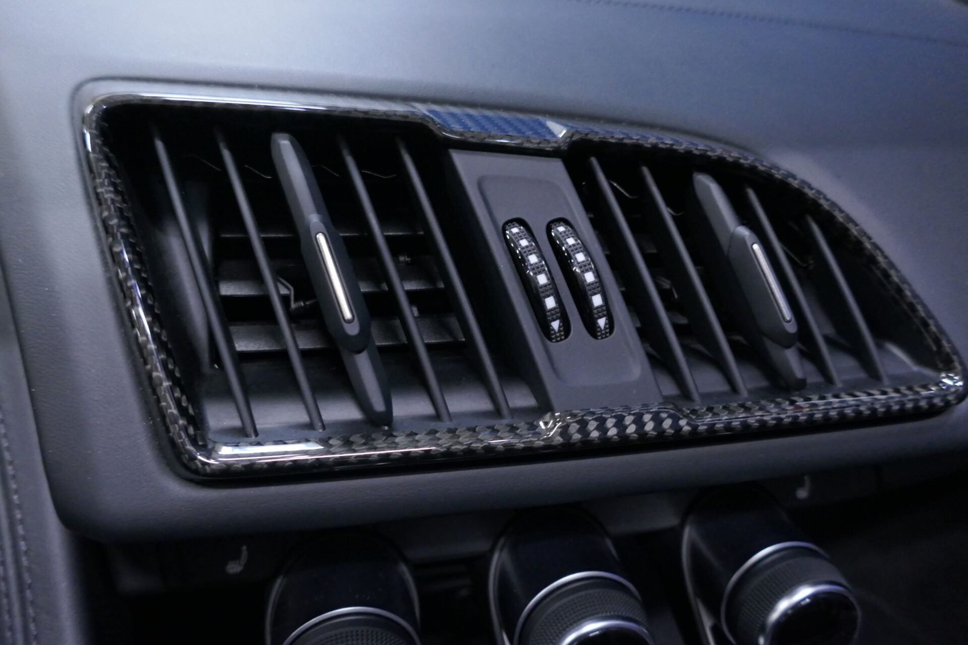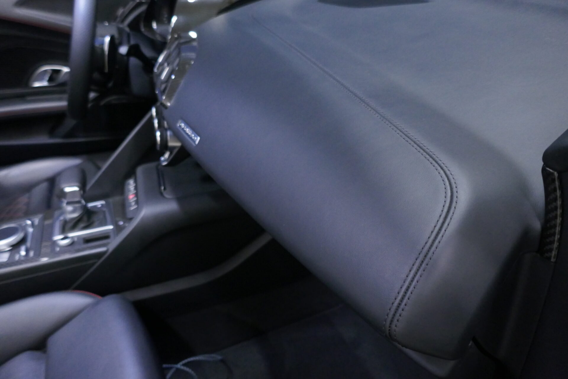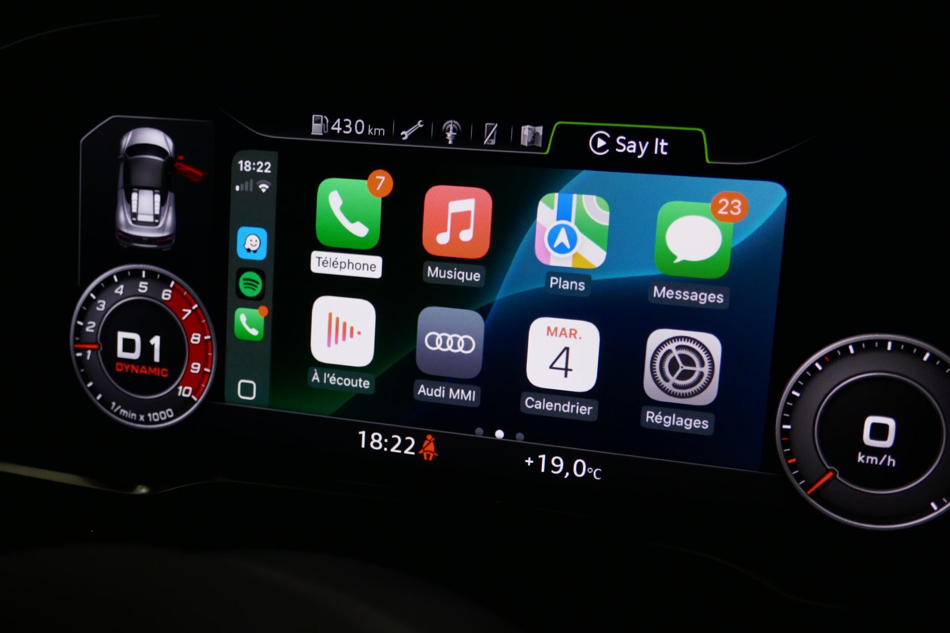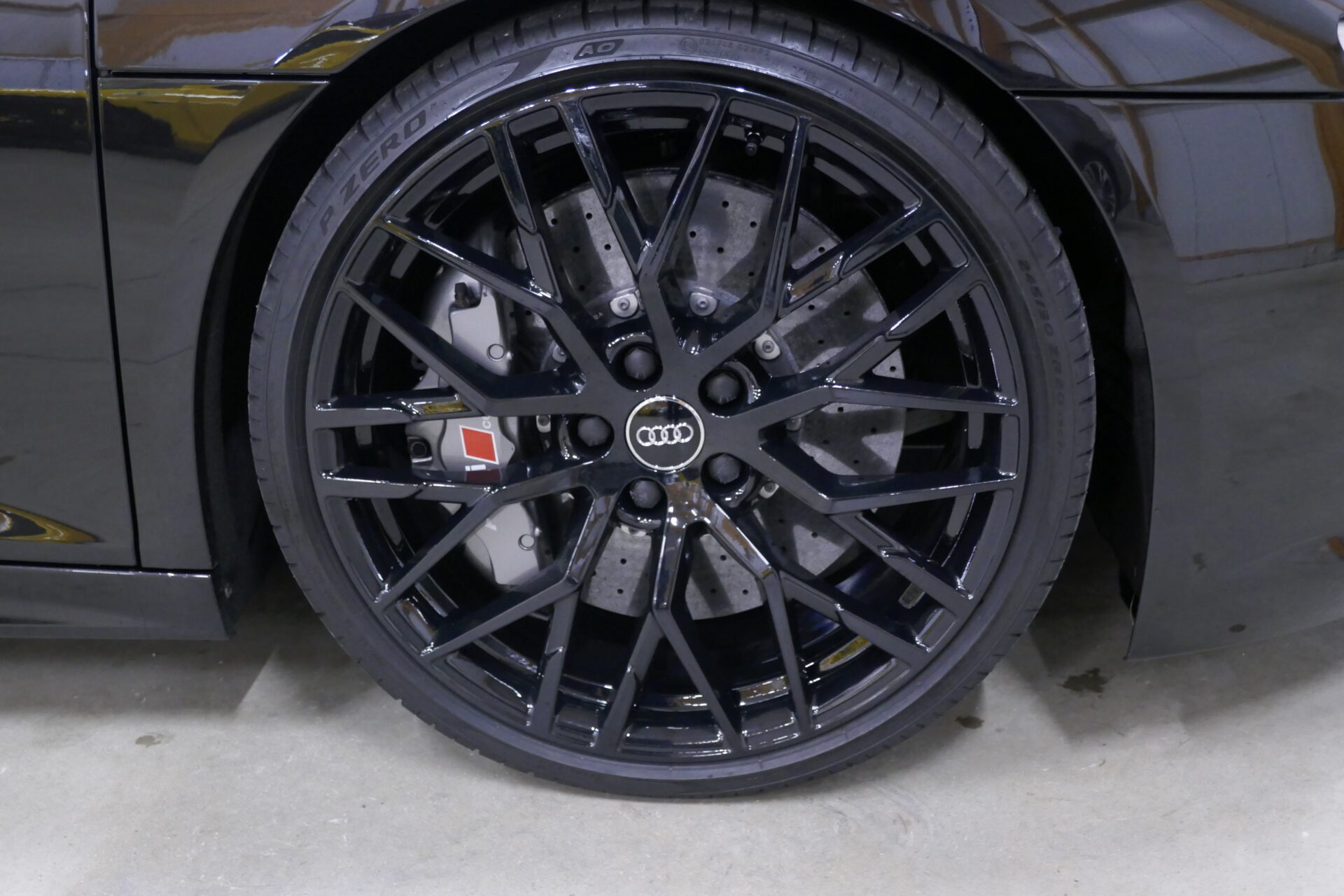 Elle affiche des performances impressionnantes, avec un 0 à 100 km/h en 3,6 s, un 0 à 200 km/h en 11,8 s et une vitesse maxi de… 318 km/h. Gare au brushing ! Doté d'un carter sec et pouvant tourner jusqu'à 8 700 tr/min, ce V10 est une vraie force de la nature, sans pour autant tomber dans la linéarité absolue, généralement nuisible à l'agrément. Ce moteur est plein partout, mais délivre un bon coup de pied aux fesses aux alentours des 6 000 tr/min, tout en faisant évoluer sa sonorité au fil des montées en régimes. Grave et rauque en bas du compte-tours, il hurle littéralement à l'approche de la zone rouge ! Un cri sauvage auquel l'échappement à clapets fourni en standard n'est évidemment pas étranger. Par ailleurs, ce V10 sait aussi jouer les citoyens modèles, grâce à sa bi-injection (directe dans le cylindre ou indirecte dans les tubulures, au choix, afin de réduire les émissions). Il est également capable de désactiver un banc de cylindres à faible charge pour réduire son (solide) appétit lorsque l'on adopte un rythme plus paisible. Quant à la boîte S Tronic, elle offre un mode roue libre pour encore grappiller quelques décilitres de ci, de là. On s'imagine aisément accomplir d'importants kilométrages avec cette auto, qui sait prendre soin de ses deux occupants, notamment grâce aux divers modes offerts par l'Audi Drive Select (Comfort, Auto, Dynamic).