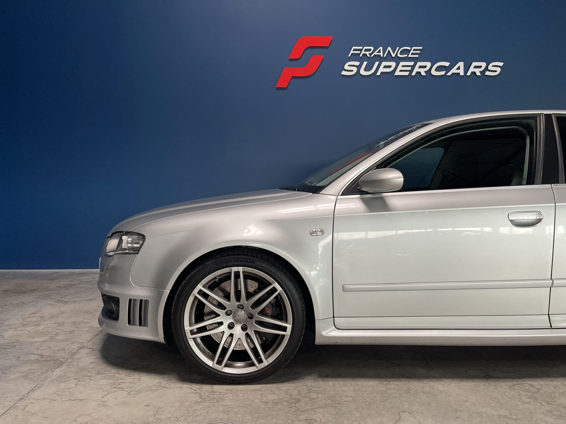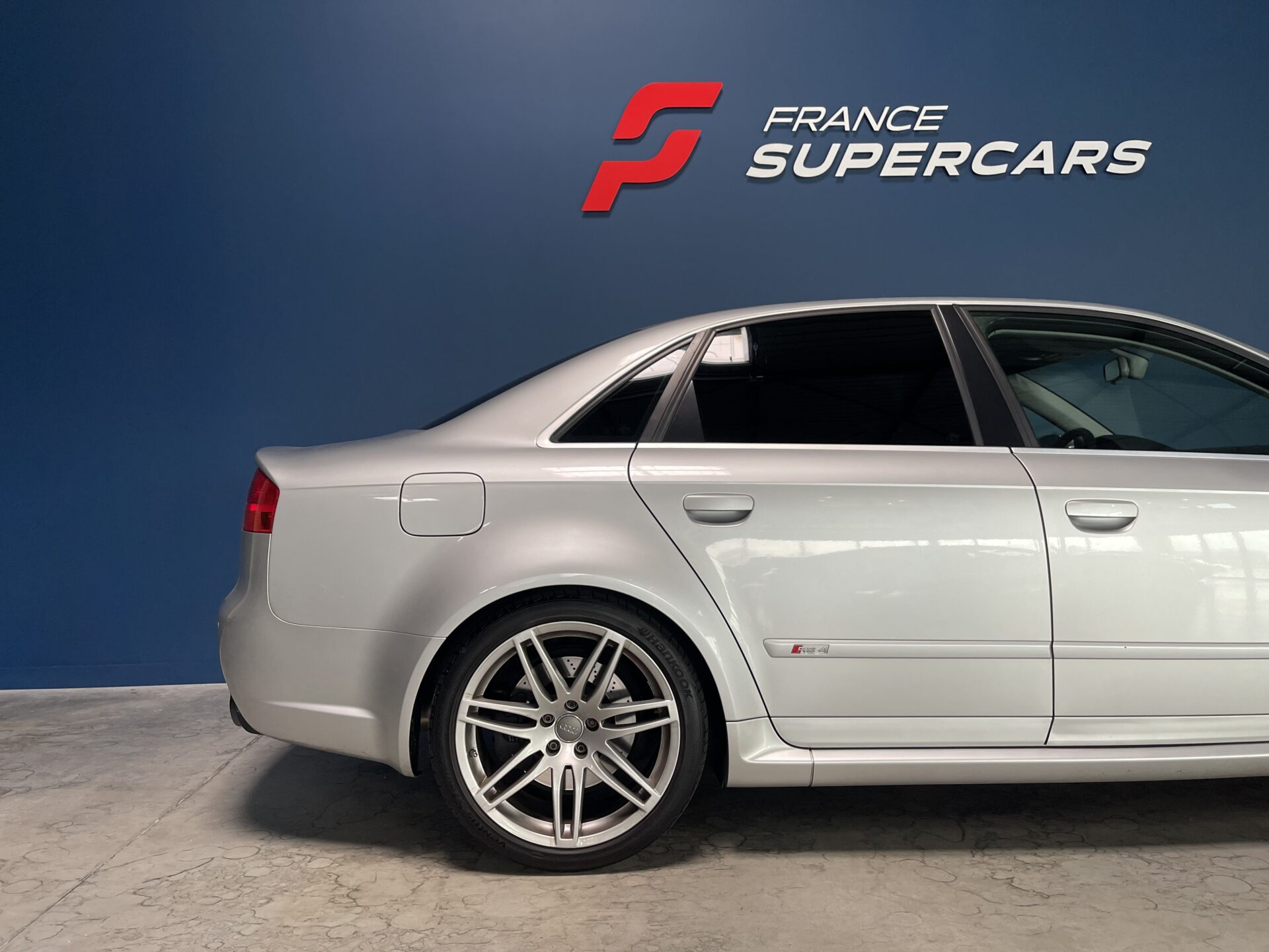 L'utilisation d'un V8 4,2 L permet à la nouvelle RS4 B7 de gagner 40 ch portant ainsi la puissance totale à près de 420 ch à 7 800 tr/min, un régime tours certes élevé, mais permettant d'atteindre une puissance au litre de 100 ch et d'emprunter pour la première fois la voie des soi-disant « moteurs à haut régime » pour Audi. Jusqu'à présent, les modèles RS antérieurs étaient toujours équipés d'un turbocompresseur. Un travail important a été réalisé puisque le V8 n'est pas suralimenté comme l'était le V6 de la RS4 B5. En effet, il s'agit d'un moteur FSI à injection directe déjà présent en compétition DTM sur des Audi TT ainsi que sur l'Audi R8 du Mans. Certes, cela a pour conséquence de diminuer le couple de 10 N m, atteignant donc les 430 N m à 5 500 tr/min, en raison de l'alimentation atmosphérique. Néanmoins, 90 % du couple est disponible de 2 250 à 7 600 tr/min.