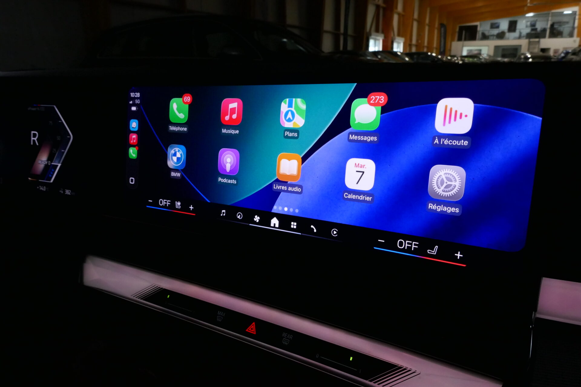 Plus que jamais, la Série 5 a tout d'une Série 7 en réduction. Elle en reprend d'ailleurs la plate-forme (raccourcie de 30 cm !) et une bonne partie du contenu technologique, à commencer par le spectaculaire double écran, doté du même système d'exploitation.BMW a eu le bon goût de conserver quelques vrais boutons et une molette, plus pratique (et sécurisant) pour naviguer dans le système en conduisant.