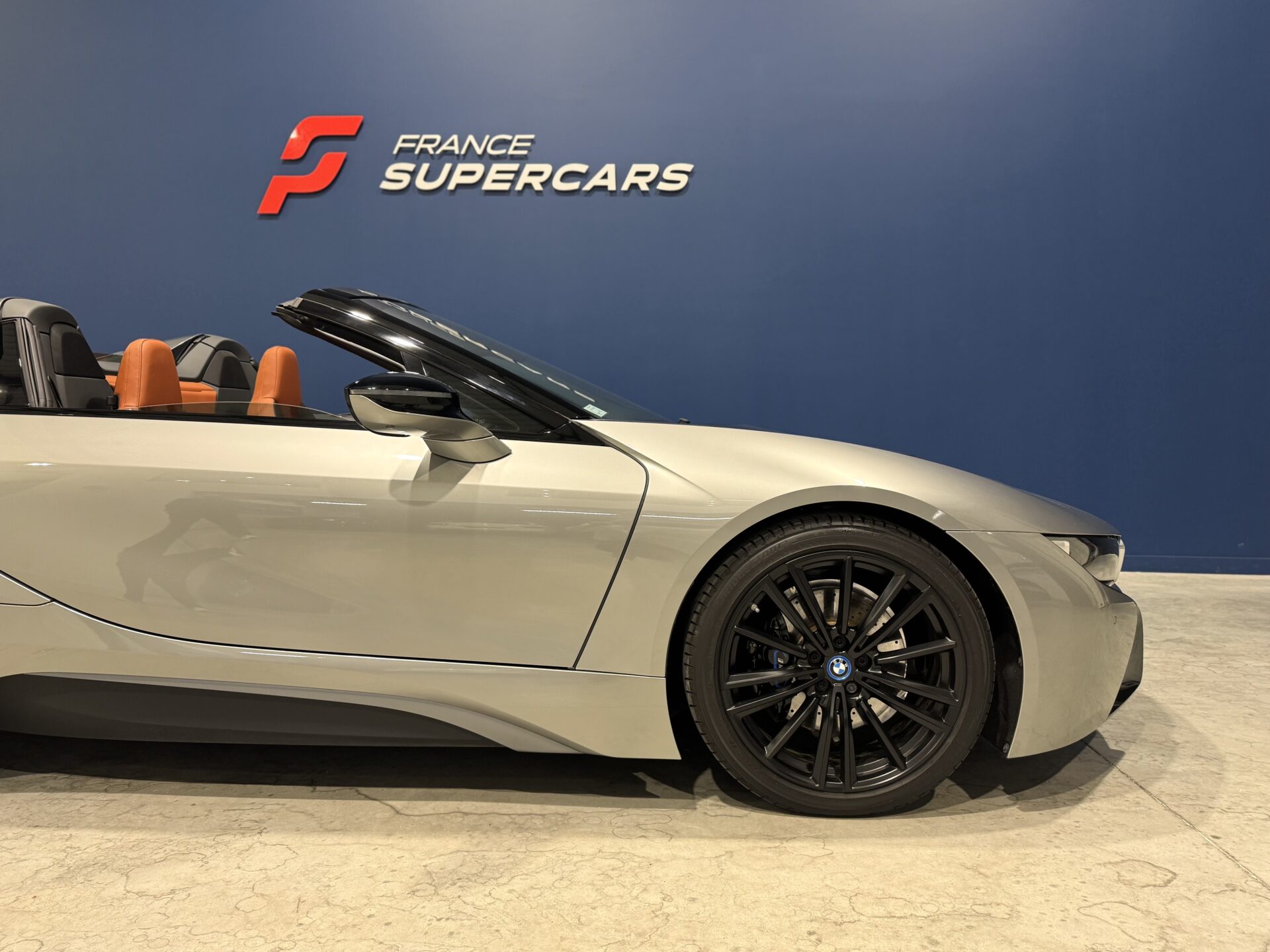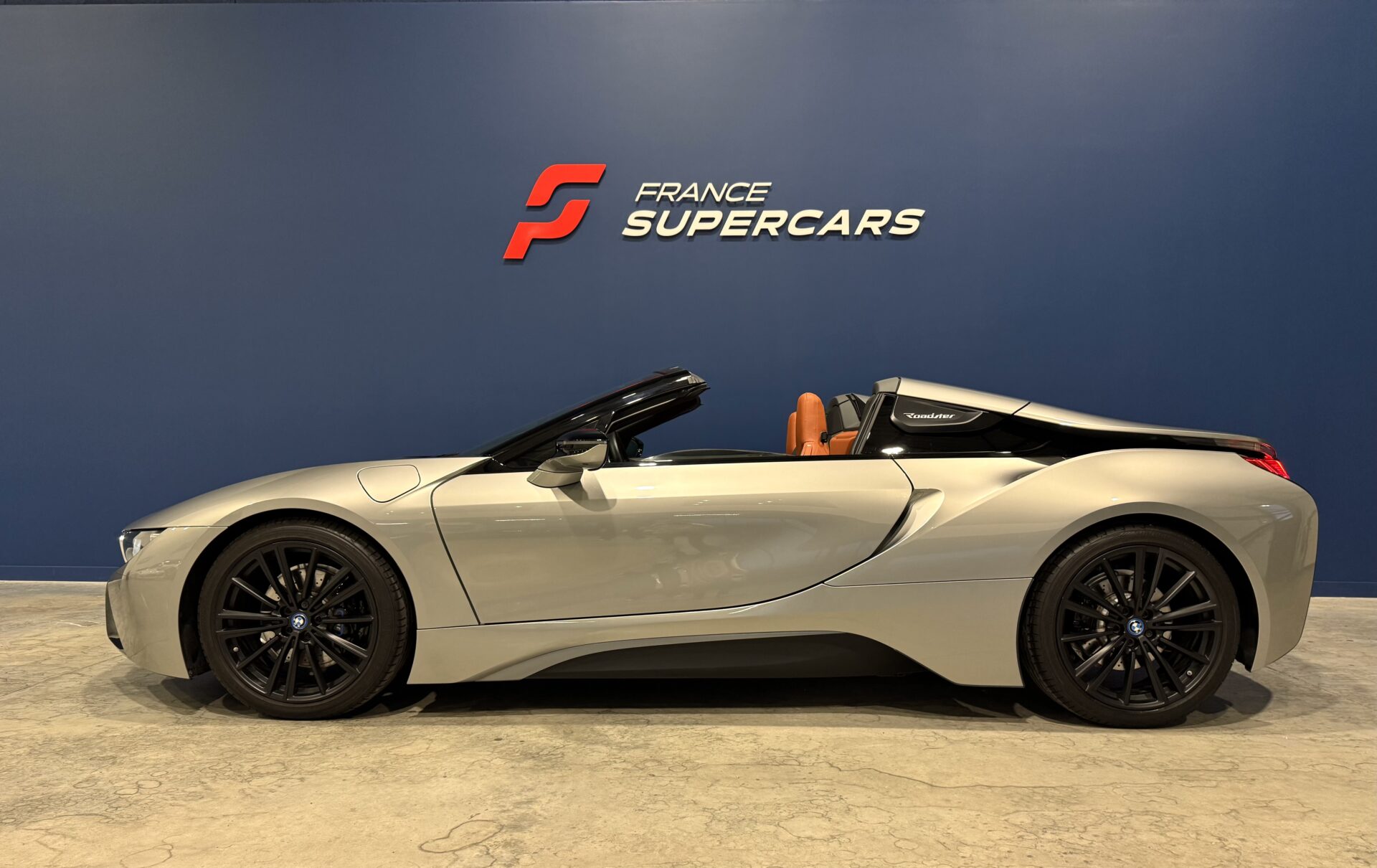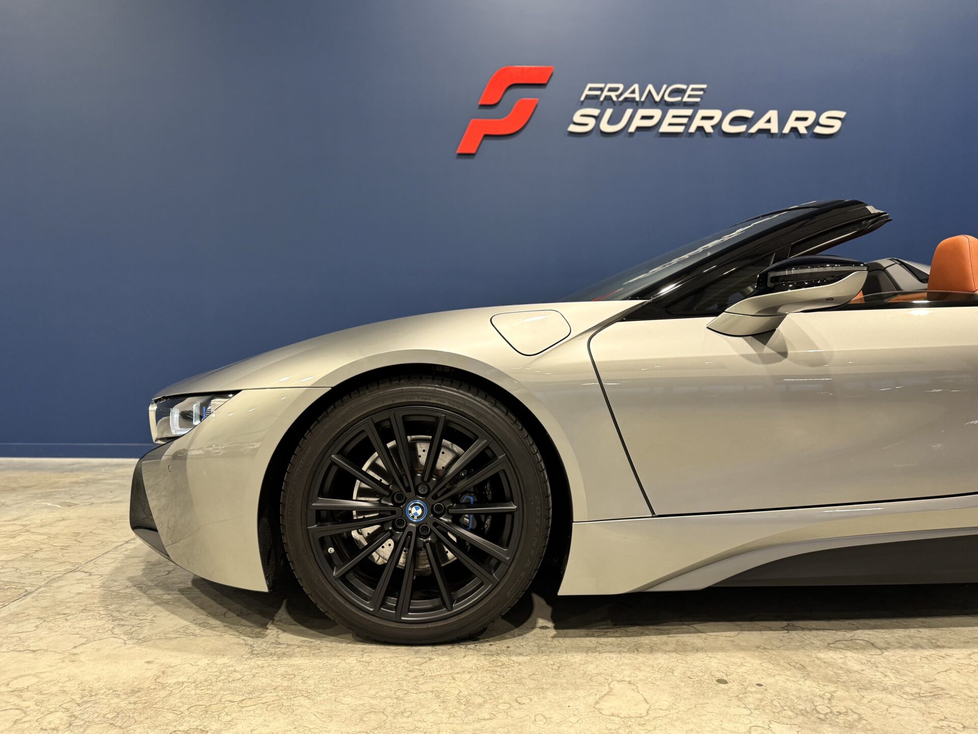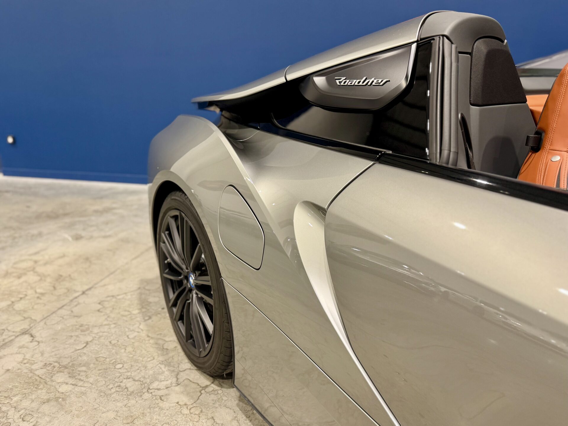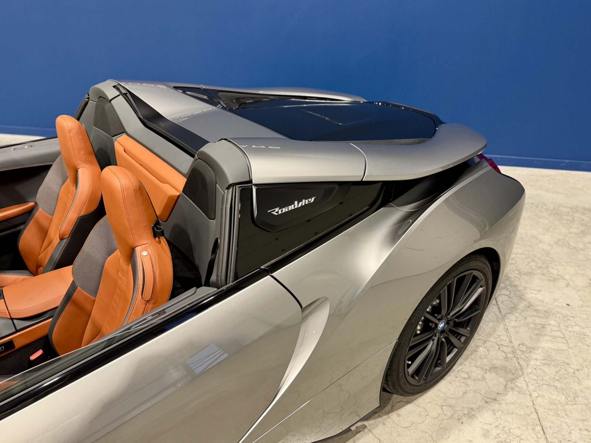 Sur le plan stylistique, la i8 Roadster conserve les lignes aérodynamiques et sculptées de la famille i8, avec un profil bas, un toit électrique à ouverture rapide, des portes en élytre et des détails en carbone qui soulignent son caractère sportif et sophistiqué.