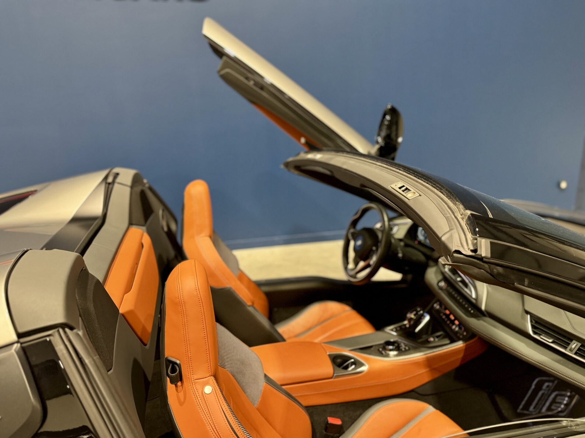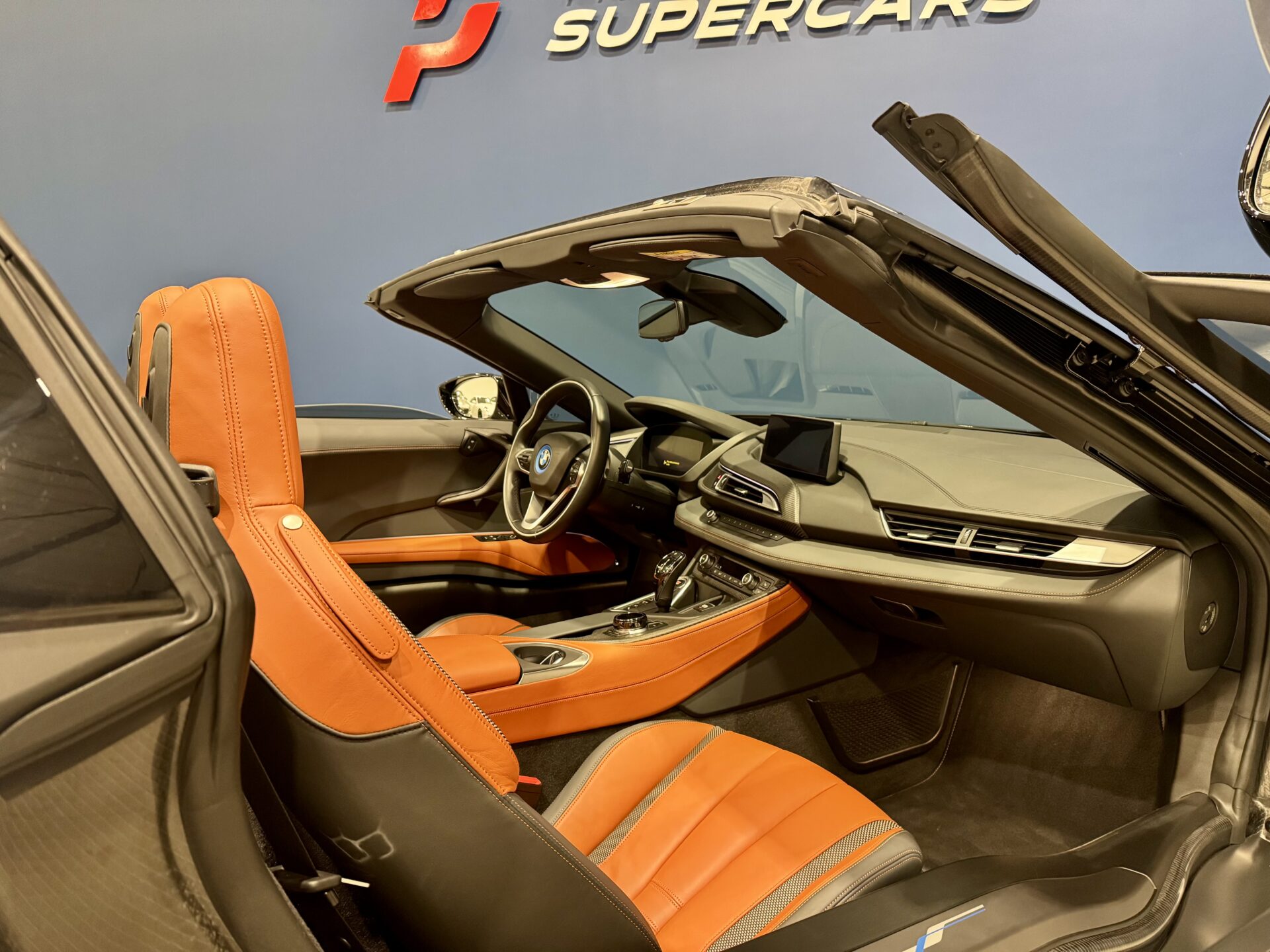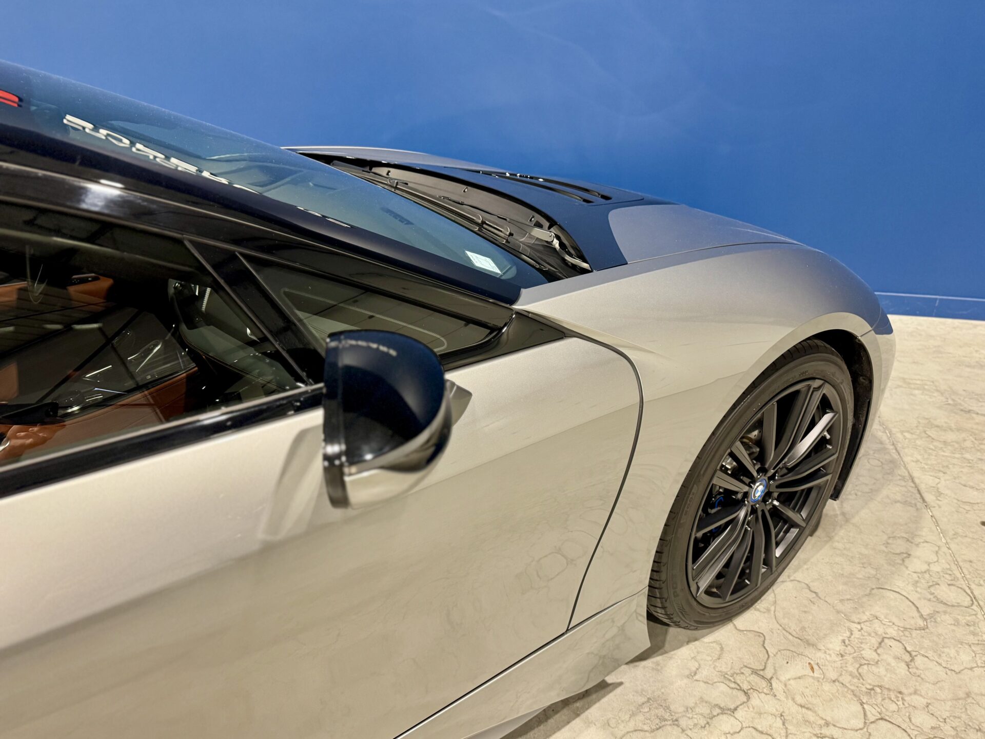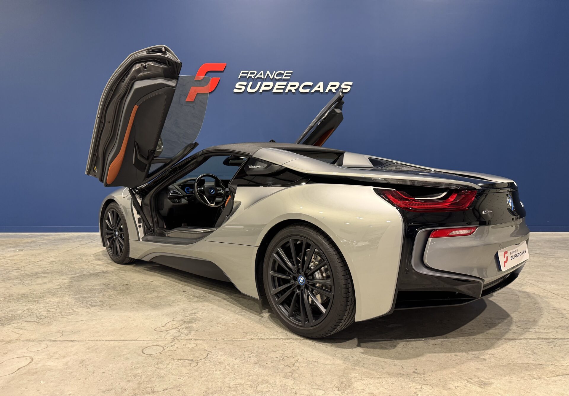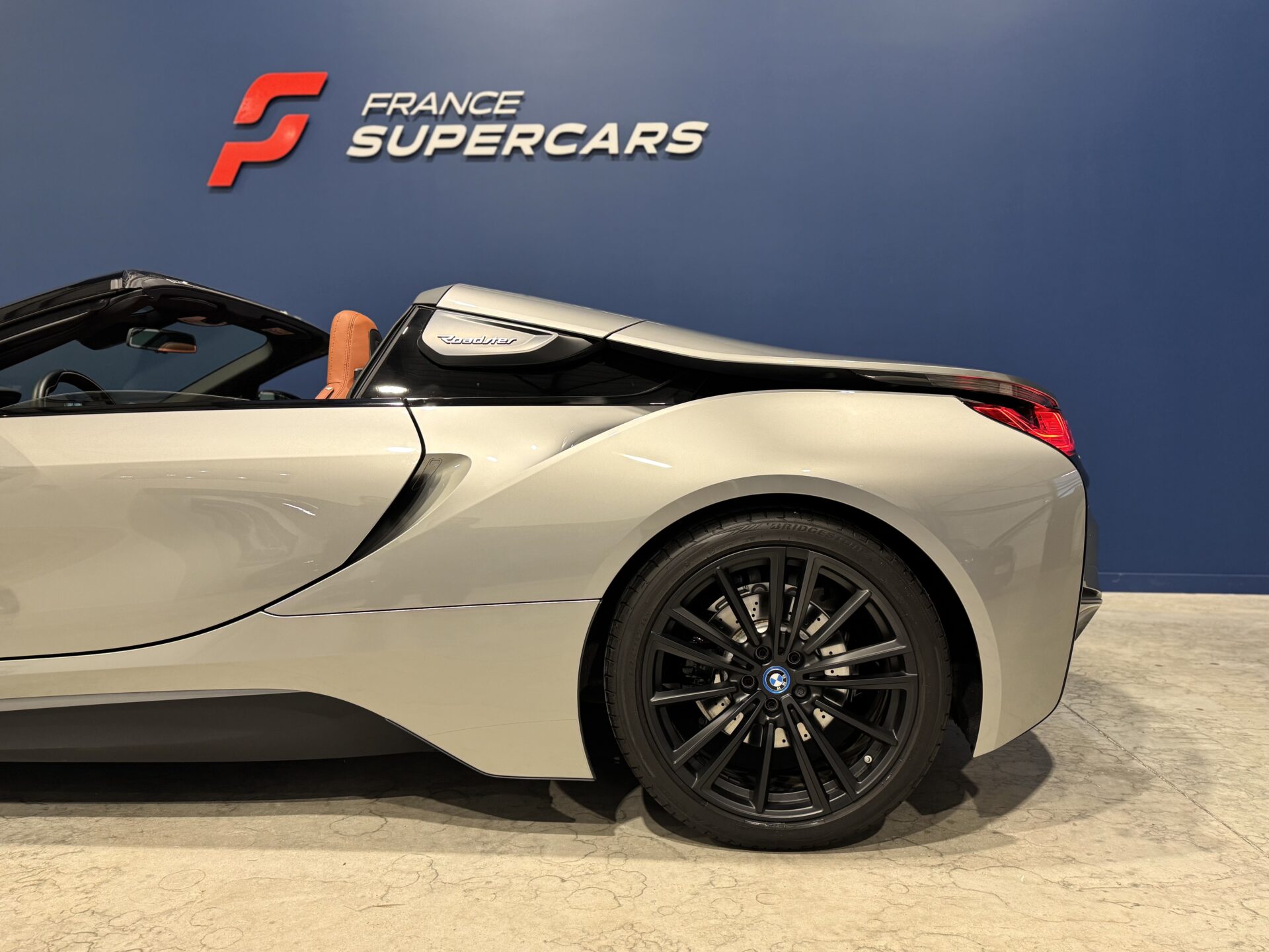Sur le plan stylistique, la i8 Roadster conserve les lignes aérodynamiques et sculptées de la famille i8, avec un profil bas, un toit électrique à ouverture rapide, des portes en élytre et des détails en carbone qui soulignent son caractère sportif et sophistiqué.