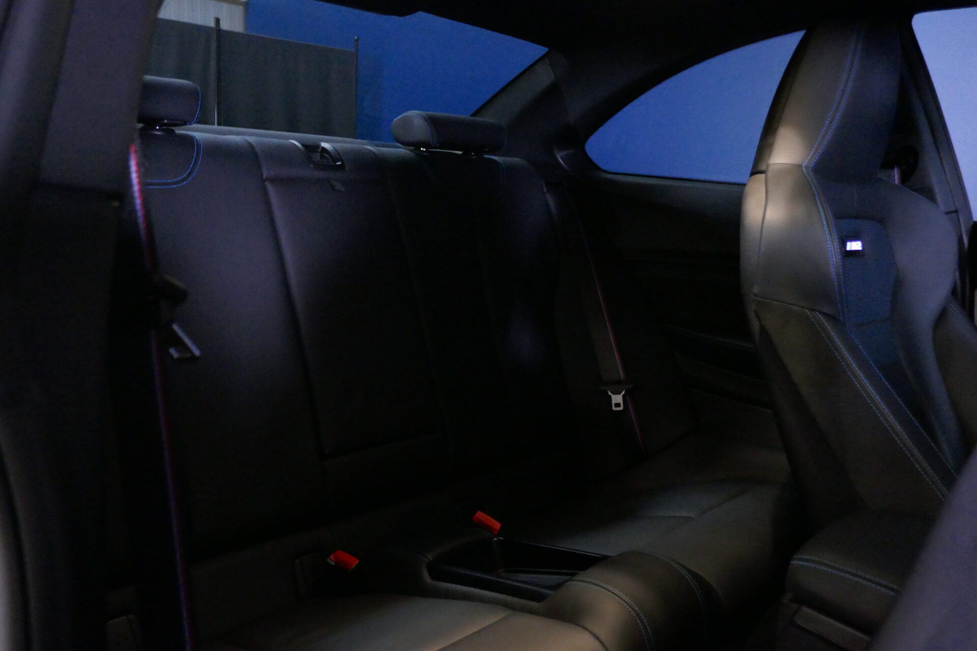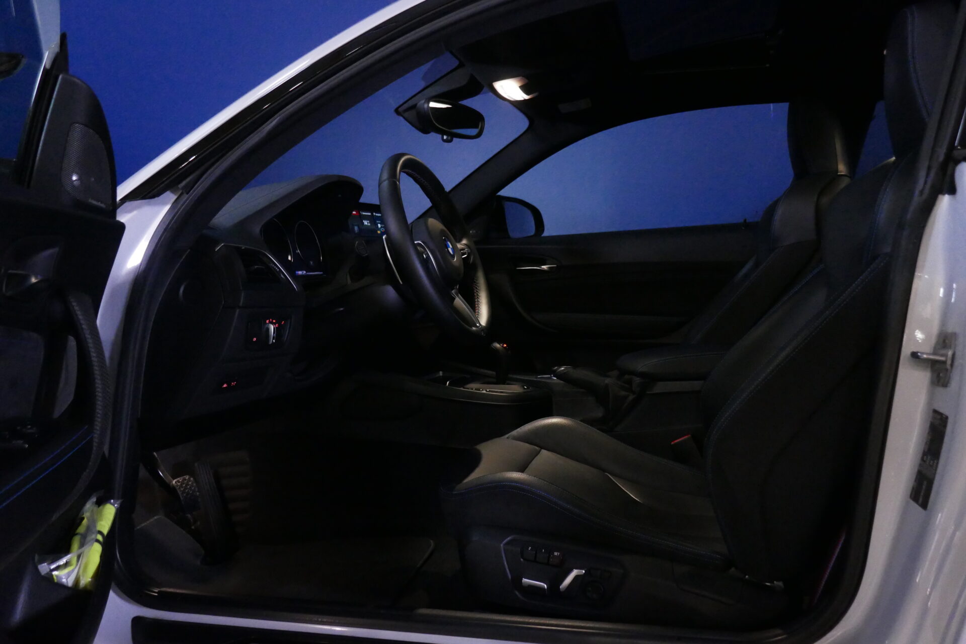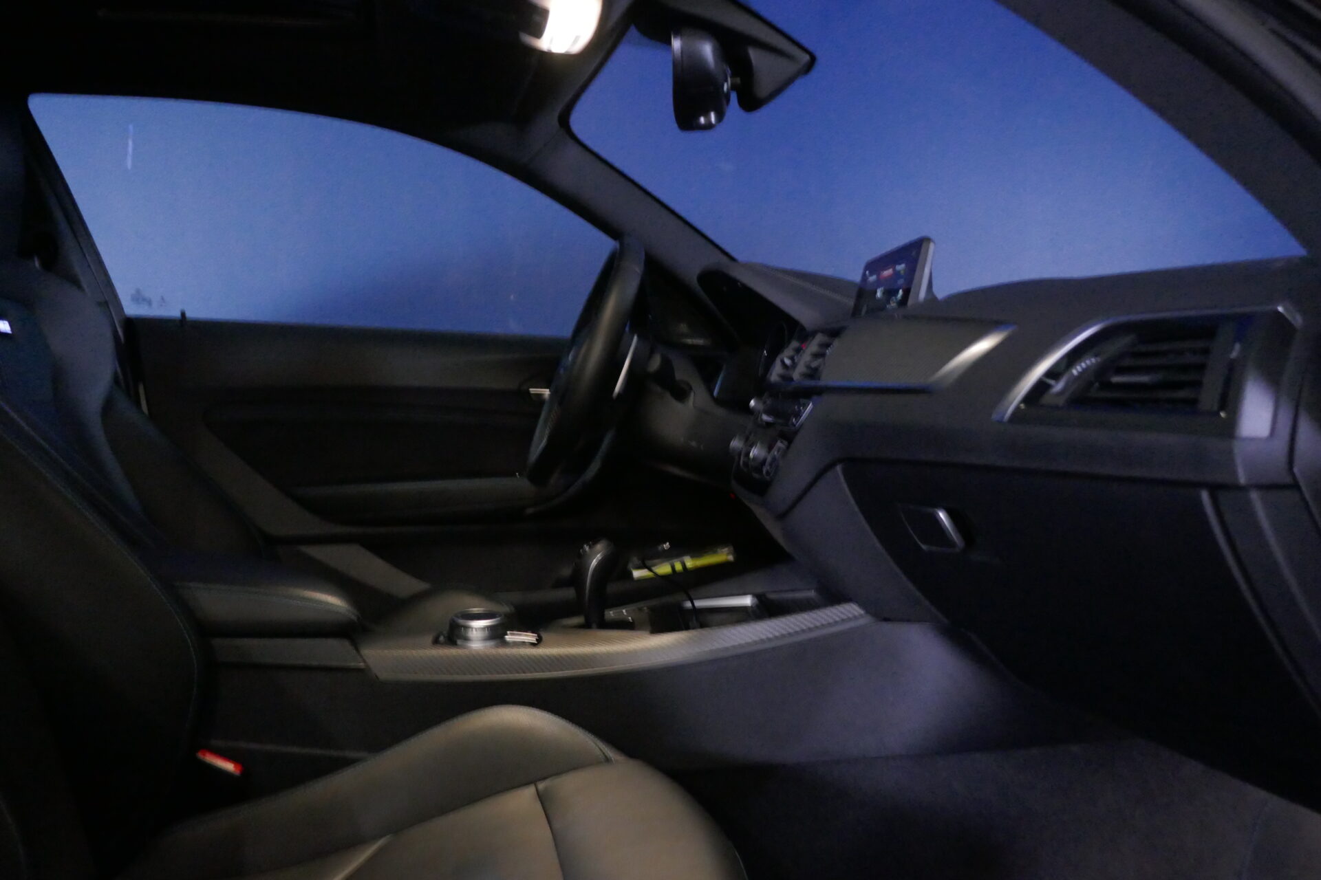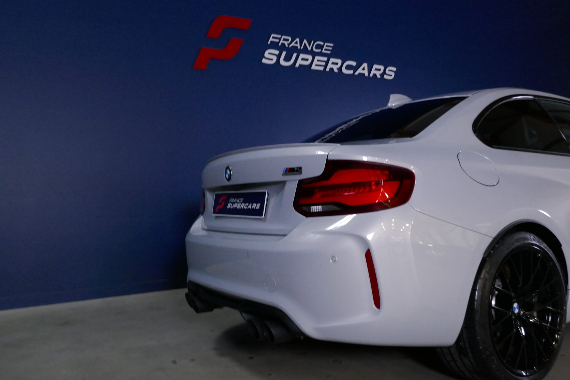 À l'ouverture des portières, on découvre des seuils estampillés « M2 Compétition », que l'on peut compléter en option (1 550 €) par des sièges sport arborant un logo M2 rétro-éclairé. L'instrumentation (partiellement numérique) est claire et lisible. L'écran du GPS est tactile, et moteur, boîte DKG et direction se règlent individuellement grâce à des boutons situés sur la console centrale. Pour plus de facilité, il est possible de préprogrammer deux réglages accessibles au volant par les touches « M1 » et « M2 ». Au delà de l'équipement, plutôt complet, la BMW M2 Compétition garde ce qui fait la force des modèles M : la polyvalence. Elle propose en effet un habitacle bien fini et accueillant, avec deux vraies places arrière et un coffre plus que correct. Bref, la BMW M2 Compétition peut parfaitement être utilisée au quotidien, y compris pour déposer les enfants à l'école. Rares sont les sportives de ce niveau de gamme à pouvoir en dire autant.