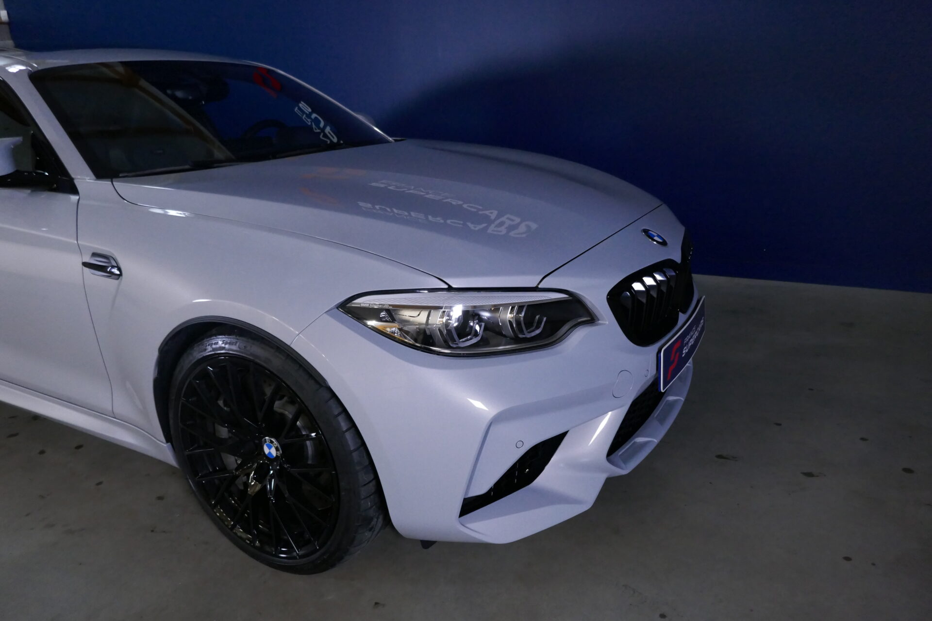 BMW voue un culte aux petites bombes survitaminées. Il y eut bien évidemment la 2002 Turbo, puis plus récemment la Série 1 M, deux modèles suralimentés hauts en couleur, réservant leur lot de sensations fortes dans un format XXS. Tous deux sont d'ores et déjà des collectors. À son lancement en 2016, la BMW M2 a moins fait l'unanimité, essentiellement du fait d'un amortissement mal réglé, qui lui faisait perdre les pédales dès que le bitume n'était pas parfaitement nivelé. Des critiques qui ont visiblement été entendues par la firme de Munich, qui a remis l'ouvrage sur le métier. Le résultat, c'est cette M2 Compétition, qui remplace la précédente version au catalogue. Extérieurement, elle se reconnaît principalement à ses nouvelles optiques à LED, à sa calandre noire brillante et à son bouclier redessiné.