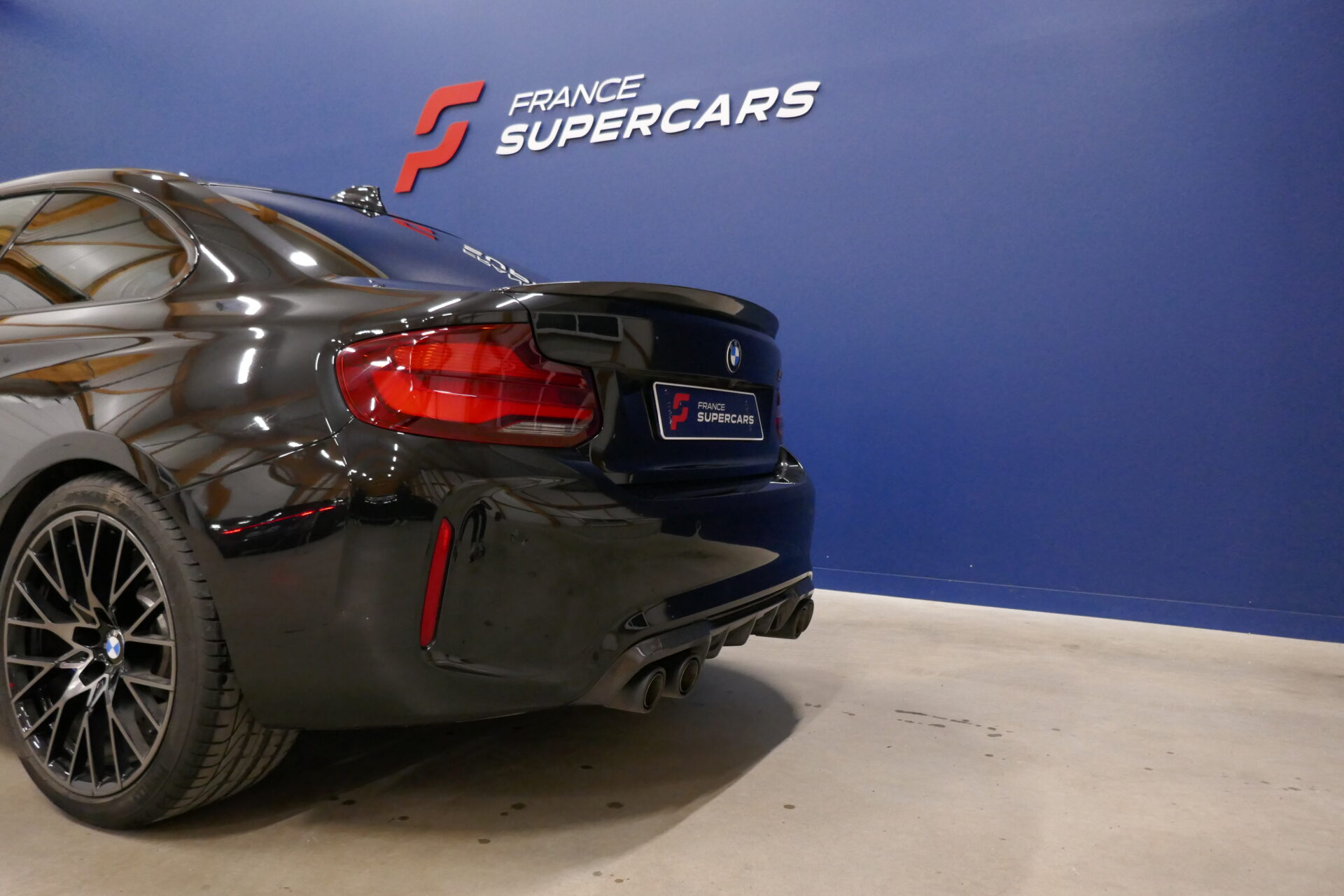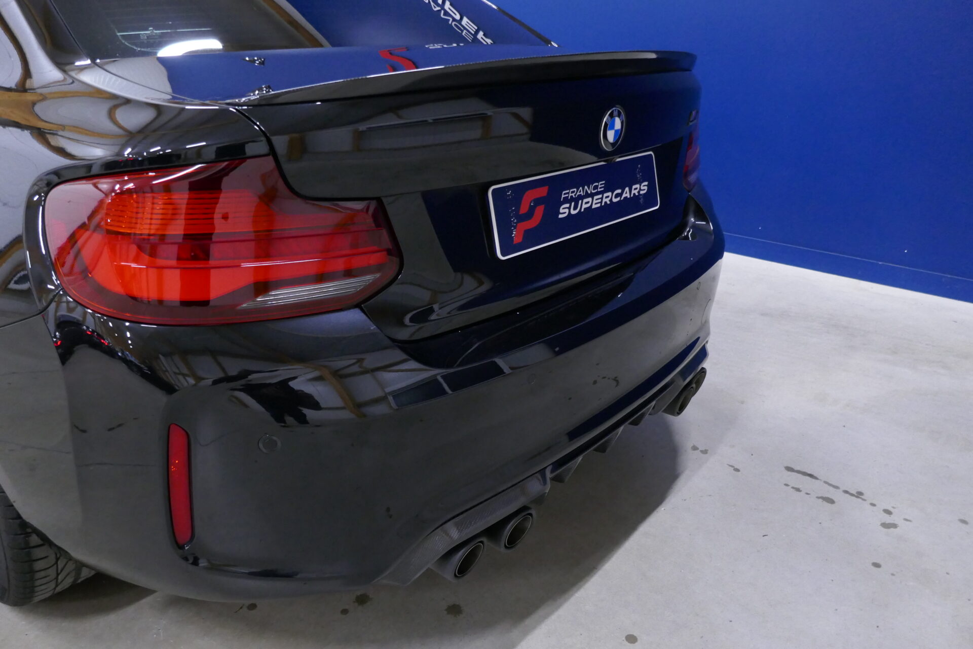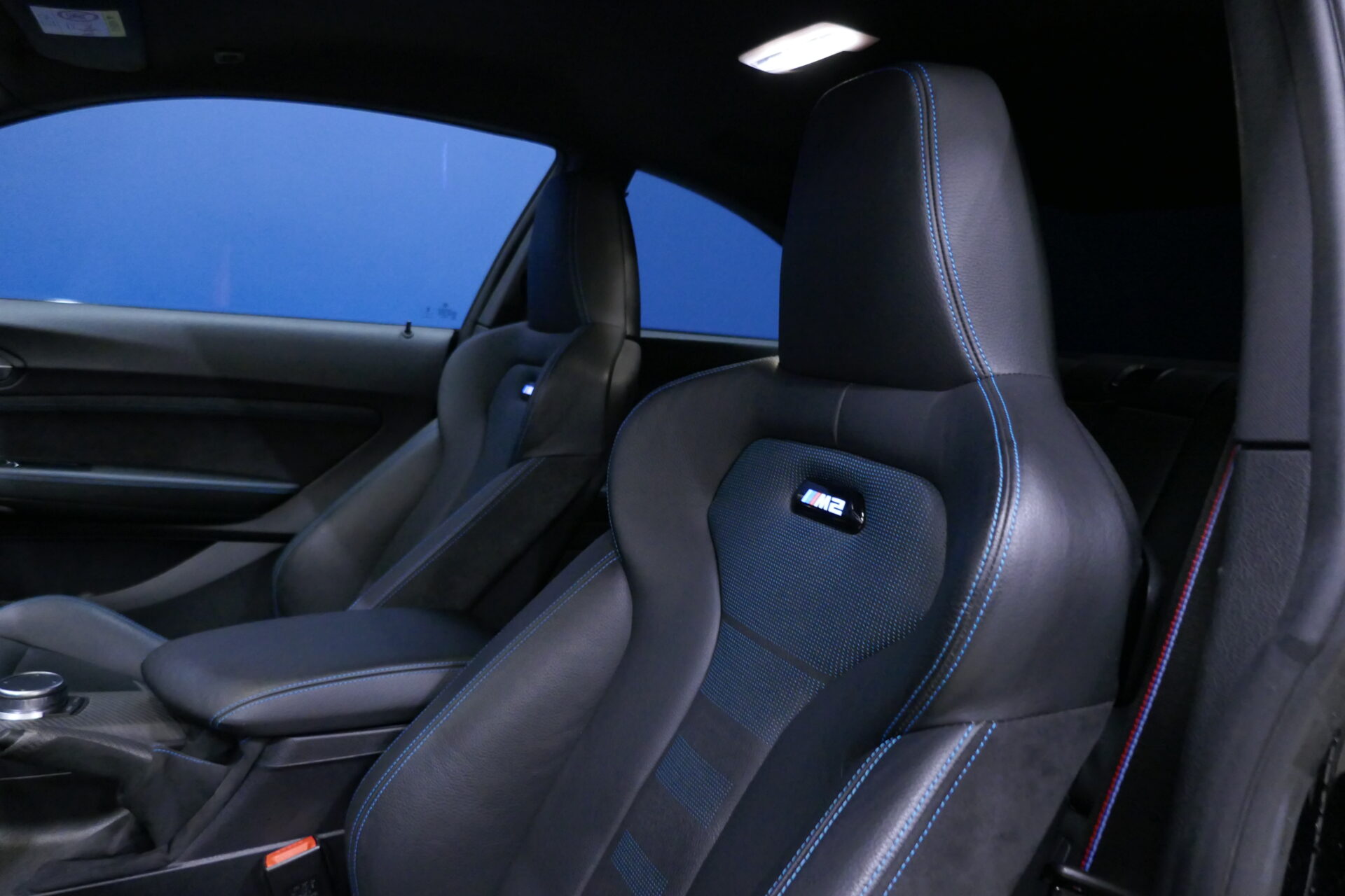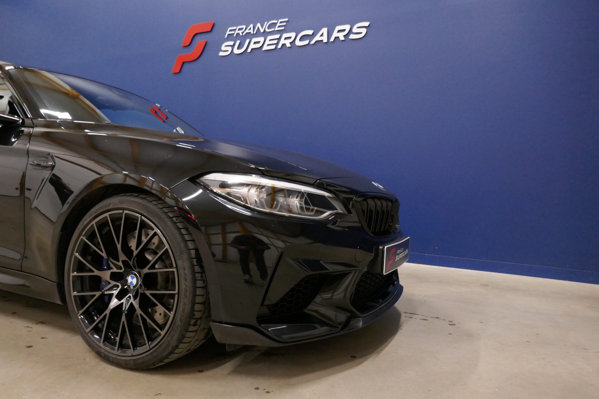 À l'ouverture des portières, on découvre des seuils estampillés « M2 Compétition », que l'on peut compléter en option (1 550 €) par des sièges sport arborant un logo M2 rétro-éclairé. L'instrumentation (partiellement numérique) est claire et lisible. L'écran du GPS est tactile, et moteur, boîte DKG et direction se règlent individuellement grâce à des boutons situés sur la console centrale. Pour plus de facilité, il est possible de préprogrammer deux réglages accessibles au volant par les touches « M1 » et « M2 ». Au delà de l'équipement, plutôt complet, la BMW M2 Compétition garde ce qui fait la force des modèles M : la polyvalence. Elle propose en effet un habitacle bien fini et accueillant, avec deux vraies places arrière et un coffre plus que correct. Bref, la BMW M2 Compétition peut parfaitement être utilisée au quotidien, y compris pour déposer les enfants à l'école. Rares sont les sportives de ce niveau de gamme à pouvoir en dire autant.