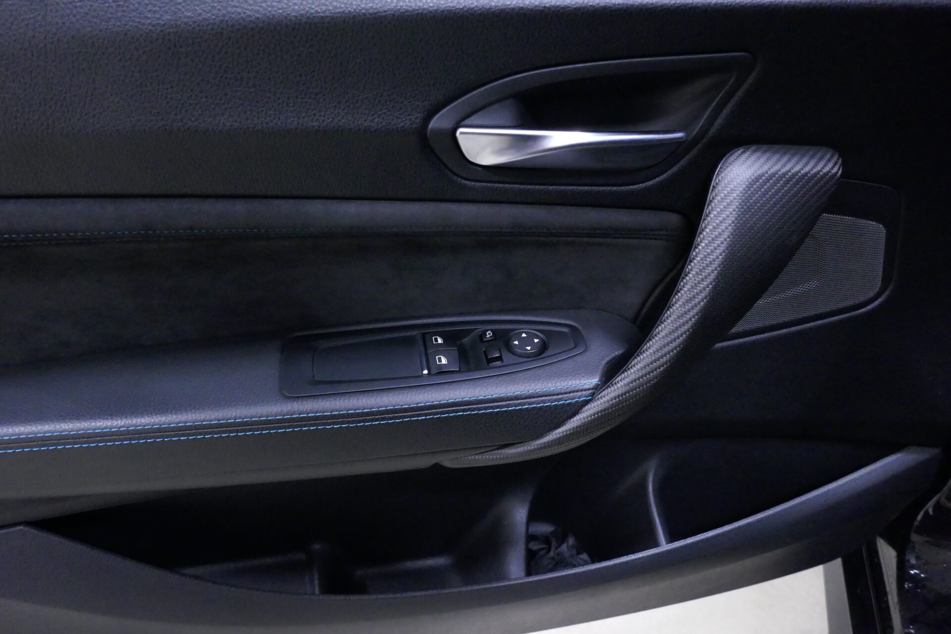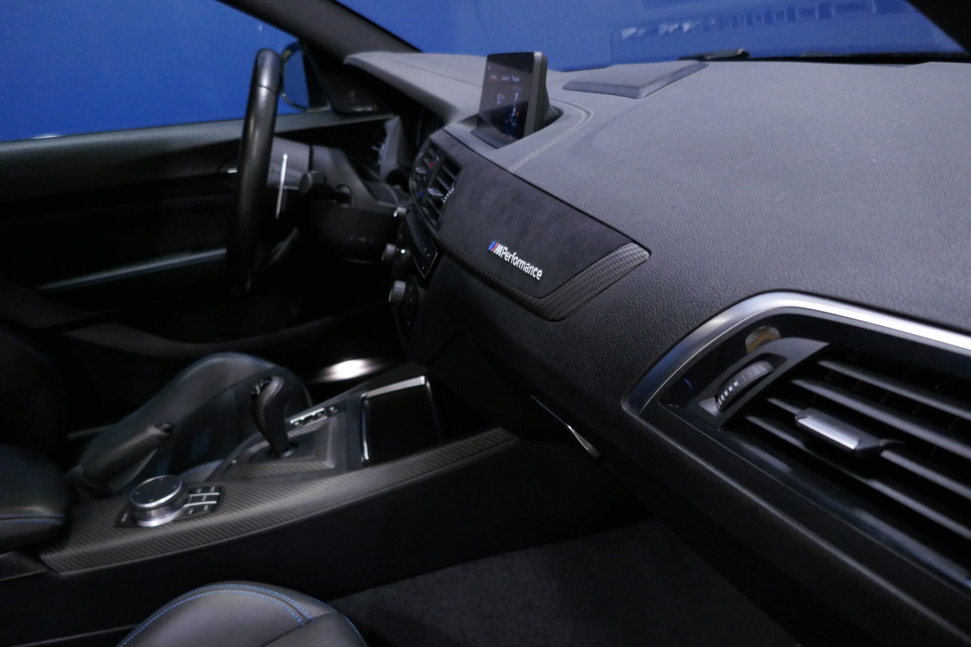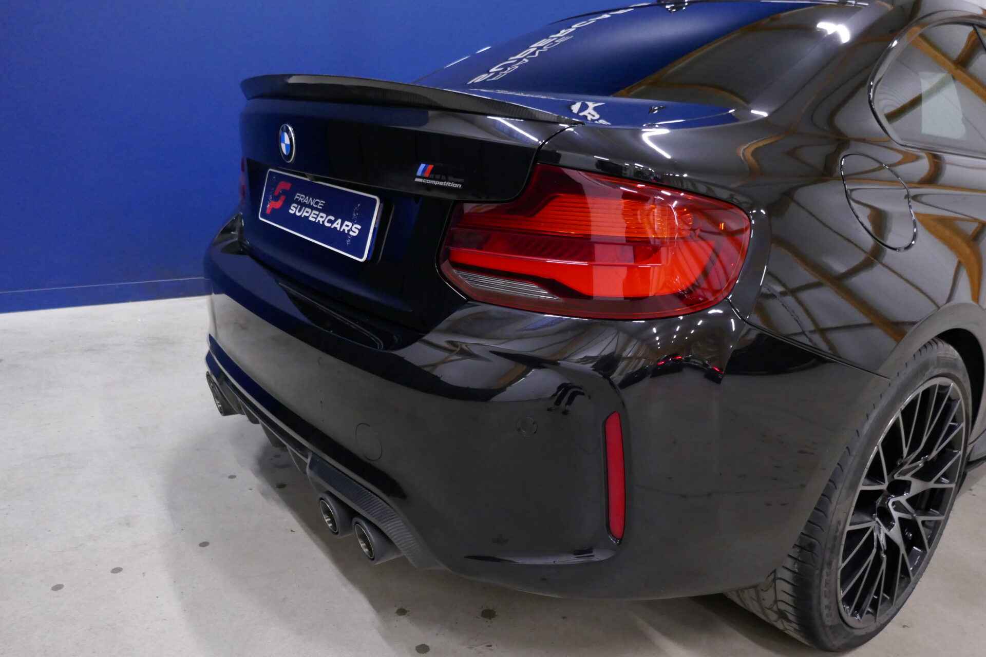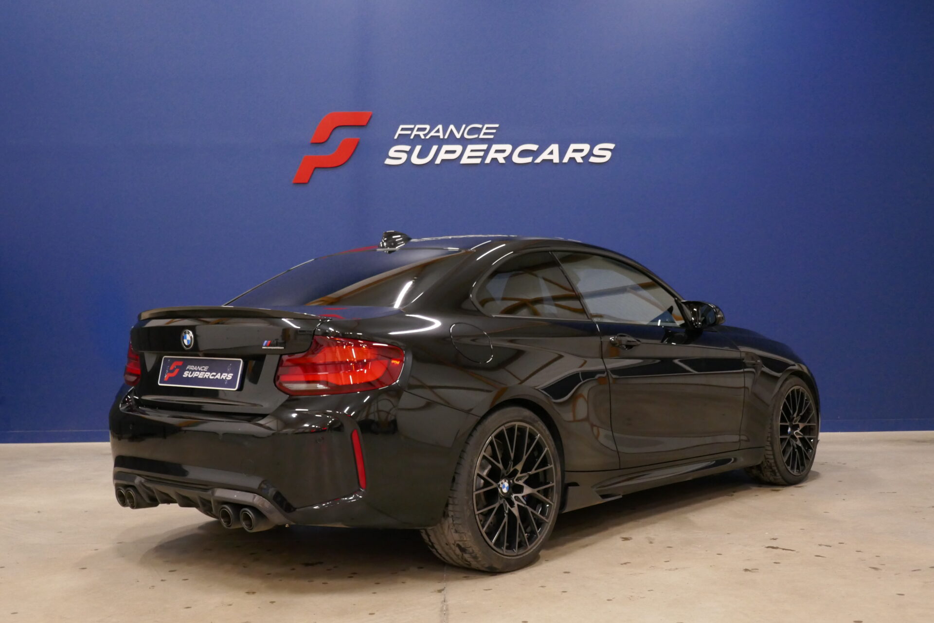 À l'ouverture des portières, on découvre des seuils estampillés « M2 Compétition », que l'on peut compléter en option (1 550 €) par des sièges sport arborant un logo M2 rétro-éclairé. L'instrumentation (partiellement numérique) est claire et lisible. L'écran du GPS est tactile, et moteur, boîte DKG et direction se règlent individuellement grâce à des boutons situés sur la console centrale. Pour plus de facilité, il est possible de préprogrammer deux réglages accessibles au volant par les touches « M1 » et « M2 ». Au delà de l'équipement, plutôt complet, la BMW M2 Compétition garde ce qui fait la force des modèles M : la polyvalence. Elle propose en effet un habitacle bien fini et accueillant, avec deux vraies places arrière et un coffre plus que correct. Bref, la BMW M2 Compétition peut parfaitement être utilisée au quotidien, y compris pour déposer les enfants à l'école. Rares sont les sportives de ce niveau de gamme à pouvoir en dire autant.