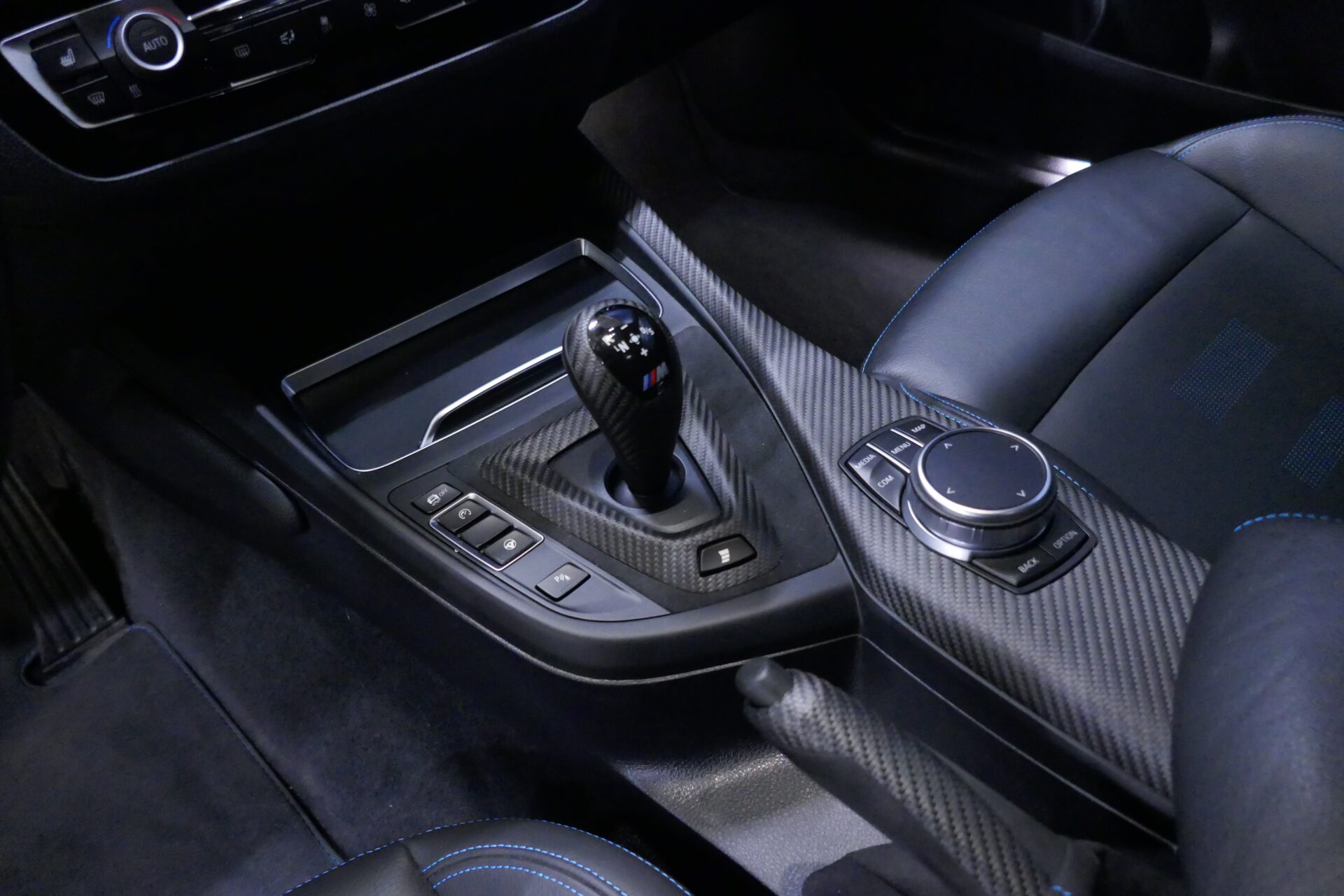 En ouvrant le capot, surprise : on découvre la même barre de rigidification en carbone que sur les M3 et M4 ! Cet élément permet de renforcer toute la partie avant, au bénéfice de la précision de la direction, moyennant un alourdissement minime (la barre en carbone seule ne pèse que 1,5 kilo). Les trains roulants sont toujours issus des M3 et M4, mais c'est désormais également le cas du moteur : le N55 de la précédente M2 cède ainsi sa place au S55, un « vrai » moteur M, doté de deux turbocompresseurs, de pistons renforcés ou encore d'un vilebrequin allégé. Le circuit de lubrification est également optimisé, tandis que le refroidissement a été amélioré. Enfin, un nouveau système d'échappement actif à clapets a été installé. Pour respecter l'ordre de préséance dans la gamme M, la M2 Compétition se contente cependant de 410 ch, contre 431 pour la M4. Et comme elle n'est que 20 kg plus légère, la grande sœur conserve l'avantage en matière de rapport poids/puissance. Mais les deux modèles affichent en revanche exactement la même valeur de couple maxi : la bagatelle de 550 Nm !