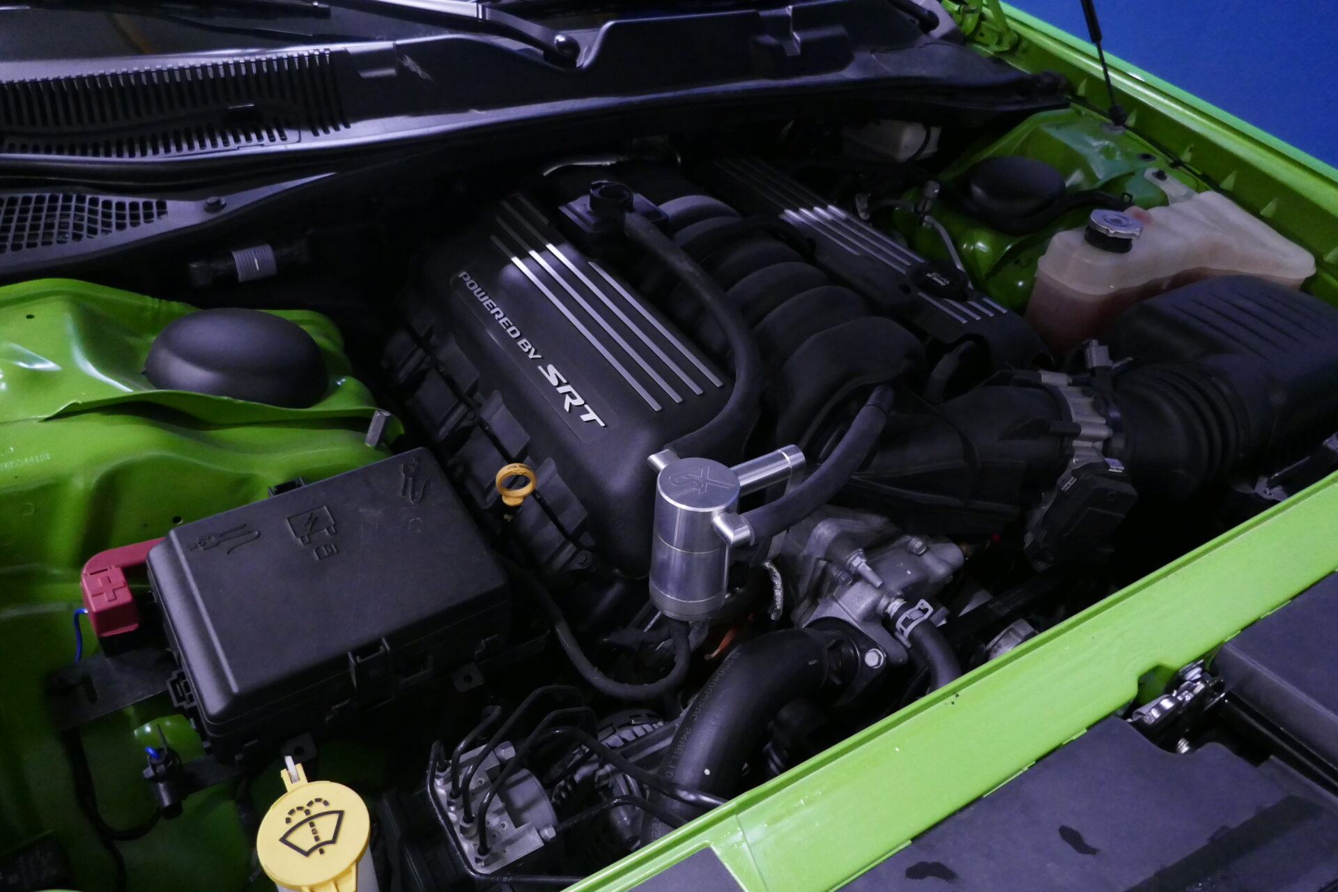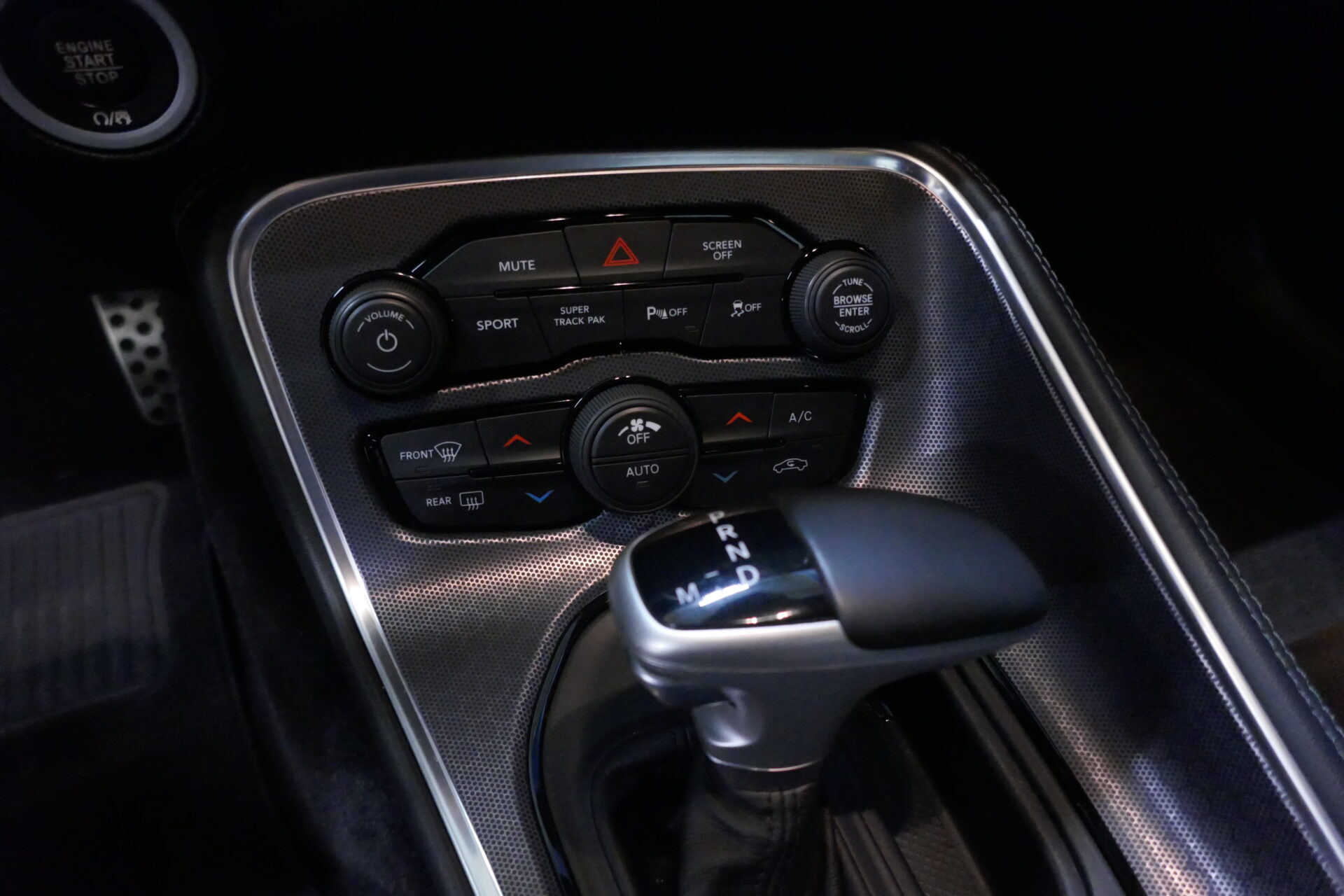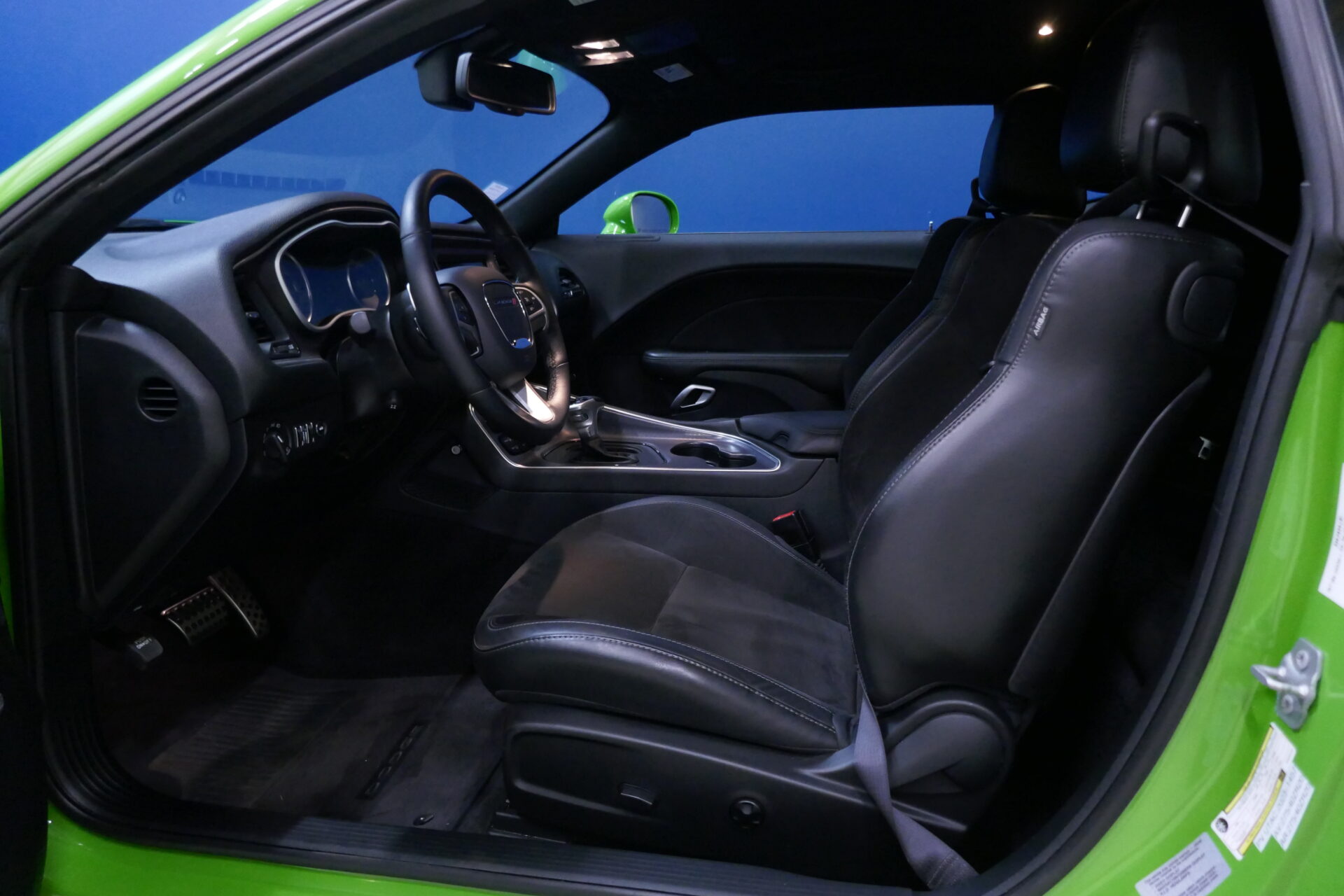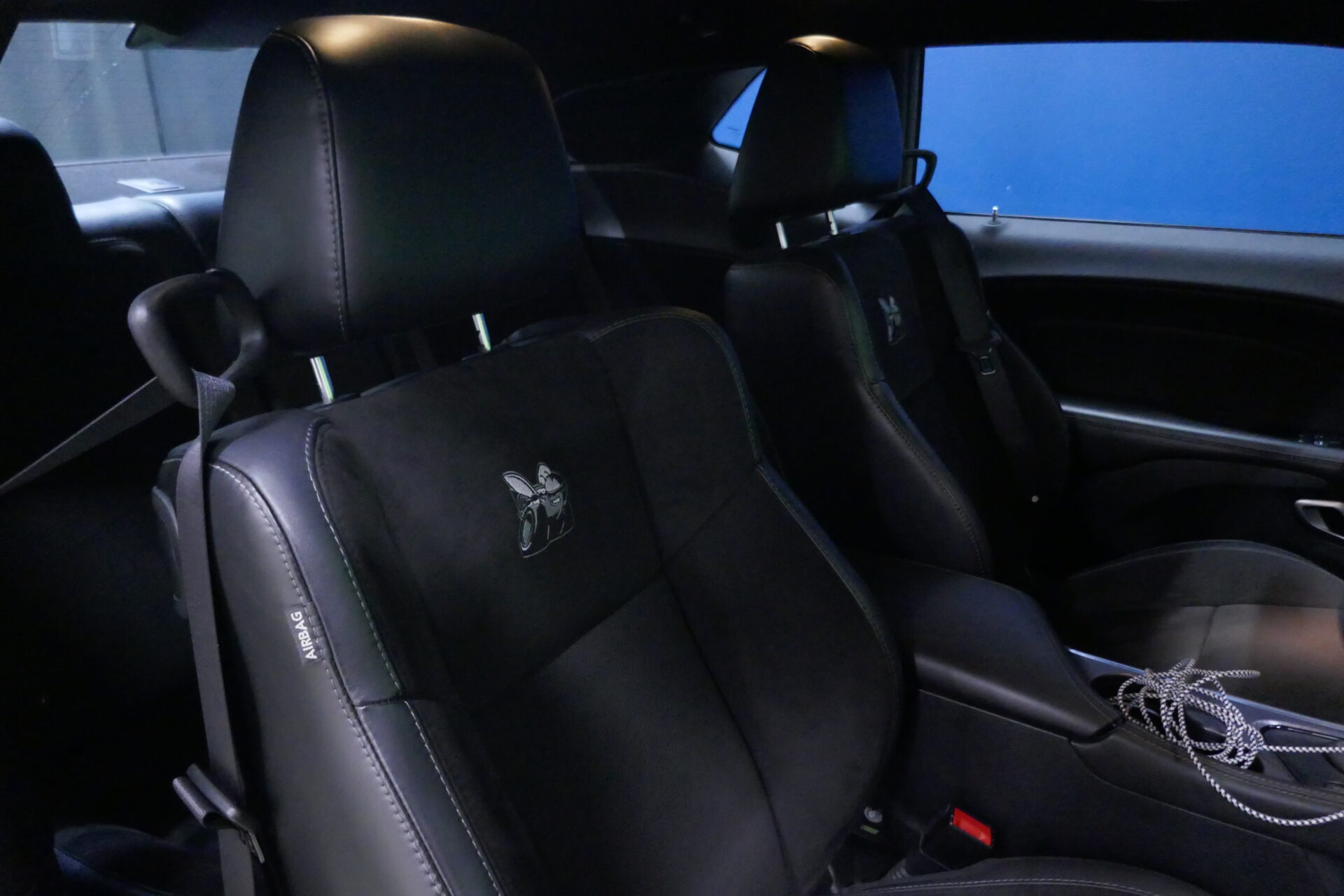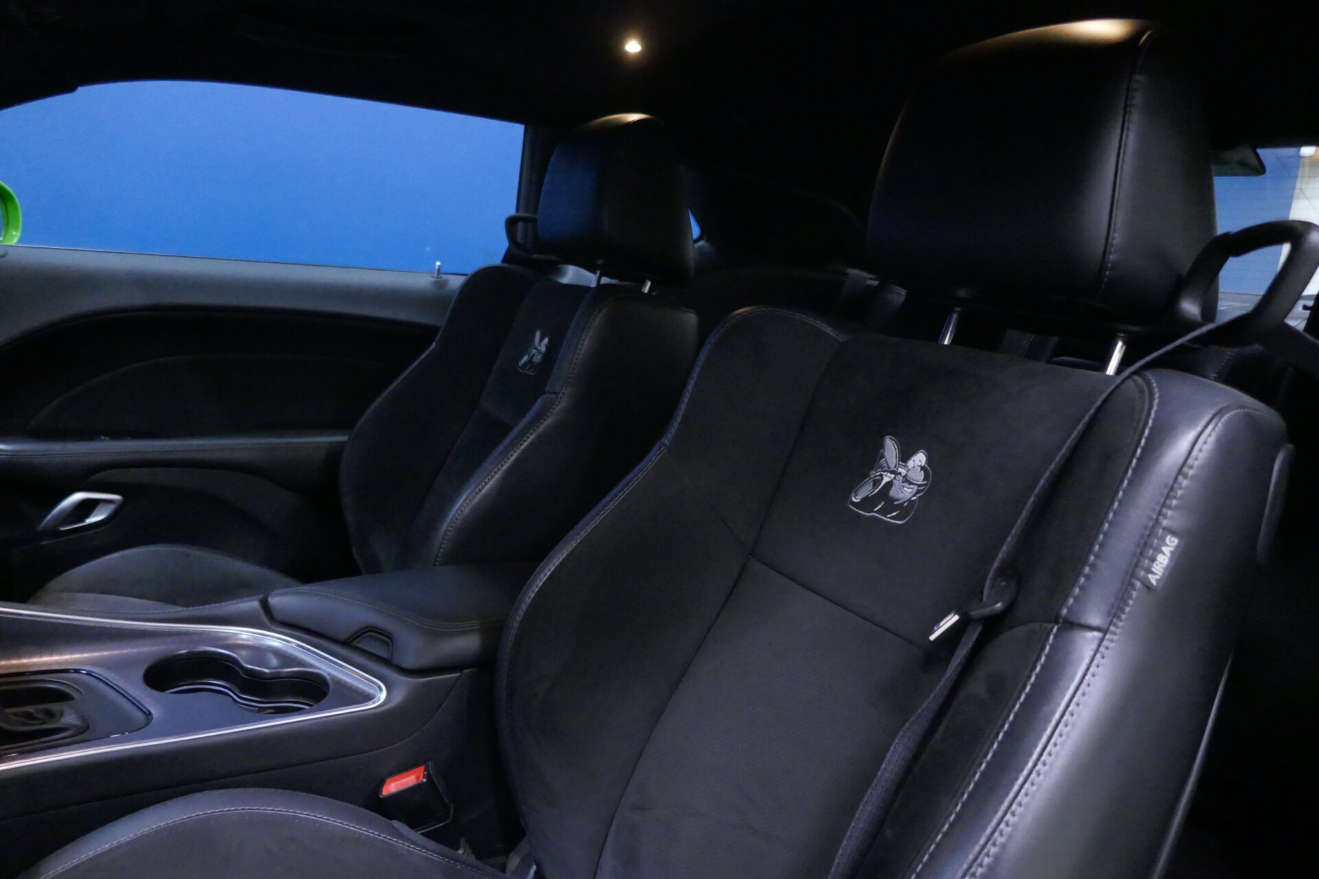 Chez Dodge, ce sont les petits détails sympas qui comptent. Une silhouette de la voiture (avec les prises d’air sur le capot) sert de témoin de porte ouverte, par exemple. Il y a même deux porte-gobelets dissimulés sous le capot, pour pouvoir se désaltérer en contemplant le V8 après l’avoir refait entièrement, dans 40 ans.