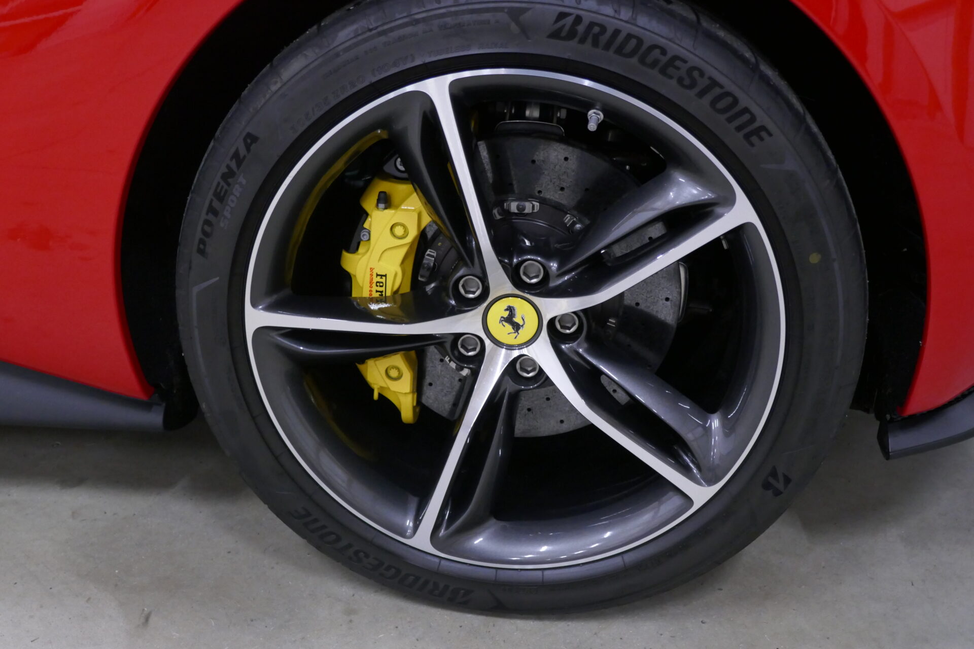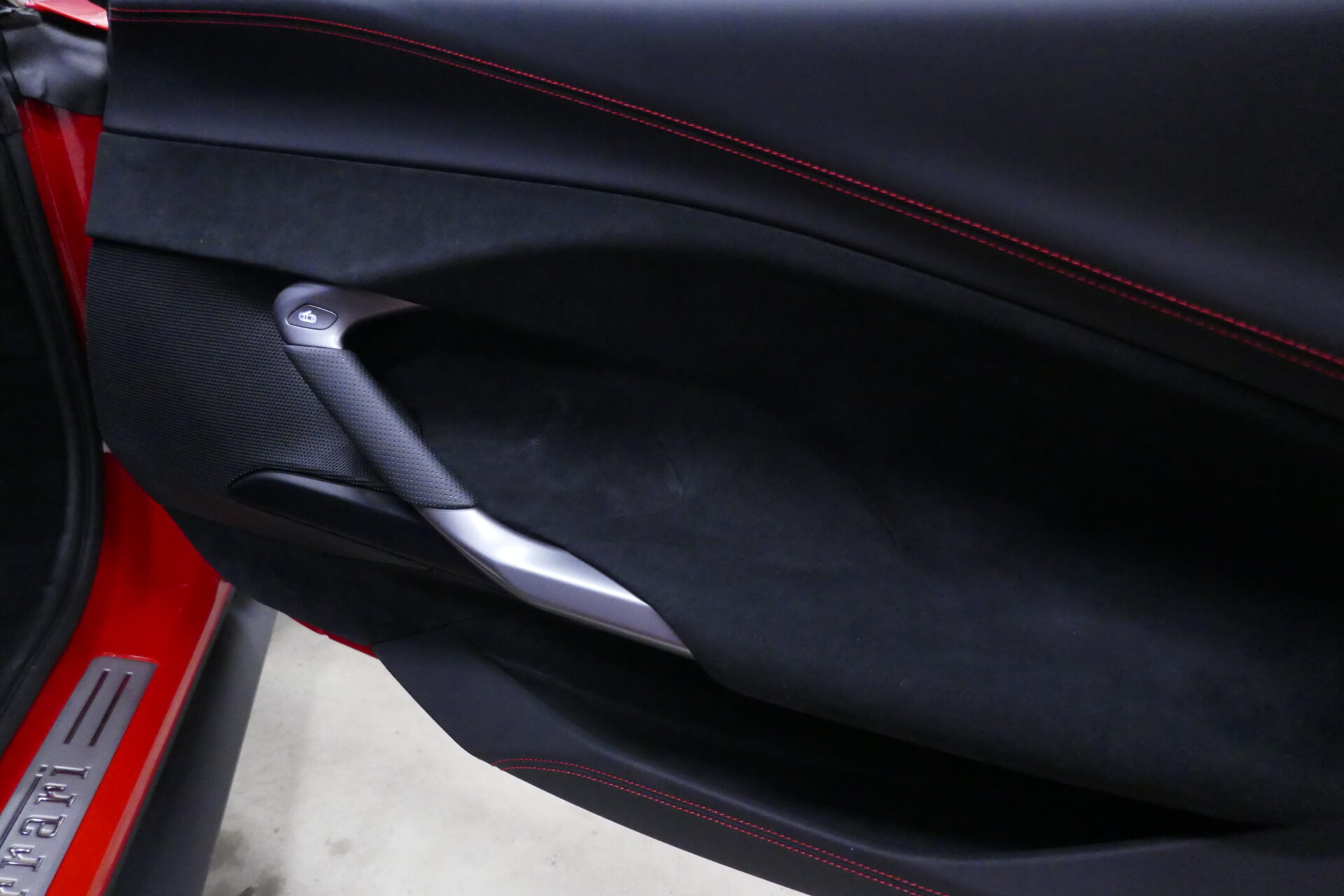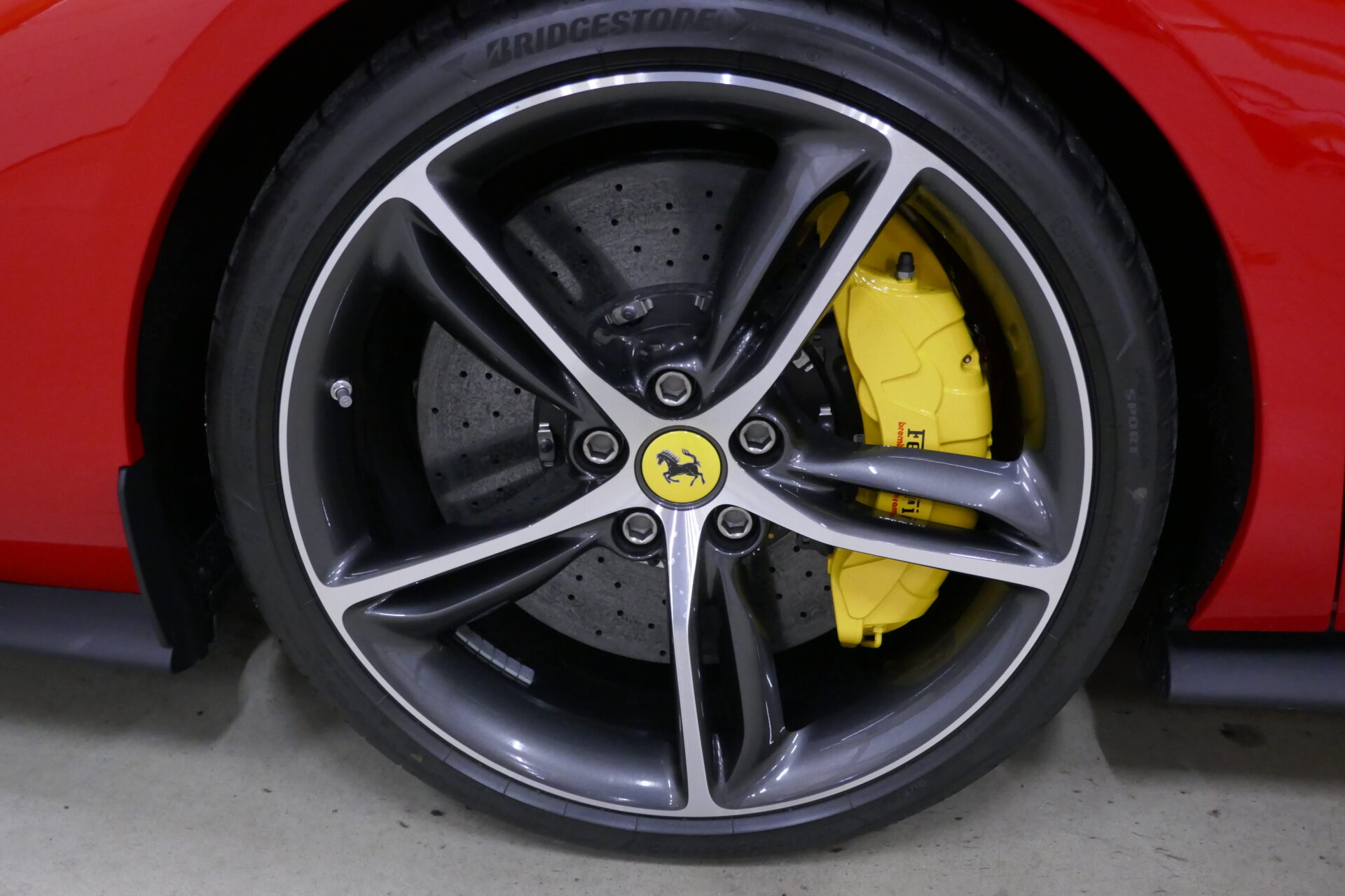 En basculant le e-Manettino sur Performance, afin que le V6 s’éveille et que la chaine de traction maintienne toujours de l’énergie dans la batterie pour disposer d’un maximum de puissance en permanence. Manettino sur Race, la 296 dévoile alors l’autre facette de son visage, celle d’un Mirage 2000 qu’on aurait lâché sur la route. Dans une sonorité réussie, le nouveau V6 à 120° de Maranello montre toute l’étendue de sa force. De 1 500 tr/mn – où les turbos et le moteur électrique gomment déjà tout temps de réponse – à 8 500 tr/mn, la GTB vous satellise en permanence. Plus que les accélérations brutes (0 à 100 km/h en 2,8 s, 0 à 200 km/h en 7,4 s), les reprises sont lunaires. Notamment parce que 900 Nm de couple sont disponibles ! Autant dire que sur la route, les vitesses atteintes sont ahurissantes, sans que jamais conducteurs ou passagers ne soient secoués. Comme toujours chez Ferrari, chaque rapport de boîte bénéficie de sa propre courbe de couple, afin de donner cette impression d’une puissance qui va crescendo au fil du compte-tours. Une progressivité qui manque d’ordinaire aux moteurs suralimentés. Autre bon point, le freinage, rassurant car à la fois puissant et dosable. Gérée à la quasi-perfection quel que soit le type de conduite, la boîte “8” répond au millimètre près au pied droit et permet de se passer totalement des palettes pour profiter de la précision de la 296.