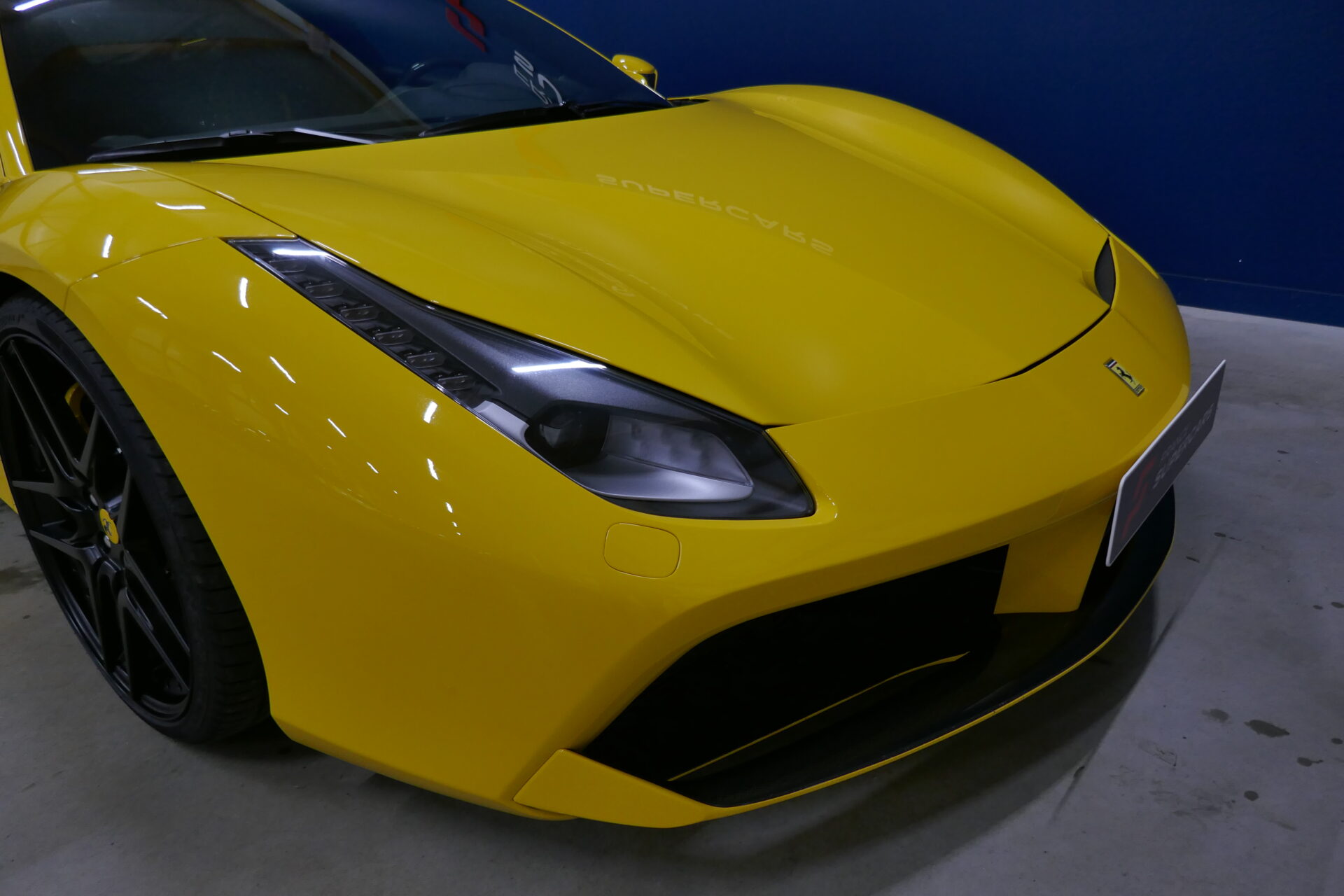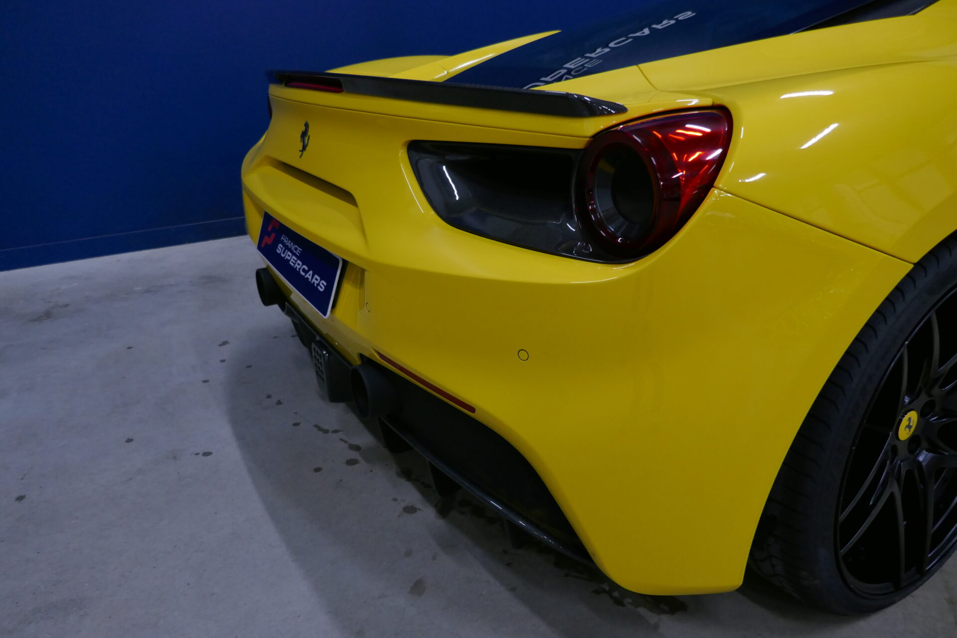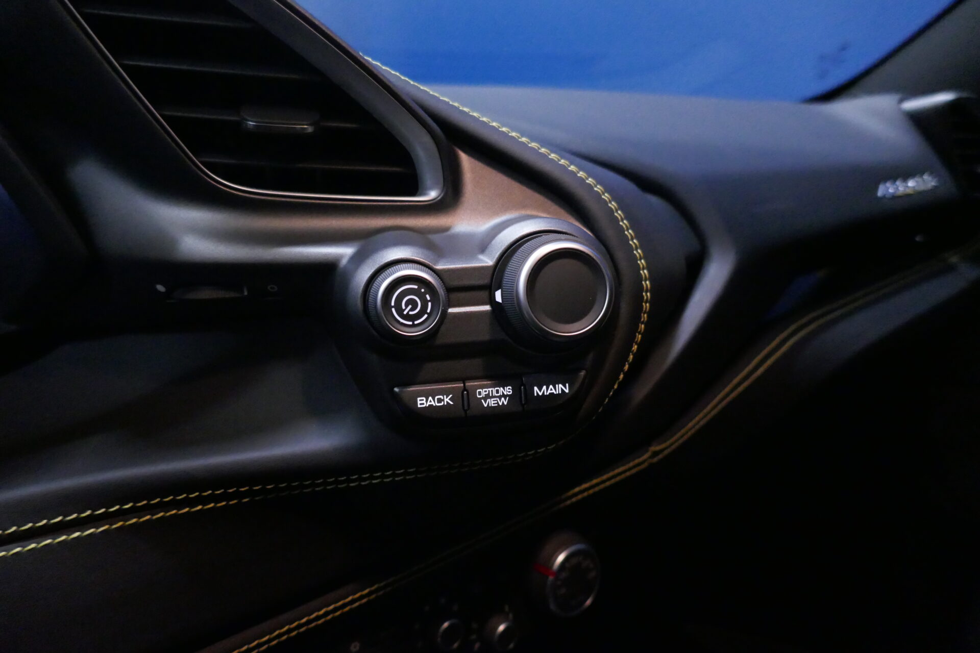 La 488 GTB dispose d’un fond plat, rainuré par des vortex qui accélèrent la dispersion des flux, tout comme l’extracteur arrière actif : un «Flap» amovible propulse l’air de manière horizontale pour éviter toutes perturbations aérodynamiques.