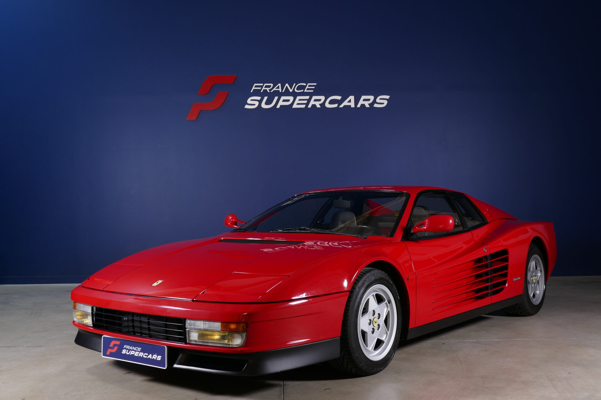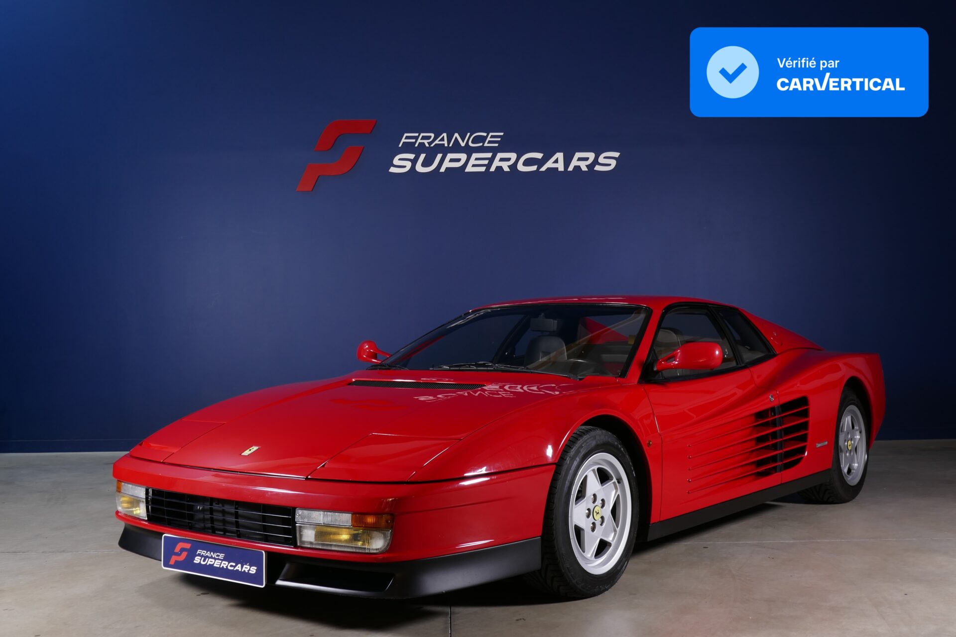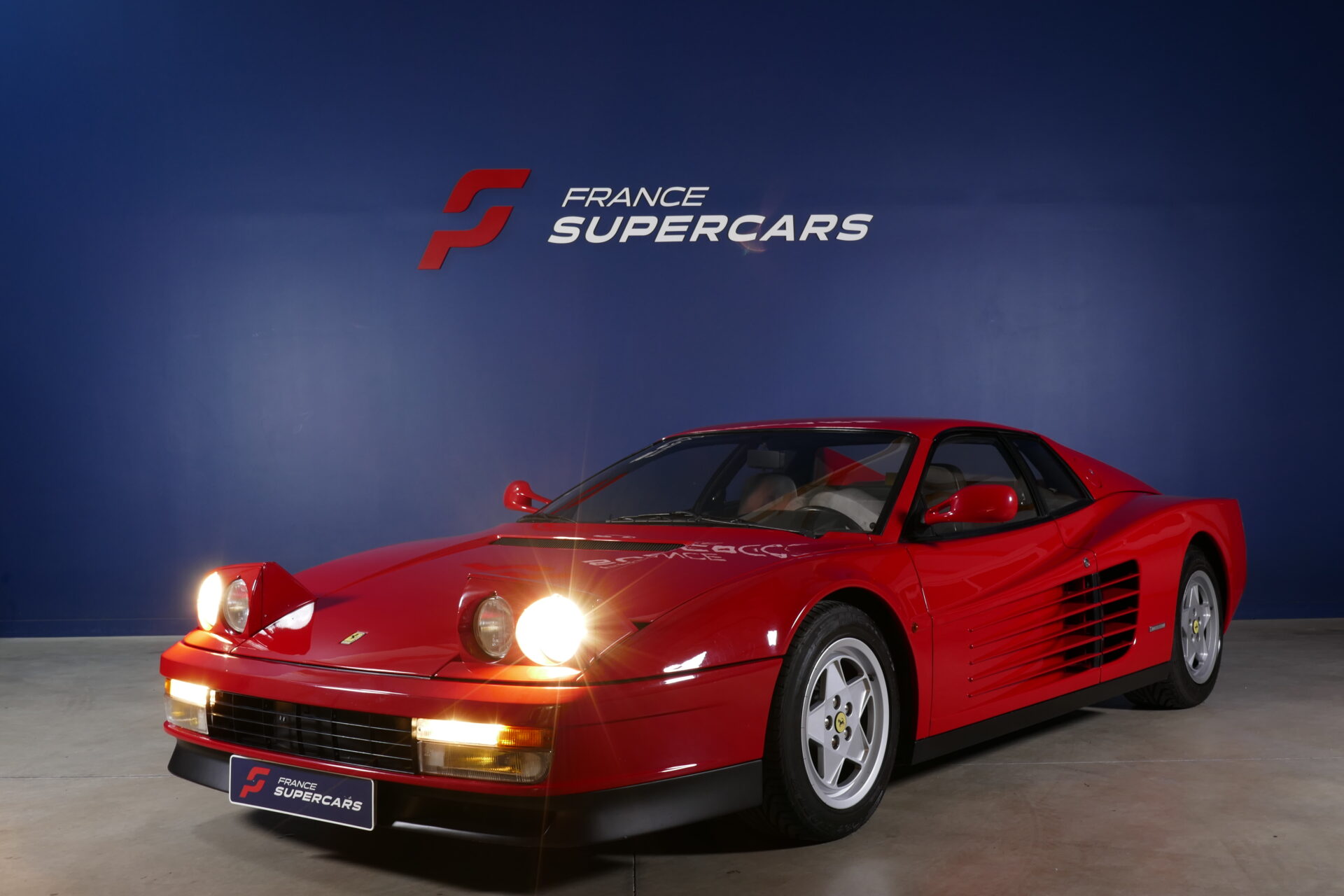 Révélée au salon de Paris, la Testarossa remporte un grand succès, une liste d'attente de deux ans se formant rapidement, malgré son prix stratosphérique : 821 000 FF. Il faut dire qu'elle dépasse les 290 km/h ! Jusqu'en 1985, elle s'équipe de jantes TRX à fixation centrale, puis passe à des éléments montés sur des pneus conventionnels. En 1986, elle reçoit deux rétros extérieurs implantés plus bas. Puis en 1988 elle modifie légèrement son habitacle ainsi que sa suspension, et se voit dotée de nouvelles jantes fixées par cinq boulons.