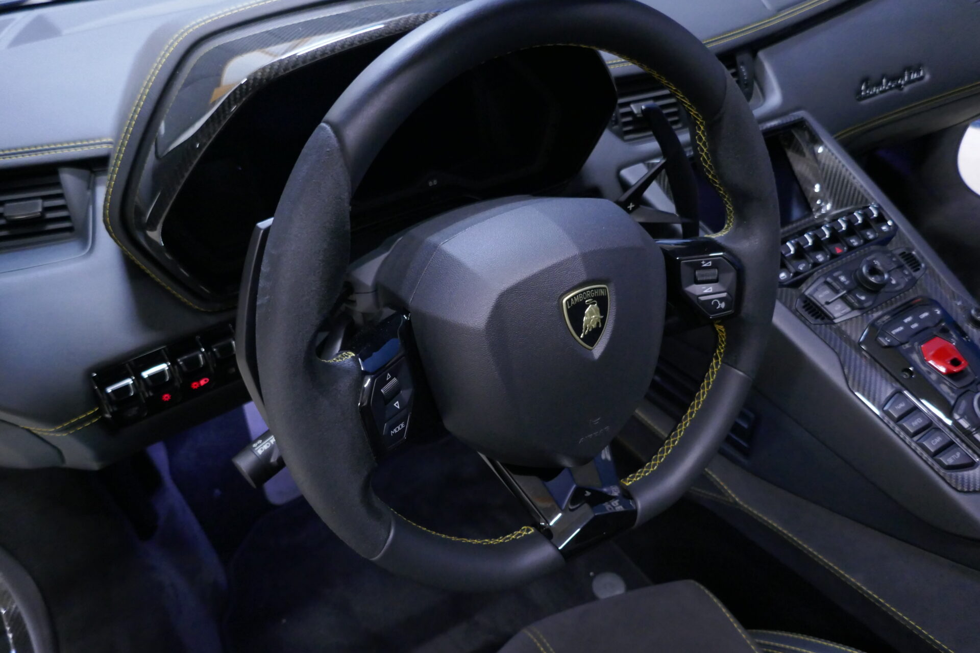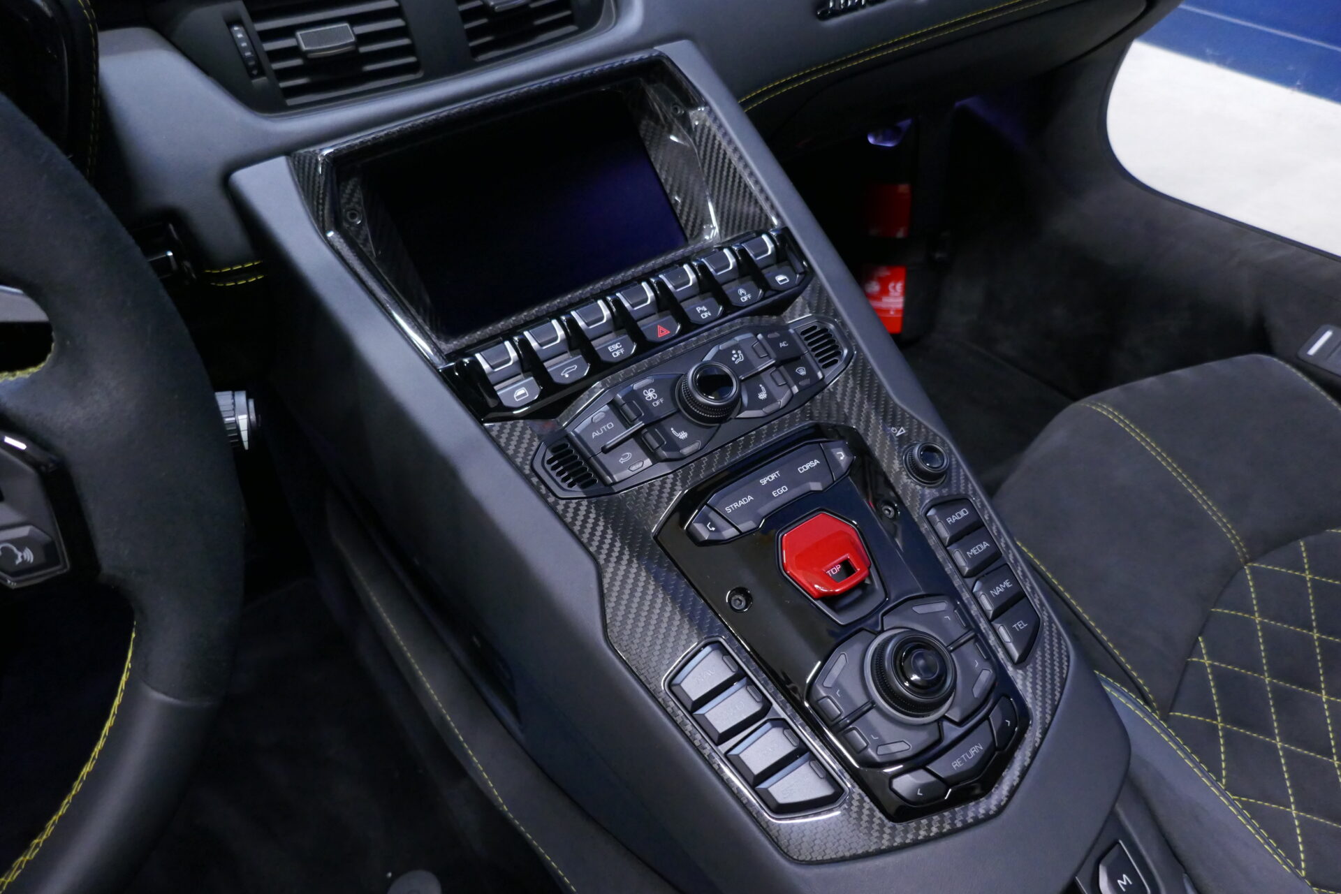 Comme Lamborghini a fait de la construction légère en carbone sa nouvelle carte de visite, l'Aventador S y a abondamment recours. Pour renforcer sa coque en polymère, pour la réalisation des éléments de carrosserie et pour l'habillage de l'habitacle. Résultat: un poids à sec d'un peu moins de 1600 kg. Considérant la masse de son moteur et ses dimensions extraordinaires, cela relève presque de l'exploit. En matière d'électronique et de connectivité, la firme italienne s'en remet aujourd'hui plus que jamais à son propriétaire Audi.