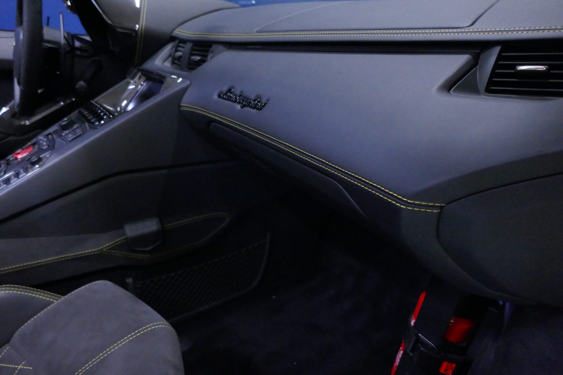 Même dans sa version S Roadster, les portières en élytres demeurent, mais l'absence de toit rend l'accès et la sortie de ce véhicule moins problématiques que de coutume. Les deux occupants se trouvent ici séparés par une large console parsemée de boutons. Les sièges sont confortables sur de courtes et moyennes distances. L'Aventador S à tout un caractère, c'est vrai, mais dans un monde envahi de véhicules insipides et sans saveur, on peut aussi fort bien s'en accommoder.