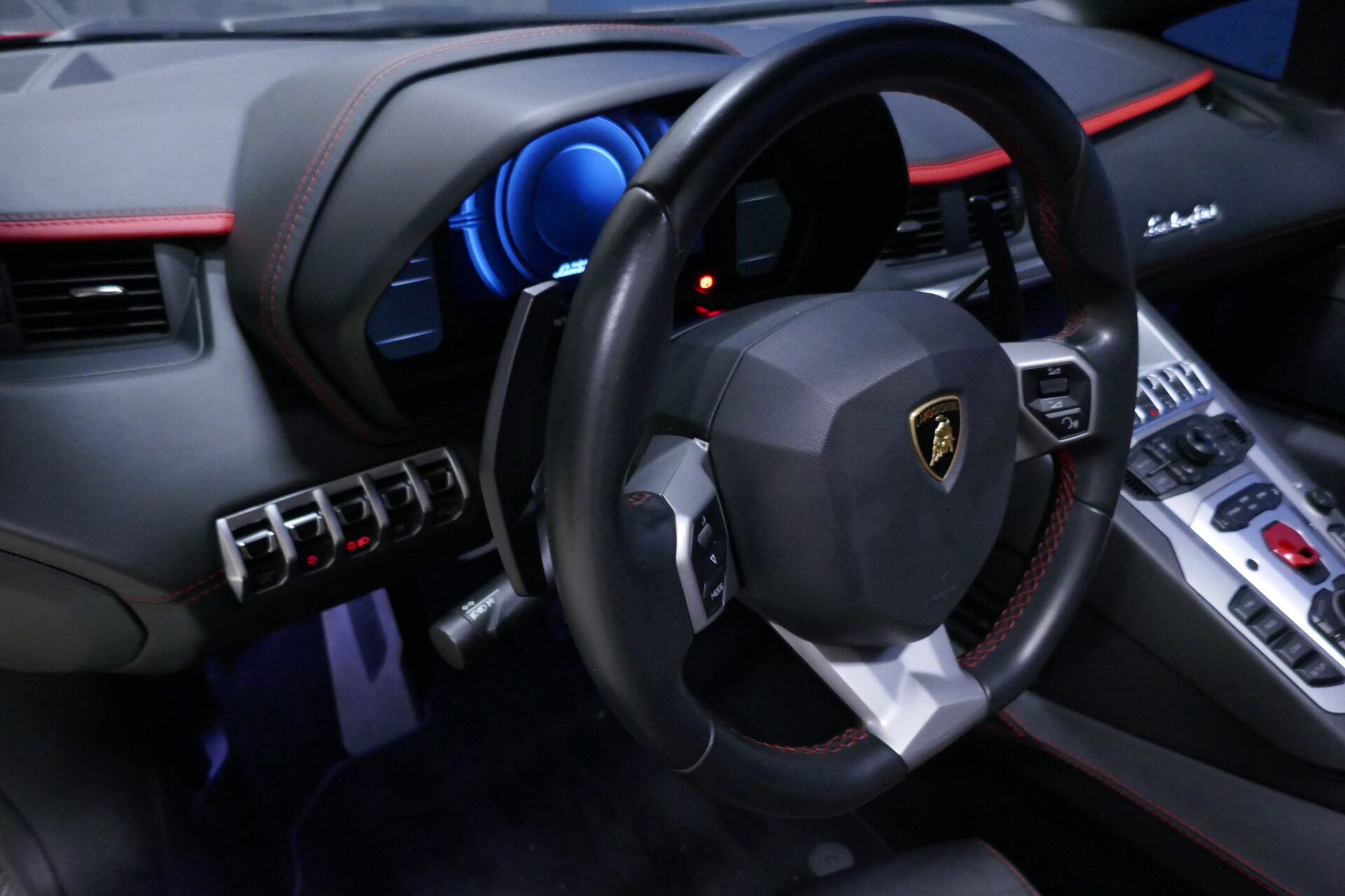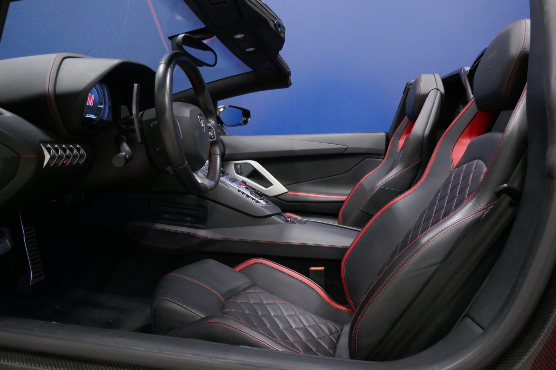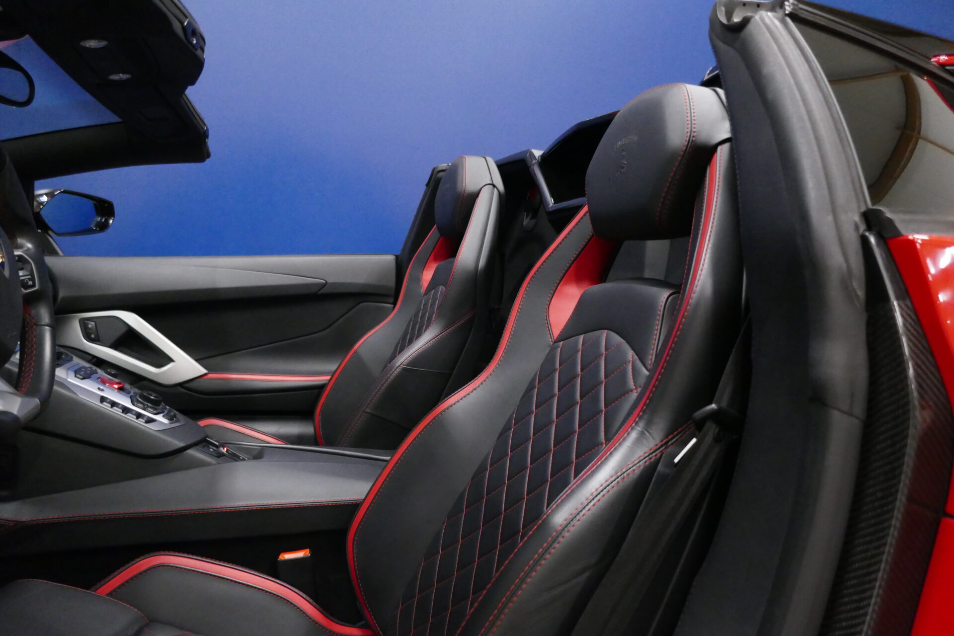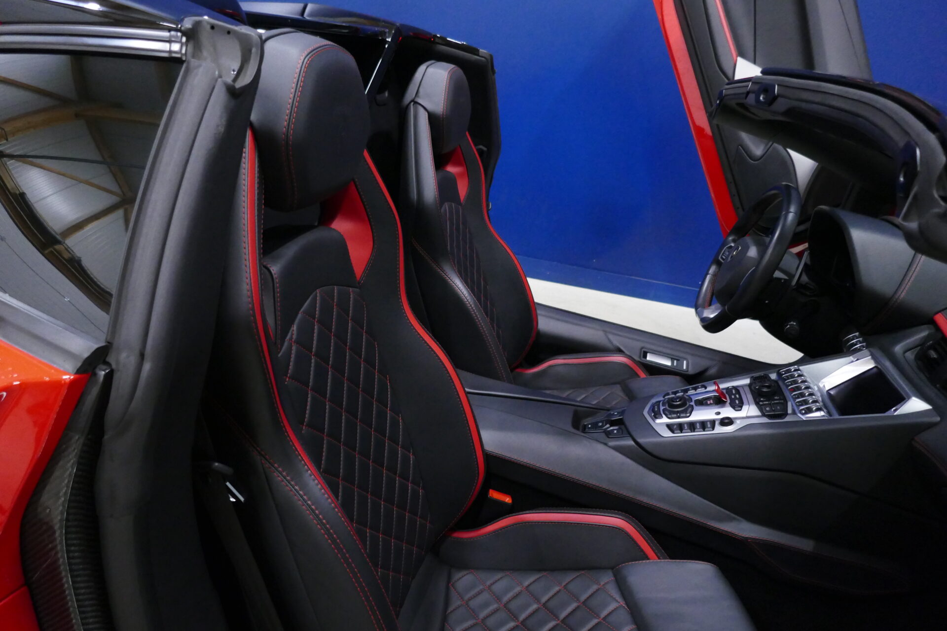Même dans sa version S Roadster, les portières en élytres demeurent, mais l'absence de toit rend l'accès et la sortie de ce véhicule moins problématiques que de coutume. Les deux occupants se trouvent ici séparés par une large console parsemée de boutons. Les sièges sont confortables sur de courtes et moyennes distances. L'Aventador S à tout un caractère, c'est vrai, mais dans un monde envahi de véhicules insipides et sans saveur, on peut aussi fort bien s'en accommoder.