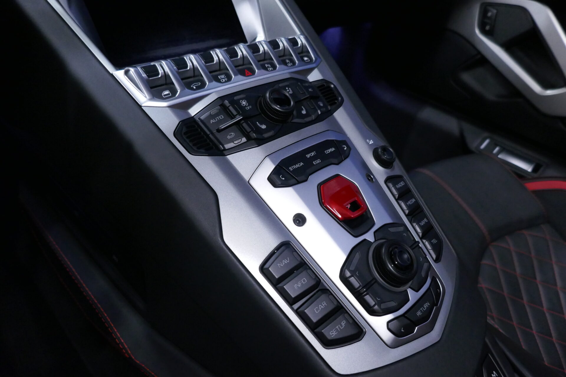 Comme Lamborghini a fait de la construction légère en carbone sa nouvelle carte de visite, l'Aventador S y a abondamment recours. Pour renforcer sa coque en polymère, pour la réalisation des éléments de carrosserie et pour l'habillage de l'habitacle. Résultat: un poids à sec d'un peu moins de 1600 kg. Considérant la masse de son moteur et ses dimensions extraordinaires, cela relève presque de l'exploit. En matière d'électronique et de connectivité, la firme italienne s'en remet aujourd'hui plus que jamais à son propriétaire Audi.