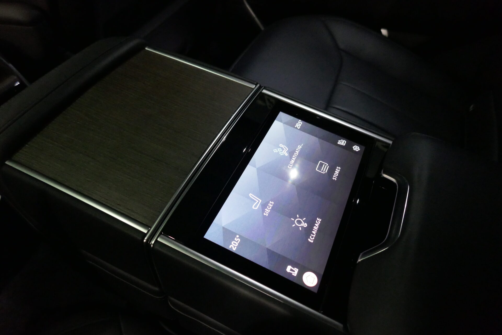 L'arsenal technologique de ce nouveau Range Rover est clairement à la hauteur de nos attentes. On ne voit pas grand-chose, le constructeur britannique mise sur le minimalisme. La planche de bord est très épurée, le moindre rangement est très bien dissimulé avec des matériaux nobles (cuir, marqueterie, voire de la céramique) et les passagers arrière auront même accès à une tablette tactile mobile qui permet de gérer la panoplie de gadgets à disposition. Sièges chauffants, massants, connexion internet, réglage des sièges... On peut tout faire. Vous pouvez également compter sur 14 points de recharge pour votre smartphone ou même purifier l'air de l'habitacle grâce à un système de traitement par nanoparticules. Et comme on est dans l'excellence, vous trouverez certainement l'environnement très silencieux. Pourquoi ? Eh bien parce qu'il y a un réducteur acoustique dans les appuie-têtes. Bref, à vivre, c'est un vrai palace.