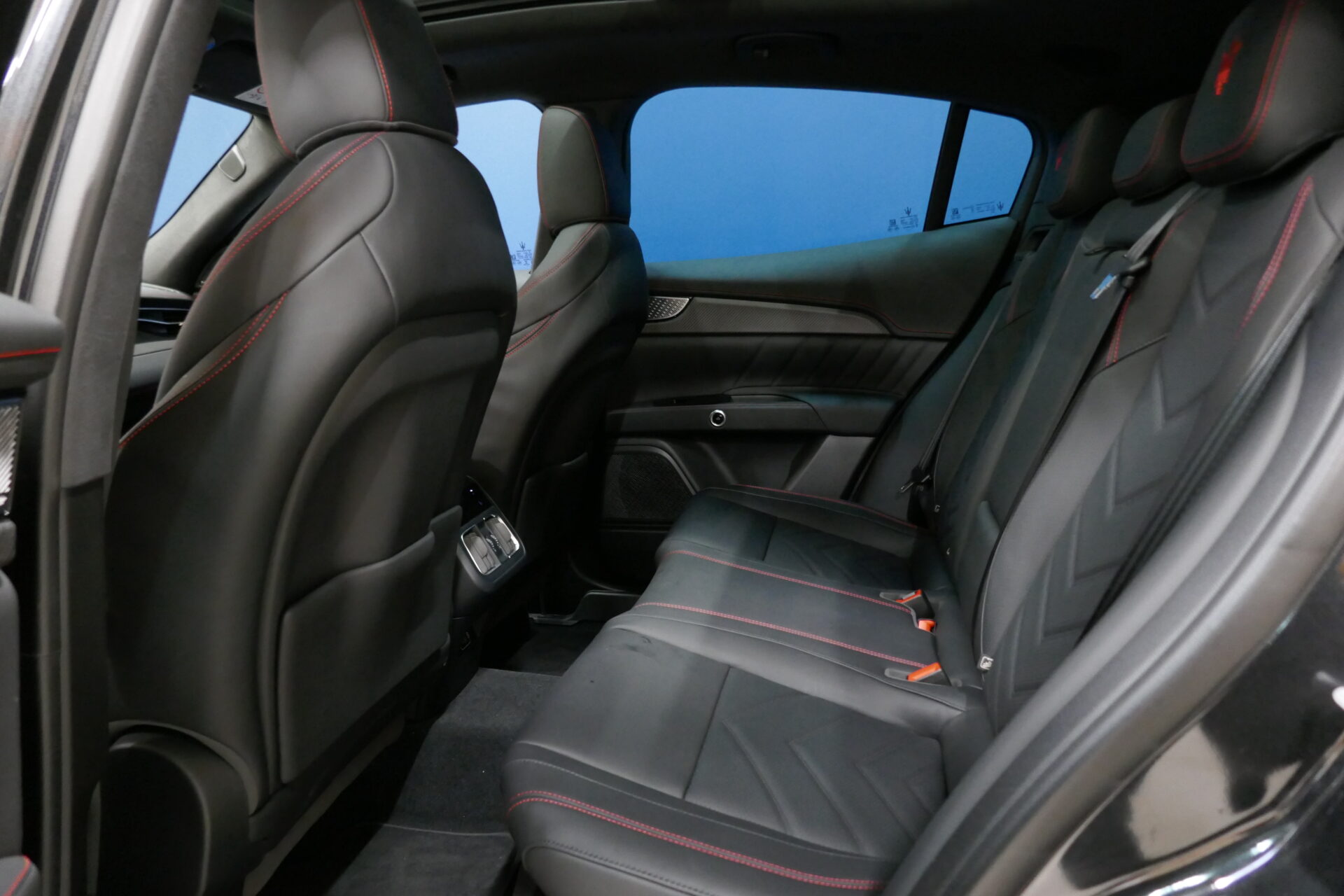La version GT, entrée de gamme du Grecale, avait su flatter nos oreilles par la mélodie de son moteur, pourtant un simple quatre-cylindres, bien plus musical que dans le Stelvio qui l’avait inauguré. Il faut dire que les ingénieurs avaient délicatement mis au point la ligne d’échappement, tels des organistes, pour trouver la note parfaite. Avec le Grecale Trofeo,le timbre du V6 est audible, grâce à un échappement encore une fois travaillé.