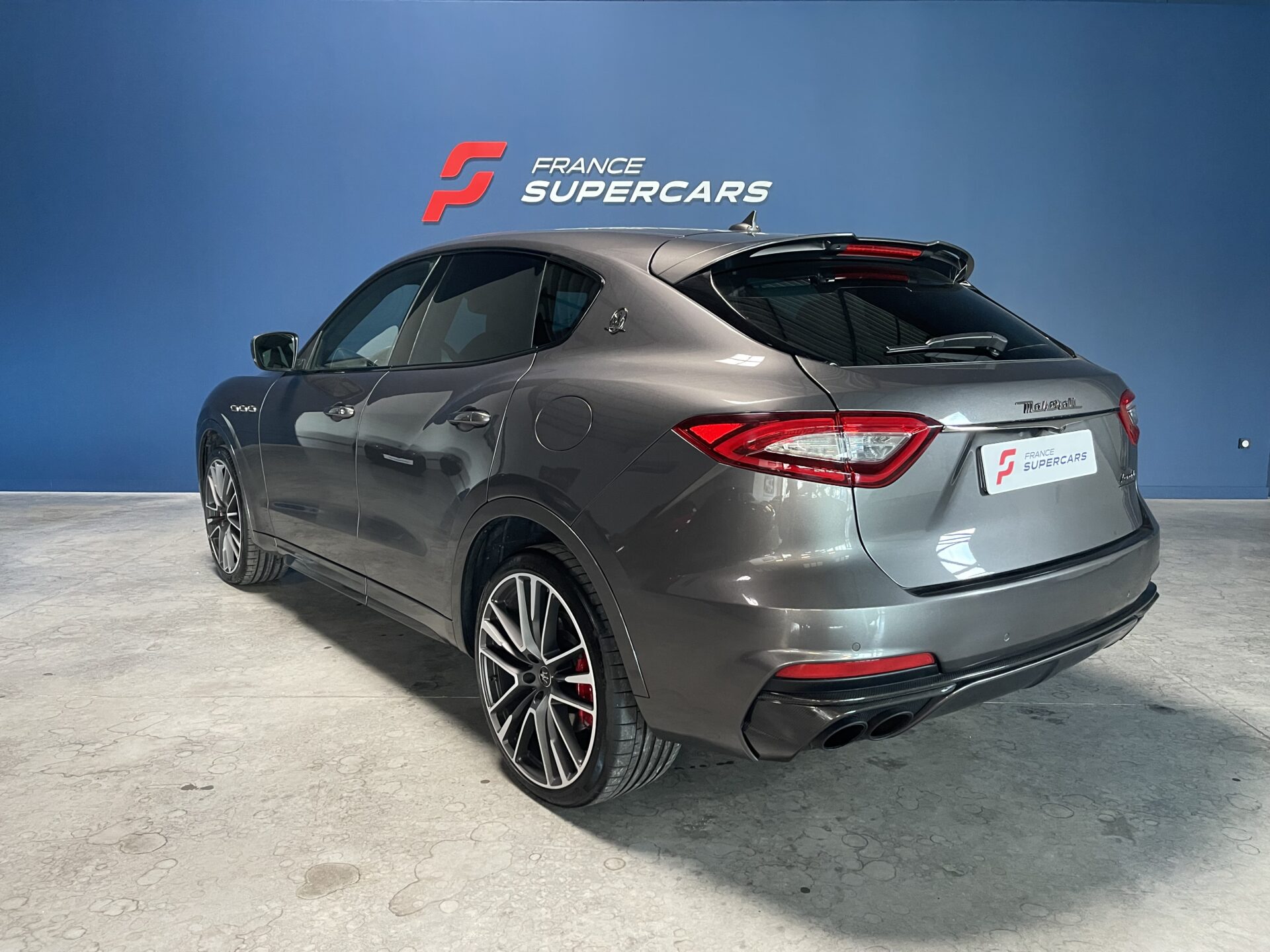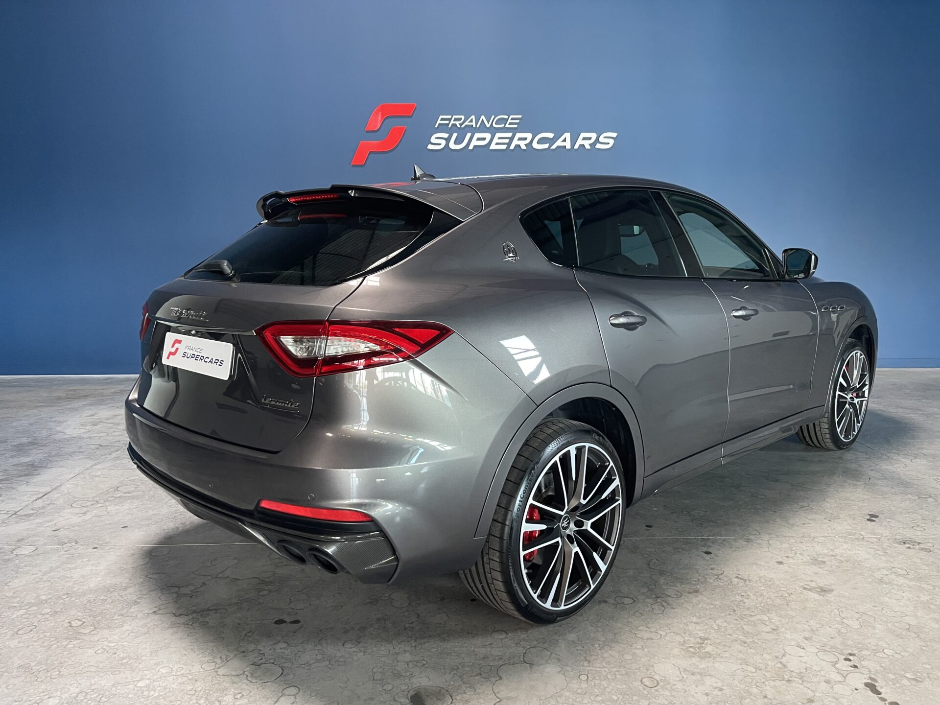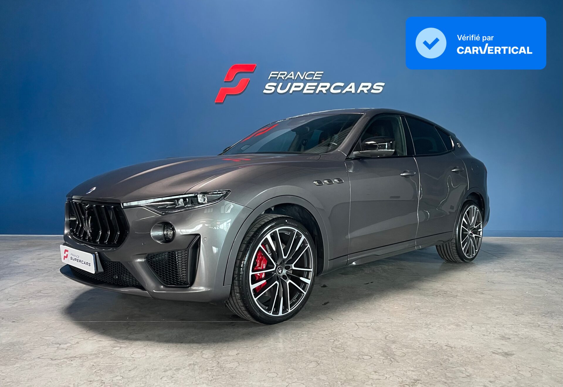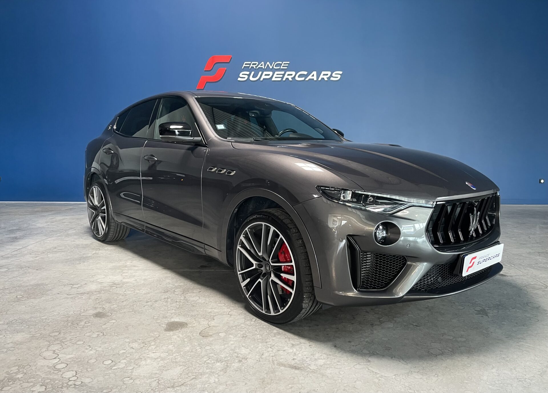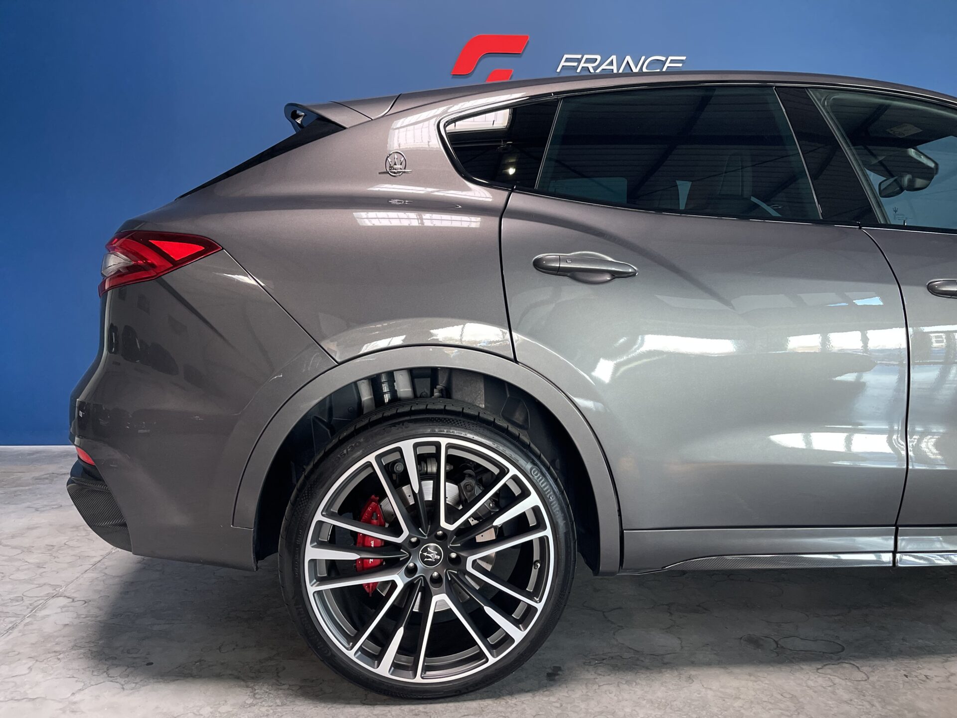Par rapport au modèle de base, le Levante Trofeo se veut d’emblée plus sportif tout en conservant sa classe naturelle. La carrosserie comporte des jupes latérales et plusieurs éléments avant/arrière en carbone. On a droit également à un capot en aluminium comportant deux prises d’air, ainsi qu’à une calandre et des contours de portières désormais peints en noir. Notre modèle est en outre équipé des jantes 22 pouces au design Orione qui se marient idéalement avec la teinte « Grigio ». Enfin, pour parachever le tout, le célèbre insigne du Trident présent au-dessus des ailes arrière est complété par l’inscription Trofeo.