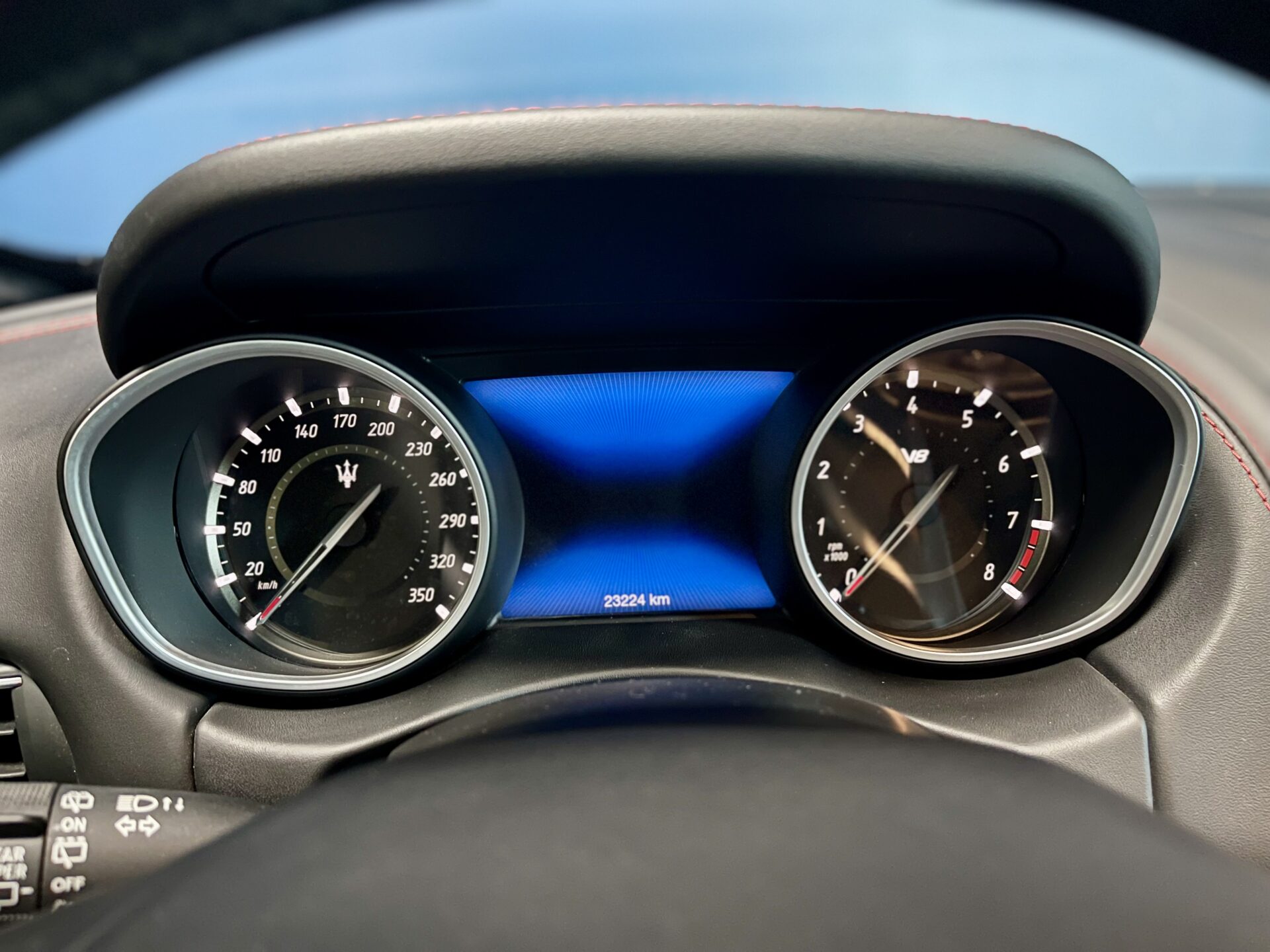 Les assistances à la conduite sont contrôlables facilement via le panneau Contrôles de l’écran central. Les suspensions, assez souples en mode Normal, deviennent plus fermes lorsque l’assiette du véhicule s’abaisse en mode Aero 1, manuellement ou via l’activation du mode Sport. Aussitôt activé, la bande son du V8 d’origine Ferrari prendra définitivement la main sur l’excellent système hi-fi signé Harman Kardon. A la fois musical et très volontaire jusqu’à passé 7’000trs/min, ce V8 3.8L bi-turbo de 580ch est sans aucun doute la pièce maîtresse de cette auto. Il lui permet en outre d’expédier le 0 à 100km/h en 3,7 secondes, soit plus d'une bonne seconde de moins que le Levante S.