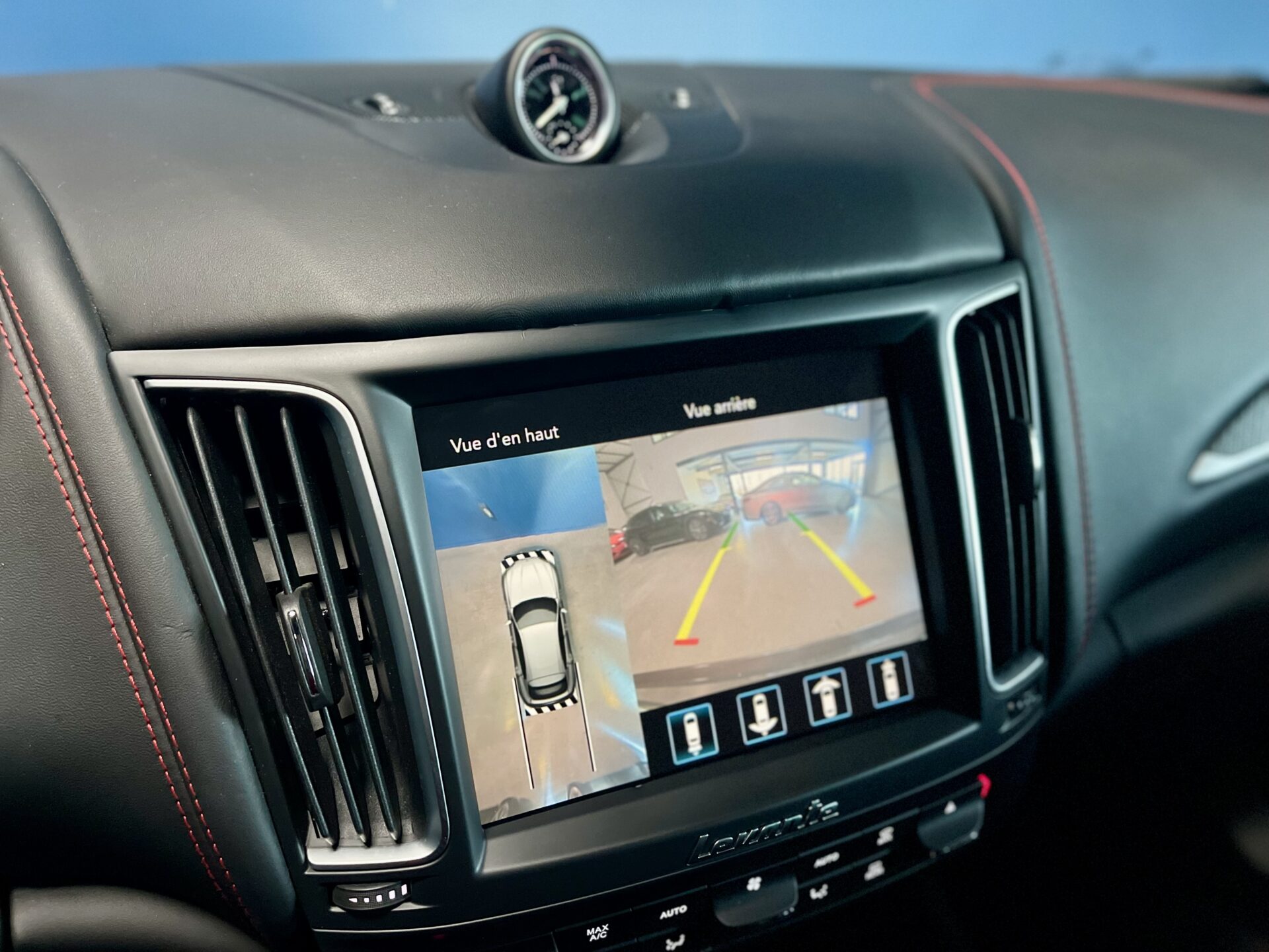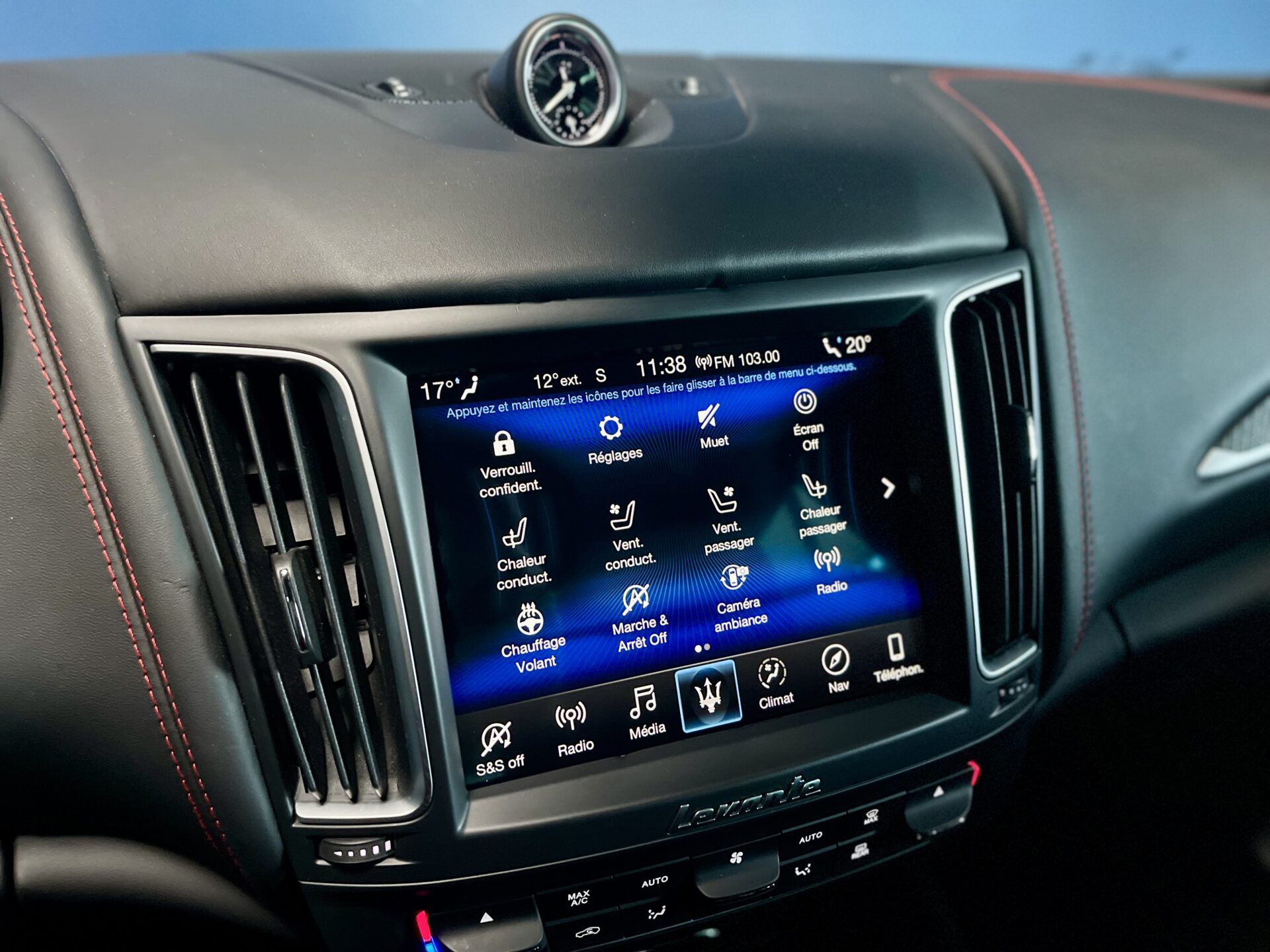 Avec ses appuis-tête estampillés Trofeo et ses inserts en maille métallique tressée, vernie, l’habitacle du Levante Trofeo mélange raffinement et sportivité. L’ergonomie demeure toujours convaincante avec un bon compromis entre le nombre de boutons et d’écrans.