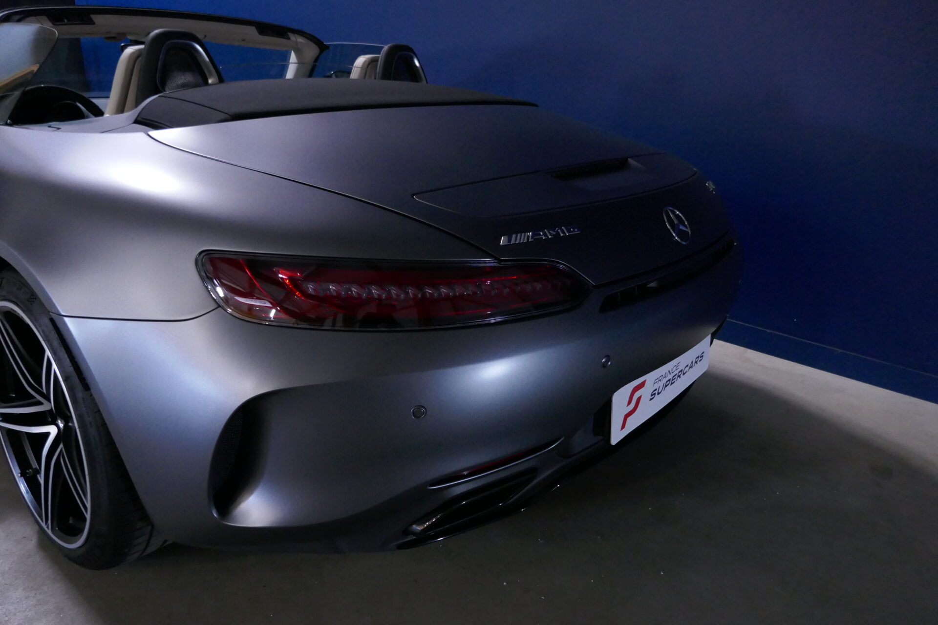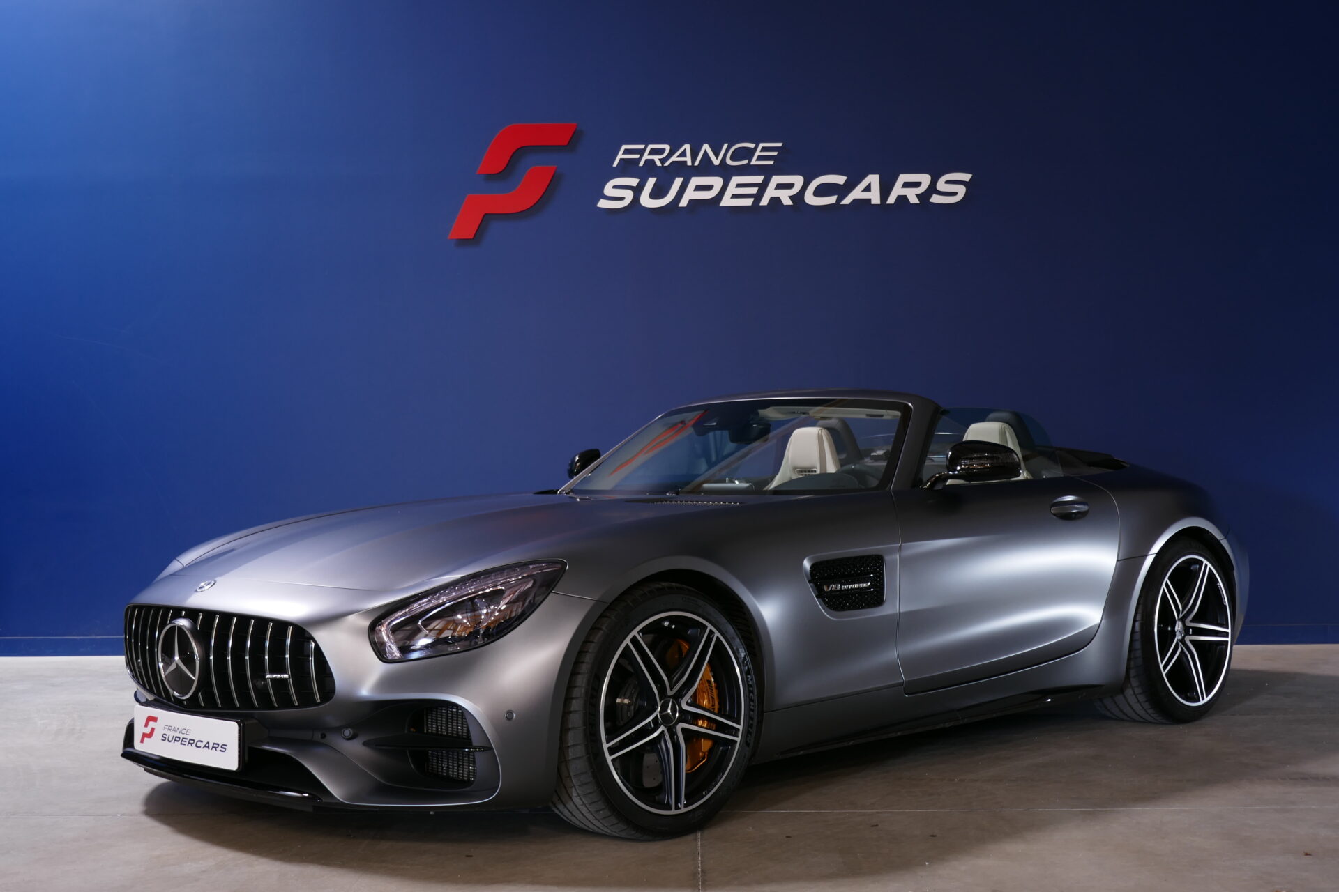 Sous cet immense capot se cache le même moteur que la Mercedes-AMG GT R, néanmoins légèrement dégonflé. Celui de la GT R propose 585 chevaux et 700 Nm de couple, contre 557 chevaux et 680 Nm pour la GT C Roadster. Il s'agit donc du bloc V8 bi-turbo (M178), ouvert à 90° et de 4,0 litres de cylindrée. Par rapport au moteur d'une Mercedes-AMG GT classique, la gestion a été modifiée, tout comme l'épure de distribution, et le taux de compression augmenté.