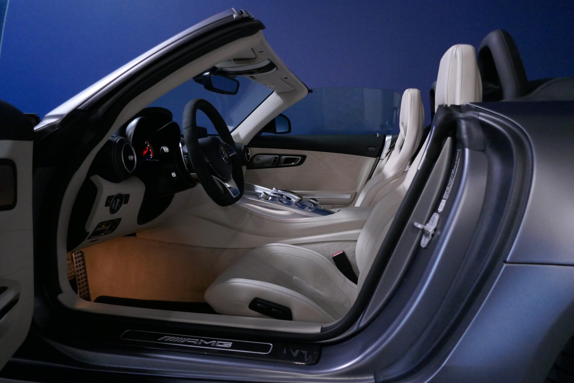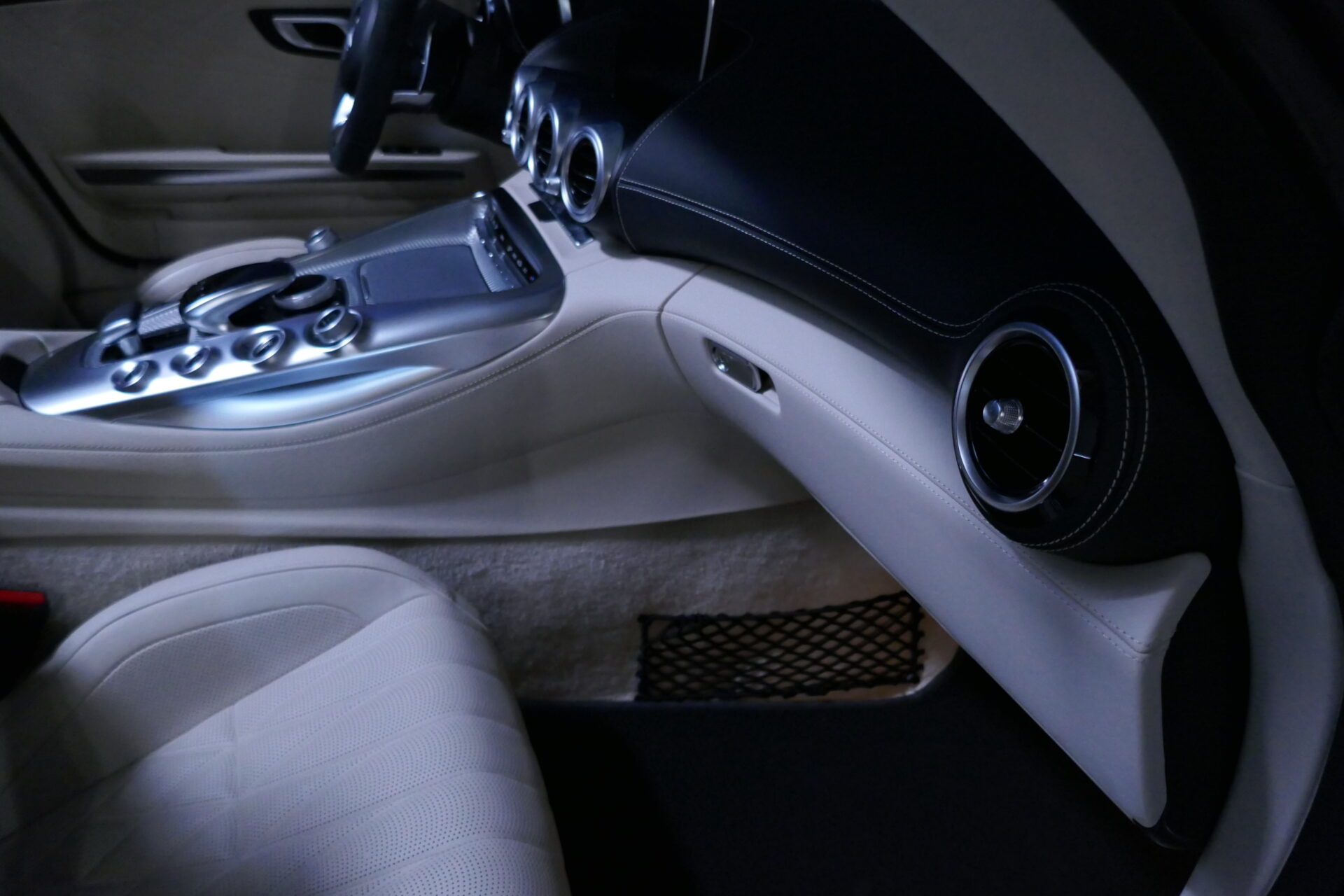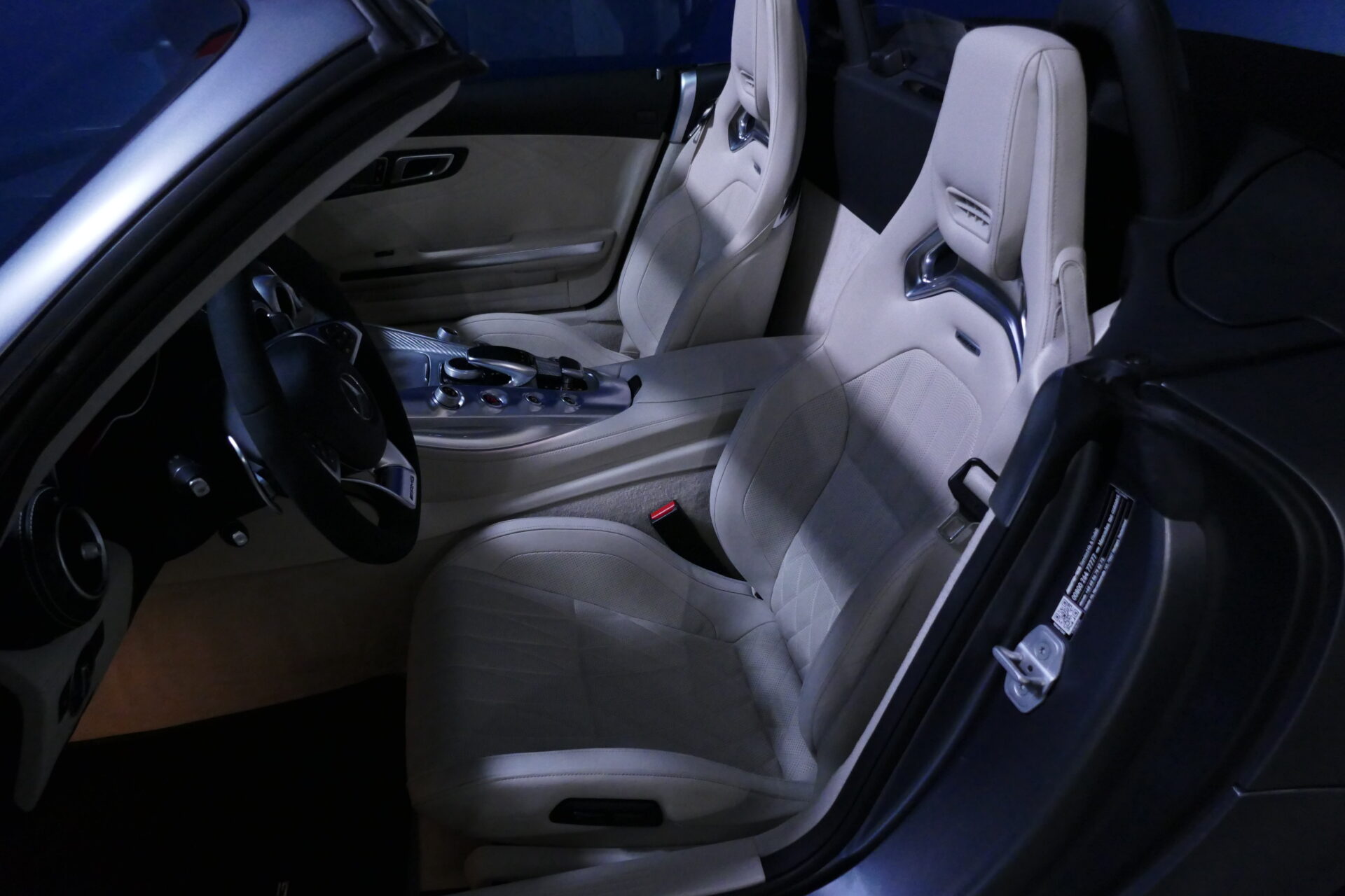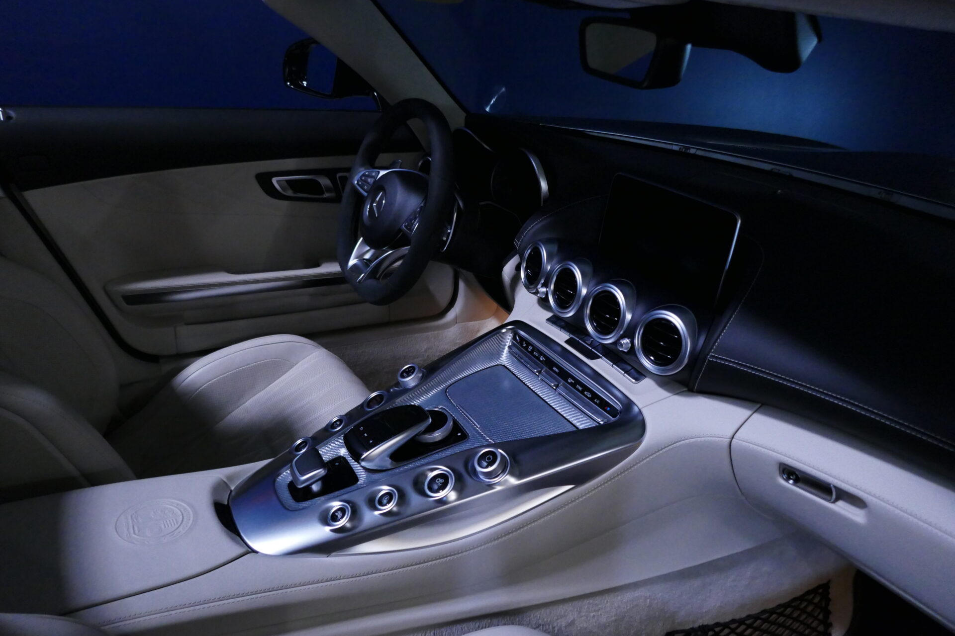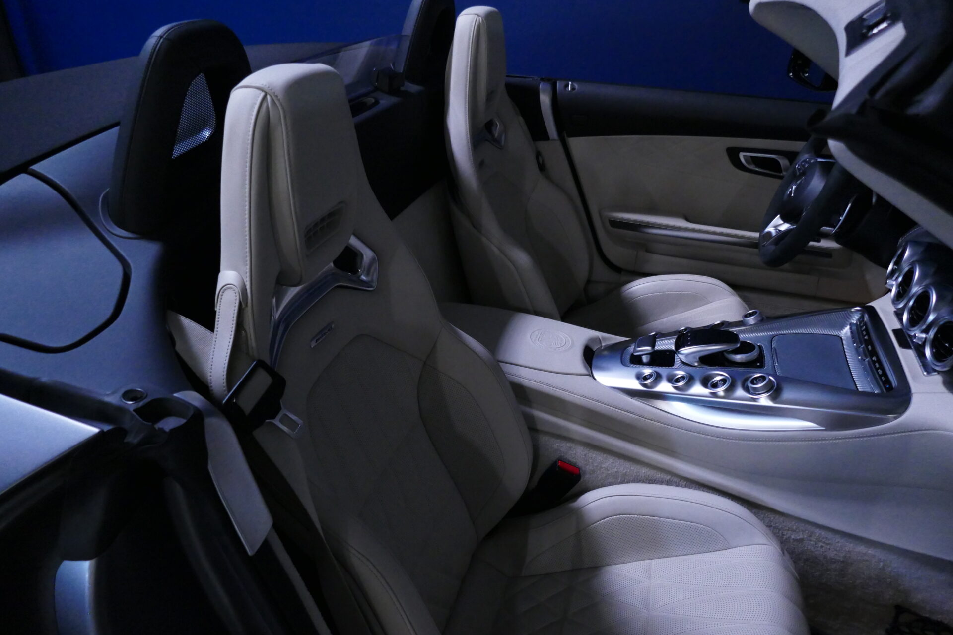 L'interieur de cette AMG GTC ne souffre d'aucun défaut particulier, bien au contraire. Les matériaux sont d'excellente qualité, les assemblages de même, le système d'info-divertissement est assez bien fait. Cabriolet sportif de luxe oblige, le chauffe-nuque est indispensable, Mercedes-AMG propose donc la technologie Airscarf, un système déjà inauguré, il y a quelques années, sur le SLK.