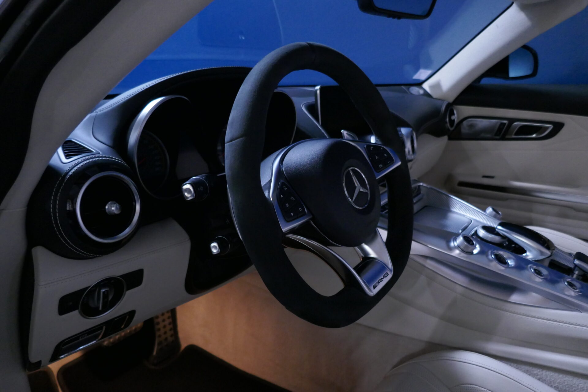 D'ailleurs, cette calandre est bien plus qu'un simple élément de style dessiné au hasard. Il s'agit d'un clin d'œil aux 300 SL engagées dans la course éponyme, dans les années 1950. Une démarche néo-rétro très appréciée ces temps-ci. En dehors de ça, un œil aguerri aura peut-être remarqué une train arrière plus large que sa cousine moins puissante. Pourquoi ? Tout simplement car la GT C adopte les trains roulant de la redoutable GT R. Et la GT R étant la plus puissante et certainement l'une des meilleures Mercedes-AMG de l'histoire, cela n'augure que du bon !