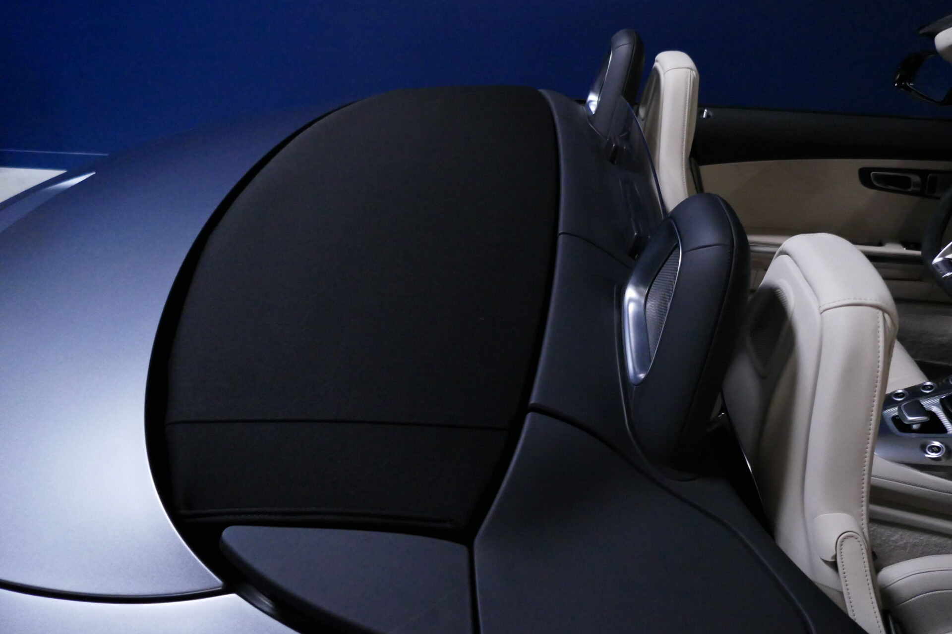 Le mécanisme d'ouverture et de fermeture de la capote qui peut s'activer jusqu'à 50 km/h. Il réclame 11 secondes pour s'actionner. Comme vous devez vous en douter, le roadster est un peu moins rigide que le coupé et accuse quelques kilos en plus. 55 kilos en l'occurrence pour cette version par rapport au coupé, le poids du mécanisme et des renforts. Ses 1735 kilos la place donc dans la catégorie des GT, même si ses performances trahissent des velléités de pure sportive. Le 0 à 100 km/h est abattu en 3,7 secondes et la vitesse maximale est de 316 km/h.