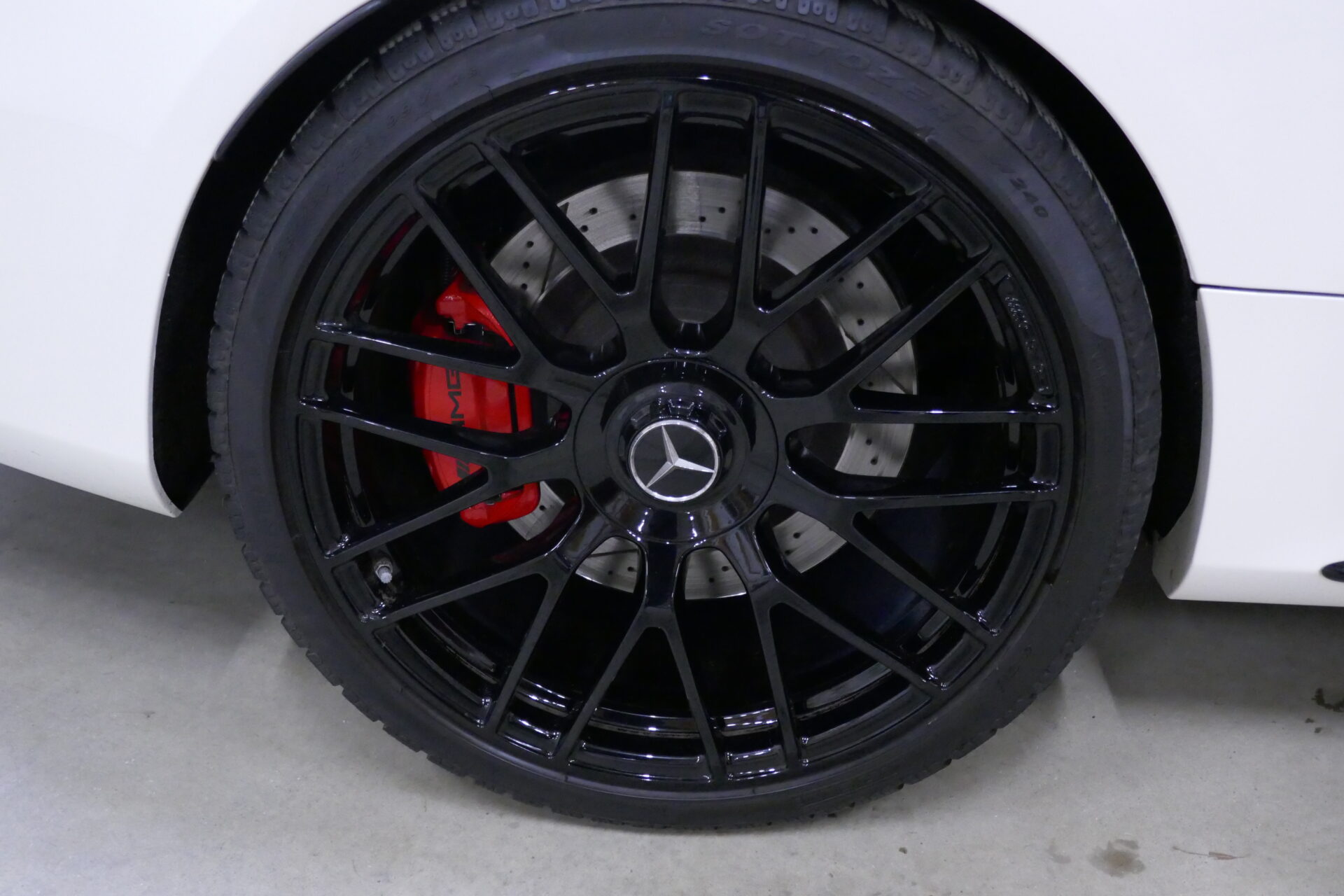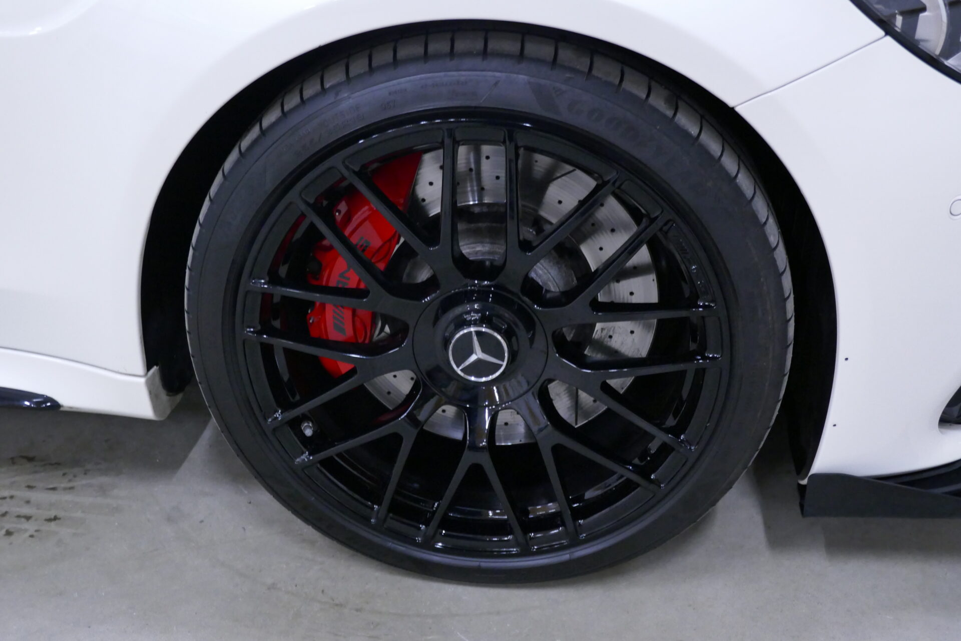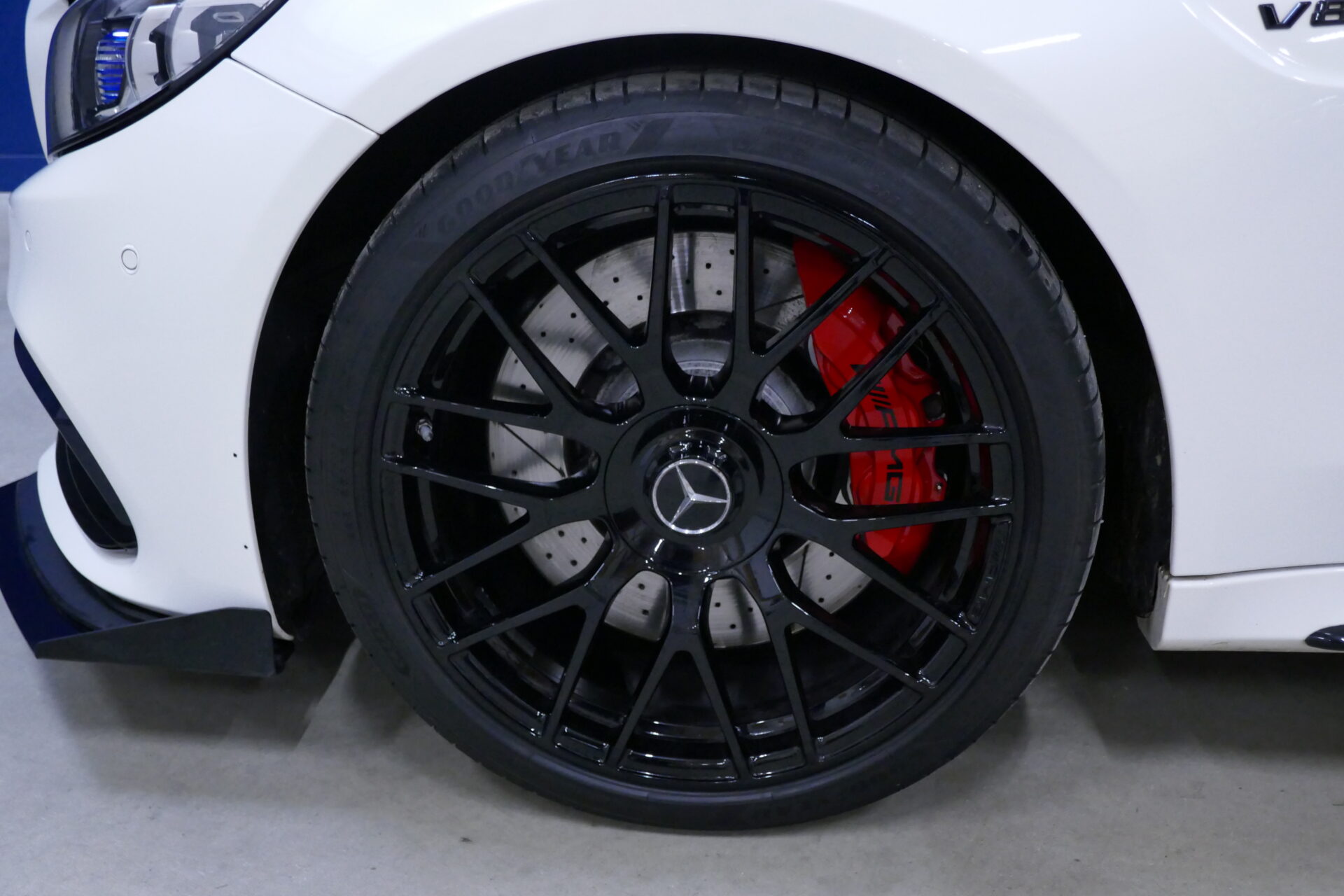 À l'exception du toit, des portes et du couvercle du coffre, tous les autres panneaux de la carrosserie ont été remplacés. Tout a commencé par un capot en aluminium plus long de 60 mm (2,36"), doté de deux powerdomes. Comme la voiture présente des voies plus larges, tant à l'avant qu'à l'arrière, AMG a installé de nouvelles ailes, plus larges de 64 mm (2,51") à l'avant et de 66 mm (2,59") à l'arrière, respectivement. À l'avant, la calandre est dotée d'une lamelle horizontale à deux lamelles et d'un nouveau tablier avec de larges prises d'air. Sur le couvercle du coffre, AMG a installé un spoiler supplémentaire.