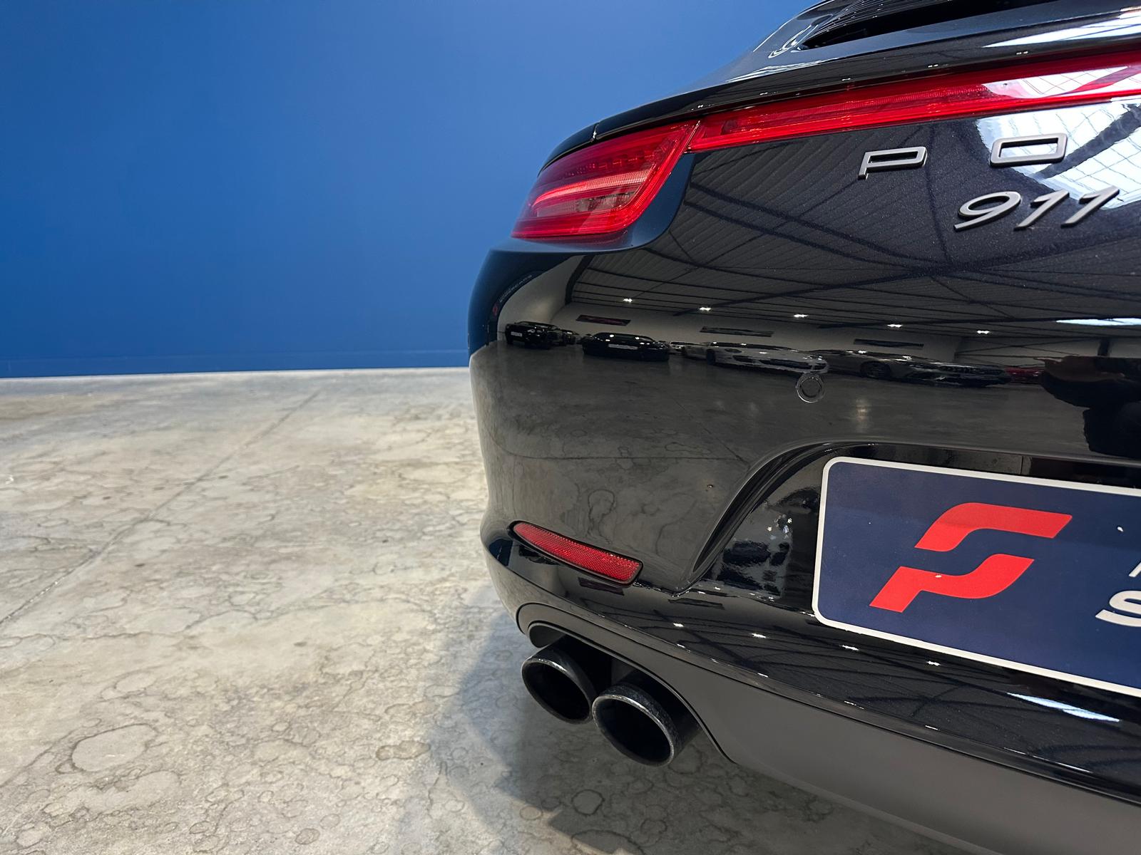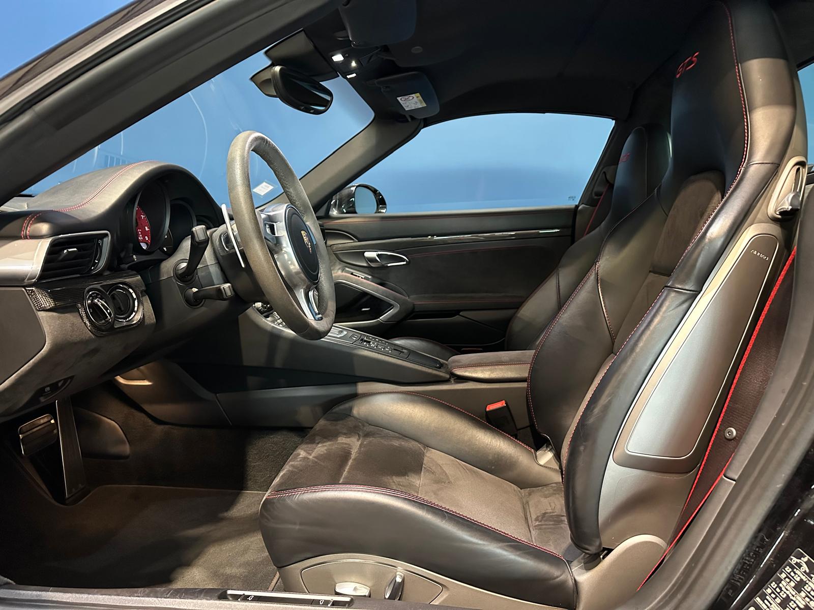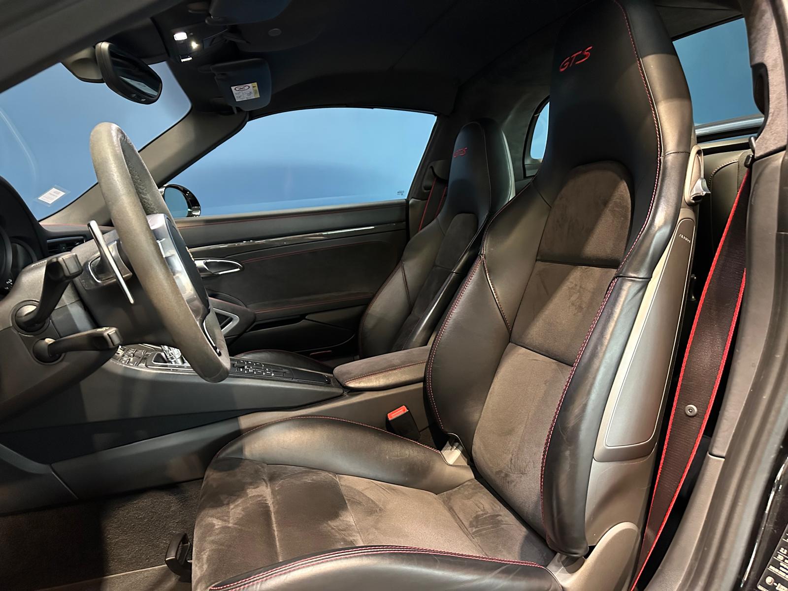 Mais la 911 Carrera GTS, ce n'est pas qu'une histoire de moteur. La carrosserie bénéficie ainsi d'éléments spécifiques, comme un bouclier avant entièrement redessiné afin d'optimiser l'écoulement aérodynamique, avec une lame peinte dans la teinte de la carrosserie. Les optiques sont à fond noir et disposent d'un faisceau orientable dans les virages. Les jantes noires de 20 pouces à écrou central font partie de la dotation standard, tous comme les petits logos « GTS » sur les portières, les monogrammes noirs à l'arrière ou les deux doubles sorties d'échappement sombres. Enfin, toutes les GTS, y compris les versions à deux roues motrices, disposent des ailes élargies des modèles dotés de la transmission intégrale. Si l'extérieur mêle habilement sportivité et élégance, l'habitacle est plutôt radical, la Targa 4 GTS se révèle accueillante, avec de nombreux éléments en Alcantara (sièges, volant, levier de vitesses) et une finition soignée.