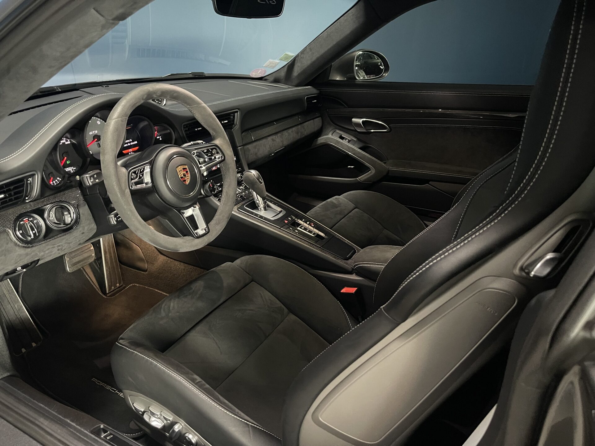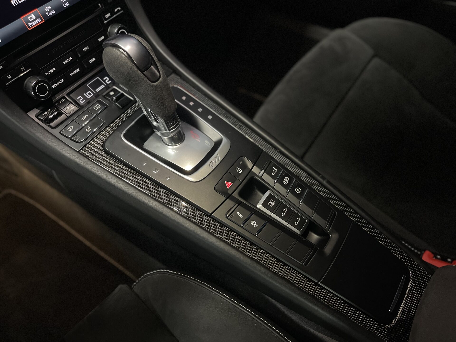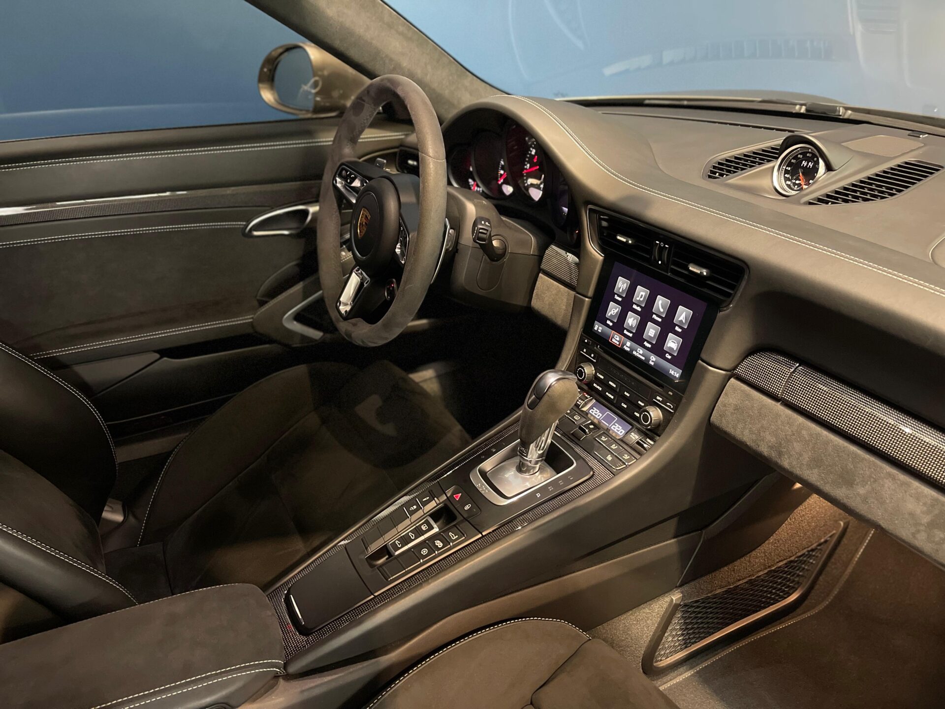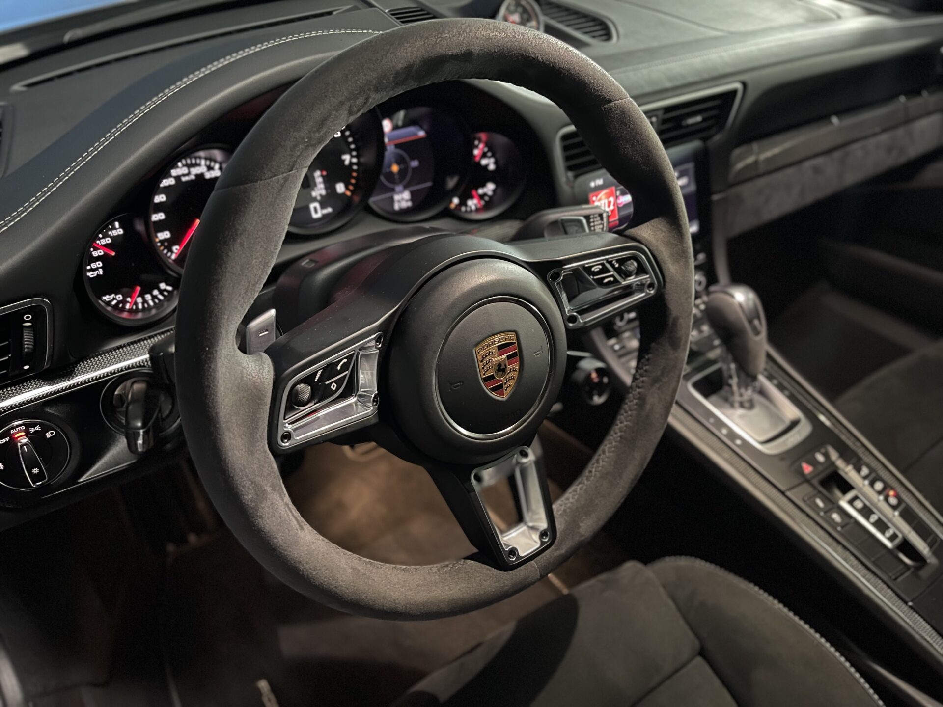 L’intérieur de la Porsche 911 GTS va plus droit au but avec divers ajouts inspirés de la course automobile. De l'Alcantara recouvre presque toutes les surfaces, allant des portières jusqu’au pommeau du levier de vitesses en passant par le volant et les sièges. Clairement, cette 911 met l’accent sur la performance avant tout. Elle se démarque aussi par son volant de plus petit diamètre, ses sièges Sport ainsi que ses emblèmes « GTS » sur les appuie-têtes et les plaques de seuil. Il est possible de remplacer l'alcantara par du cuir, mais pourquoi le feriez-vous? Si c’est une 911 GT3 moins radicale que vous recherchez, ne voulez-vous pas l’habitacle le plus racé possible?