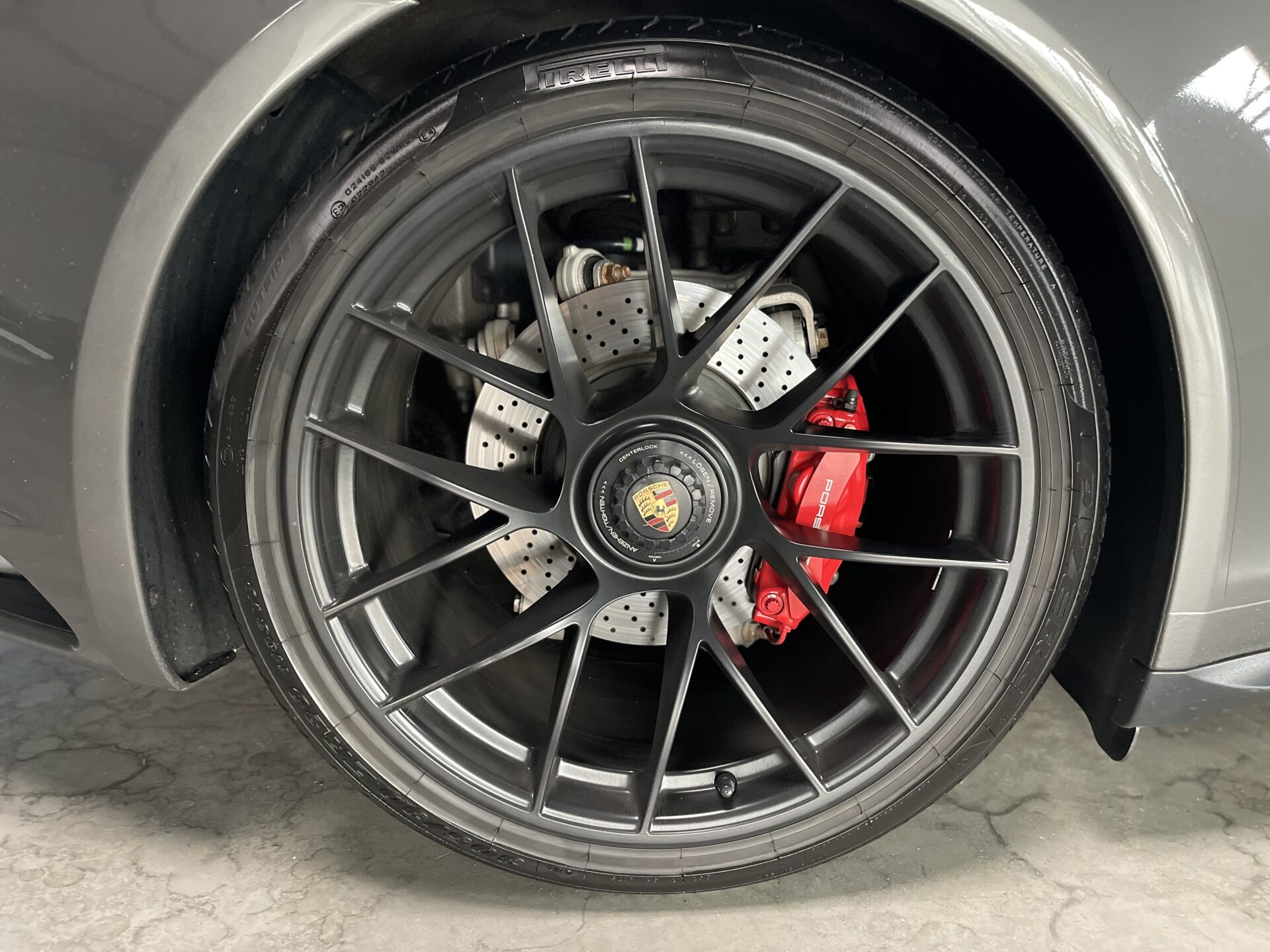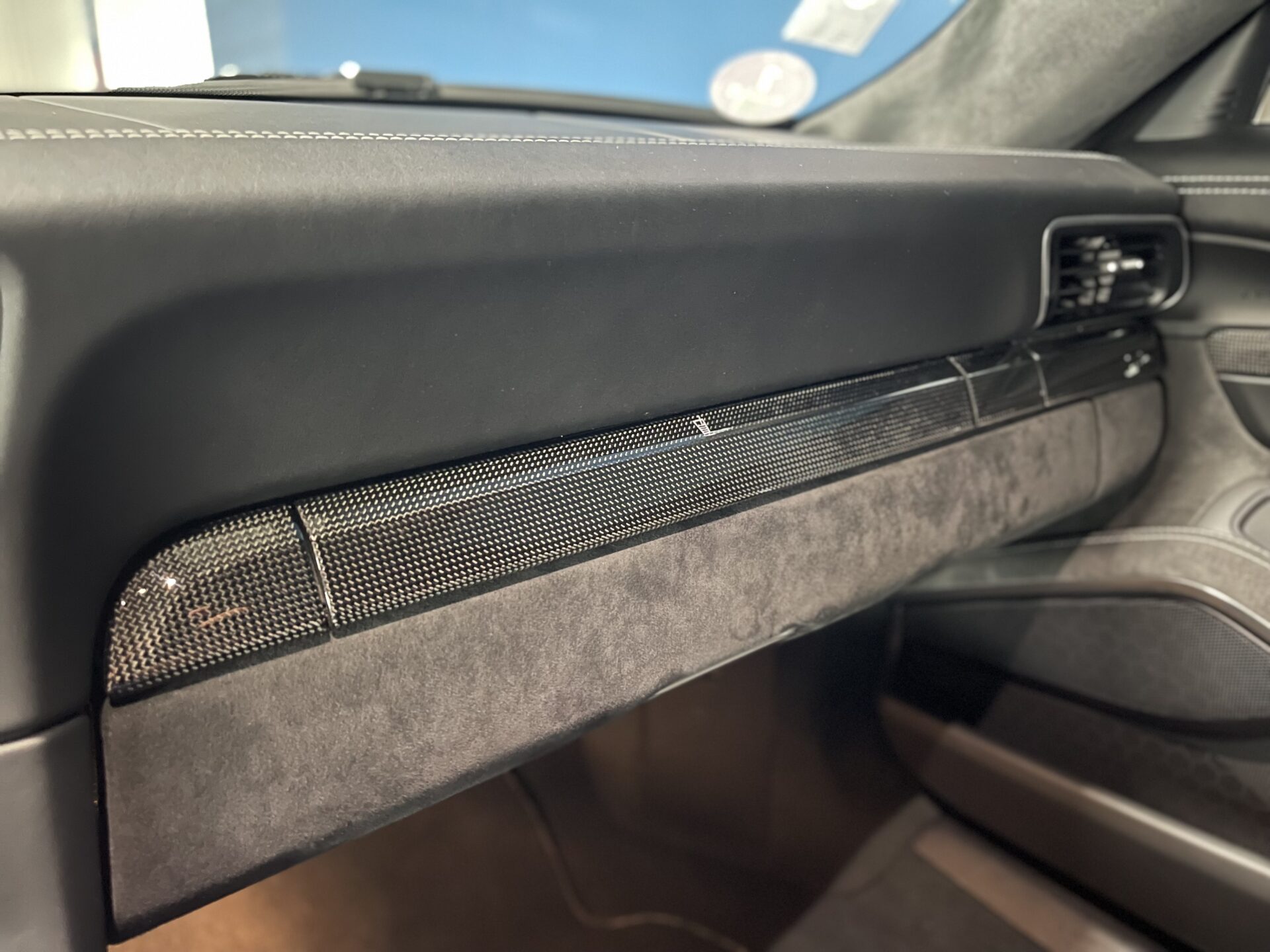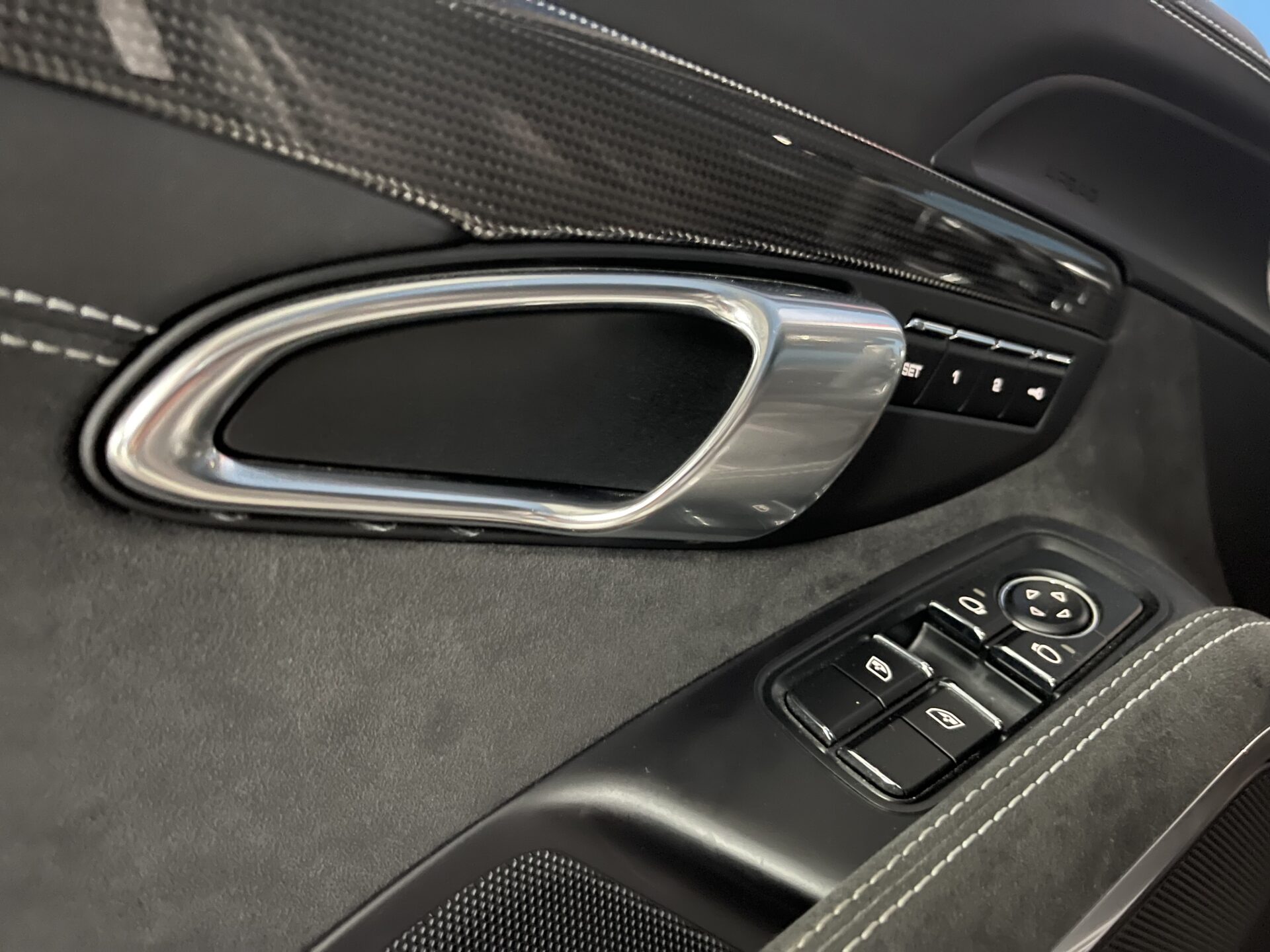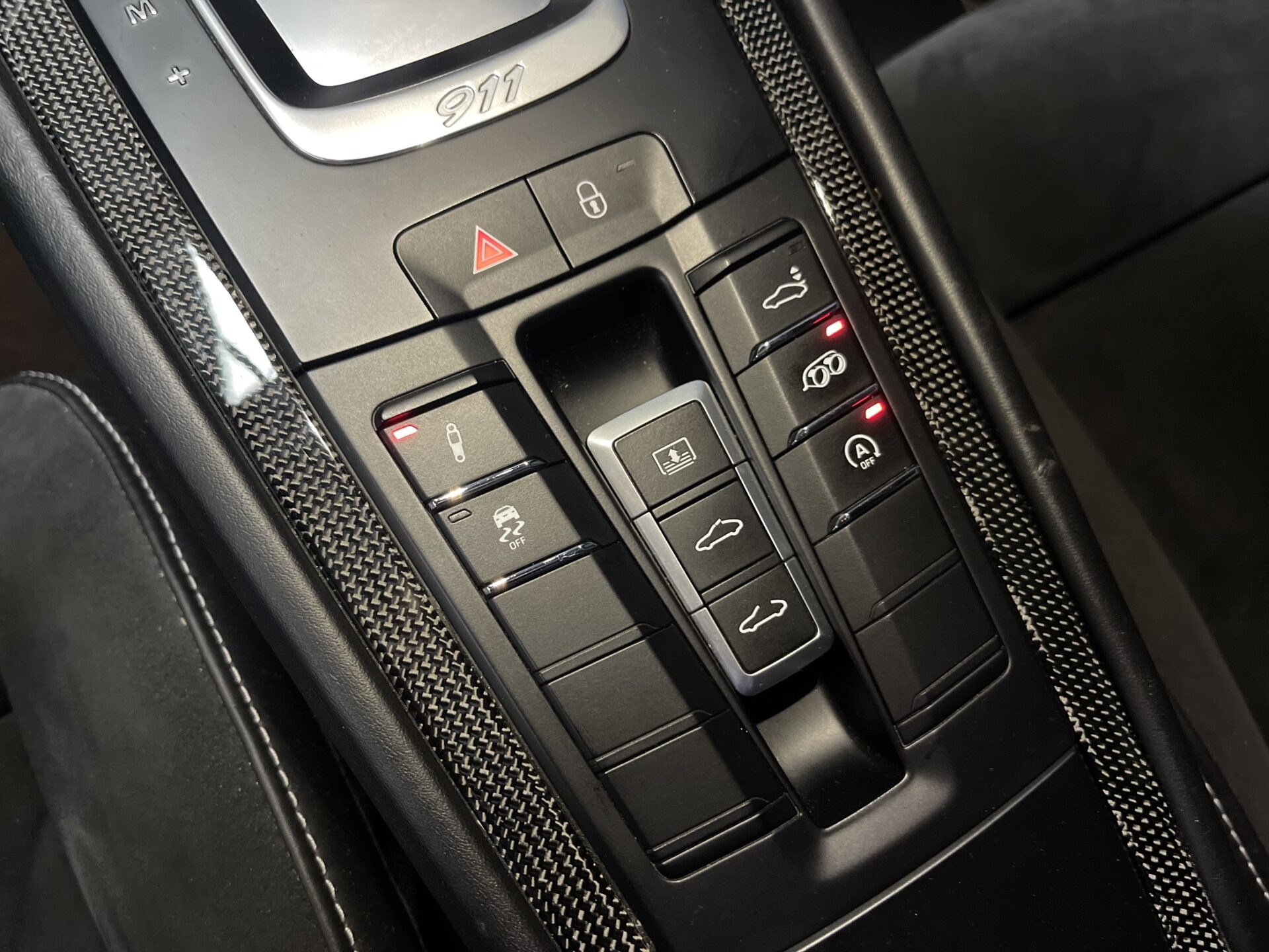 L’intérieur de la Porsche 911 GTS va plus droit au but avec divers ajouts inspirés de la course automobile. De l'Alcantara recouvre presque toutes les surfaces, allant des portières jusqu’au pommeau du levier de vitesses en passant par le volant et les sièges. Clairement, cette 911 met l’accent sur la performance avant tout. Elle se démarque aussi par son volant de plus petit diamètre, ses sièges Sport ainsi que ses emblèmes « GTS » sur les appuie-têtes et les plaques de seuil. Il est possible de remplacer l'alcantara par du cuir, mais pourquoi le feriez-vous? Si c’est une 911 GT3 moins radicale que vous recherchez, ne voulez-vous pas l’habitacle le plus racé possible?