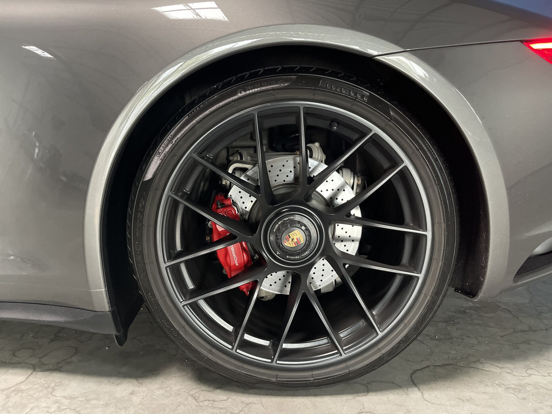 De quelle sorte s’agit-il au juste? D’abord, toutes les 911 GTS possèdent des jantes en alliage noir satiné d’allure plus racée, des phares et des feux teintés ainsi qu’un becquet avant, des rétroviseurs Sport Design, des embouts d’échappement et une barre Targa (modèles Targa seulement) au fini noir. En outre, elles se tiennent plus près du sol que les Carrera et Carrera S et adoptent une carrosserie large normalement réservée aux 911 à traction intégrale.