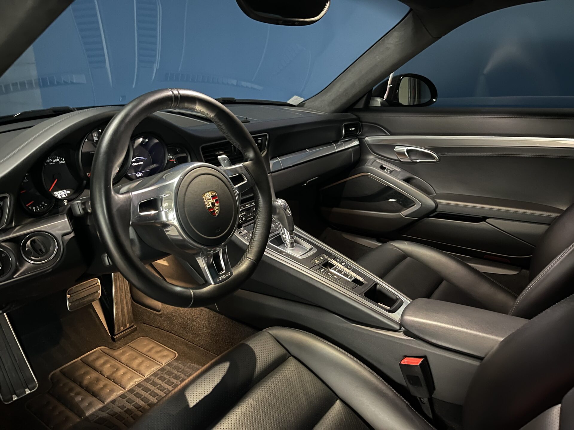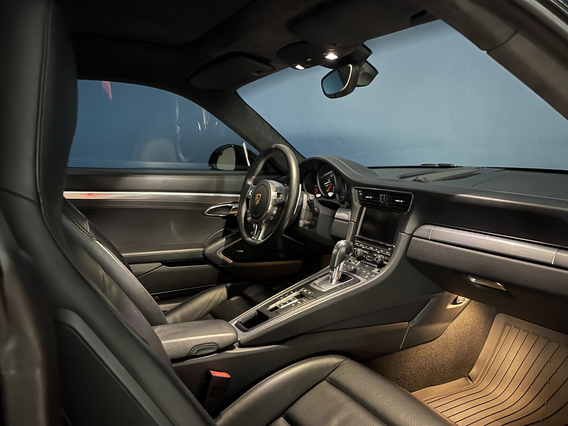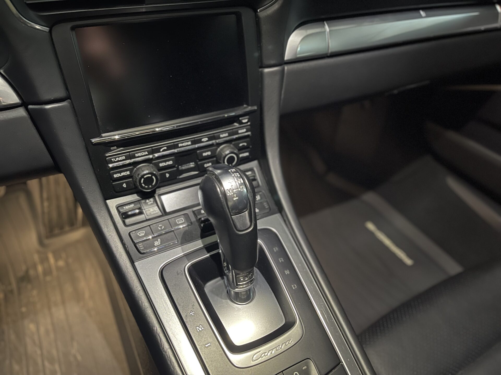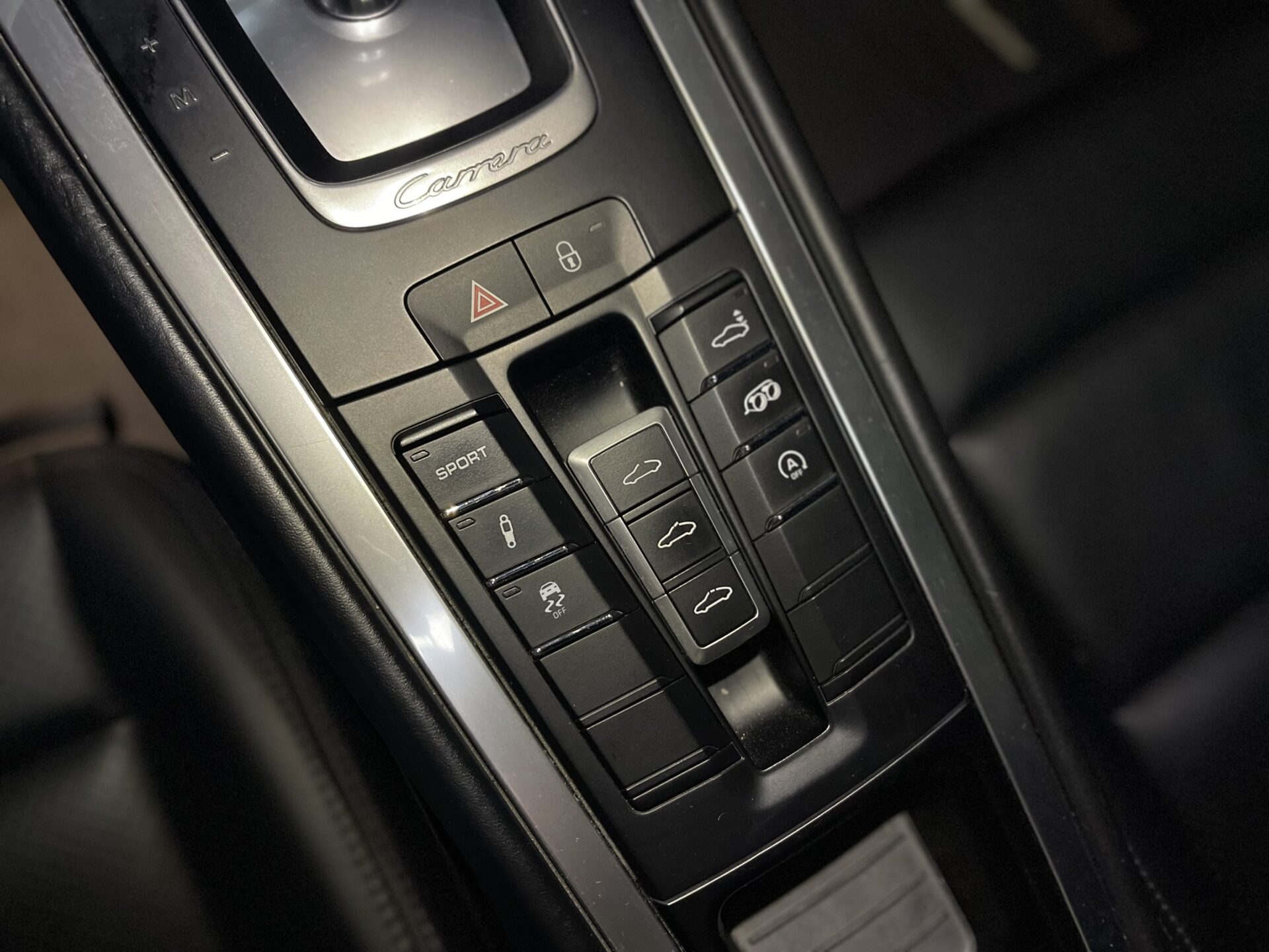 Monter à bord d’une 911 demeure une expérience unique. Sobriété, ergonomie parfaite, on est en terrain connu. Ou presque. Oui, bon nombre de puristes ont décrié la fameuse console centrale inspirée de la Panamera. Ca surprend, bien entendu, mais très honnêtement, On s'y fait très vite, accommodé et la forêt de boutons s’explore avec aisance pour peu que l’on consacre quelques minutes à comprendre le « quoi, comment ». On voit deux énormes avantages à cet agencement : le premier, chaque interrupteur commande une et une seule fonction, évitant ainsi au pilote de devoir fouiller dans l’ordinateur de bord pour effectuer son réglage. Le second concerne plus particulièrement le positionnement du levier de vitesses. Le reproche a souvent été fait que sur la 997, le levier était positionné trop bas sur le tunnel central, trop éloigné... Sur la 991, le levier tombe parfaitement sous la main, là où on l’attend. En termes d’habitabilité, l’empattement augmenté ne profite que partiellement aux passagers arrière, avec 6 mm de plus aux genoux. Par contre, la sensation d’espace à l’avant est réelle.