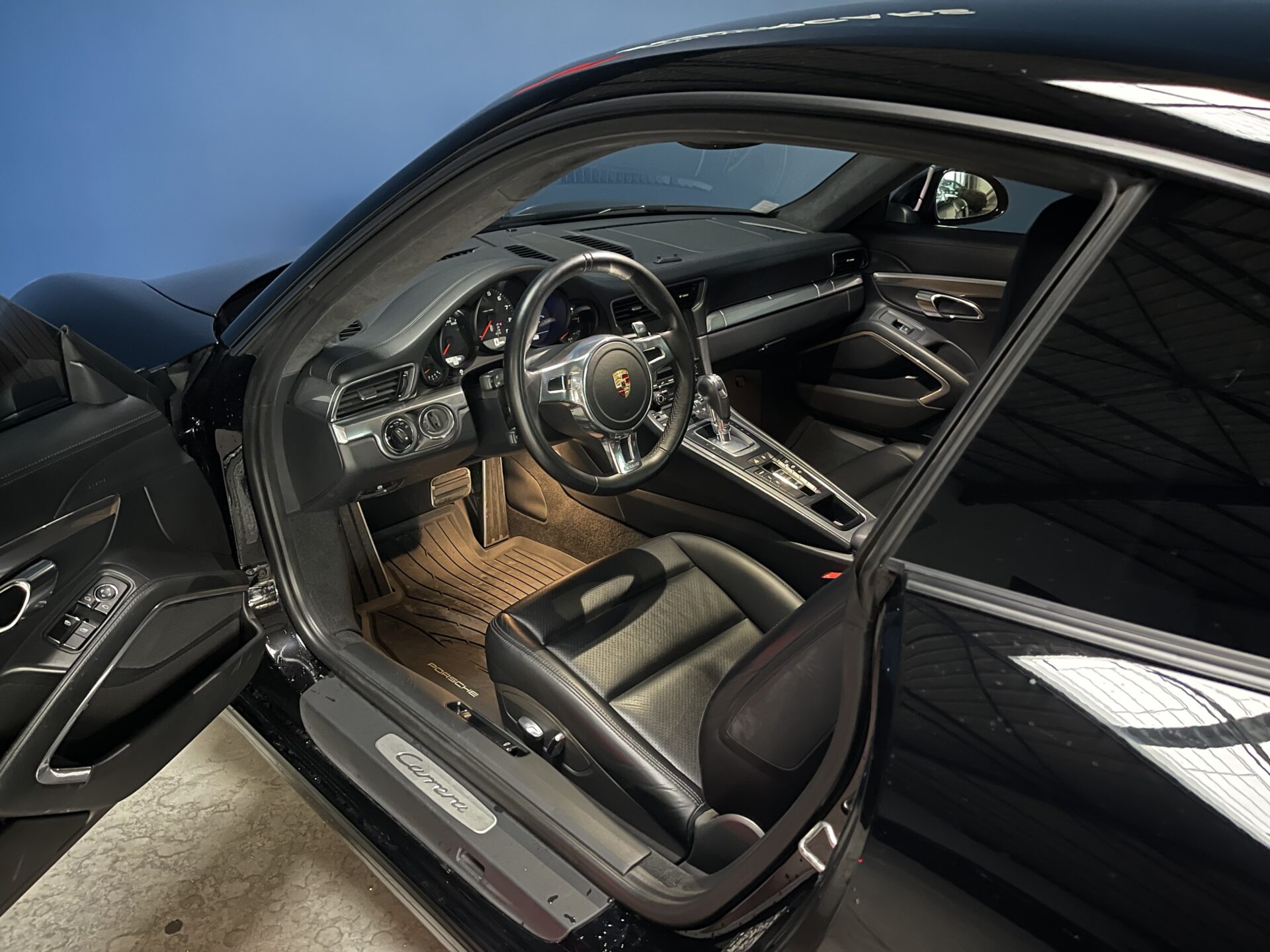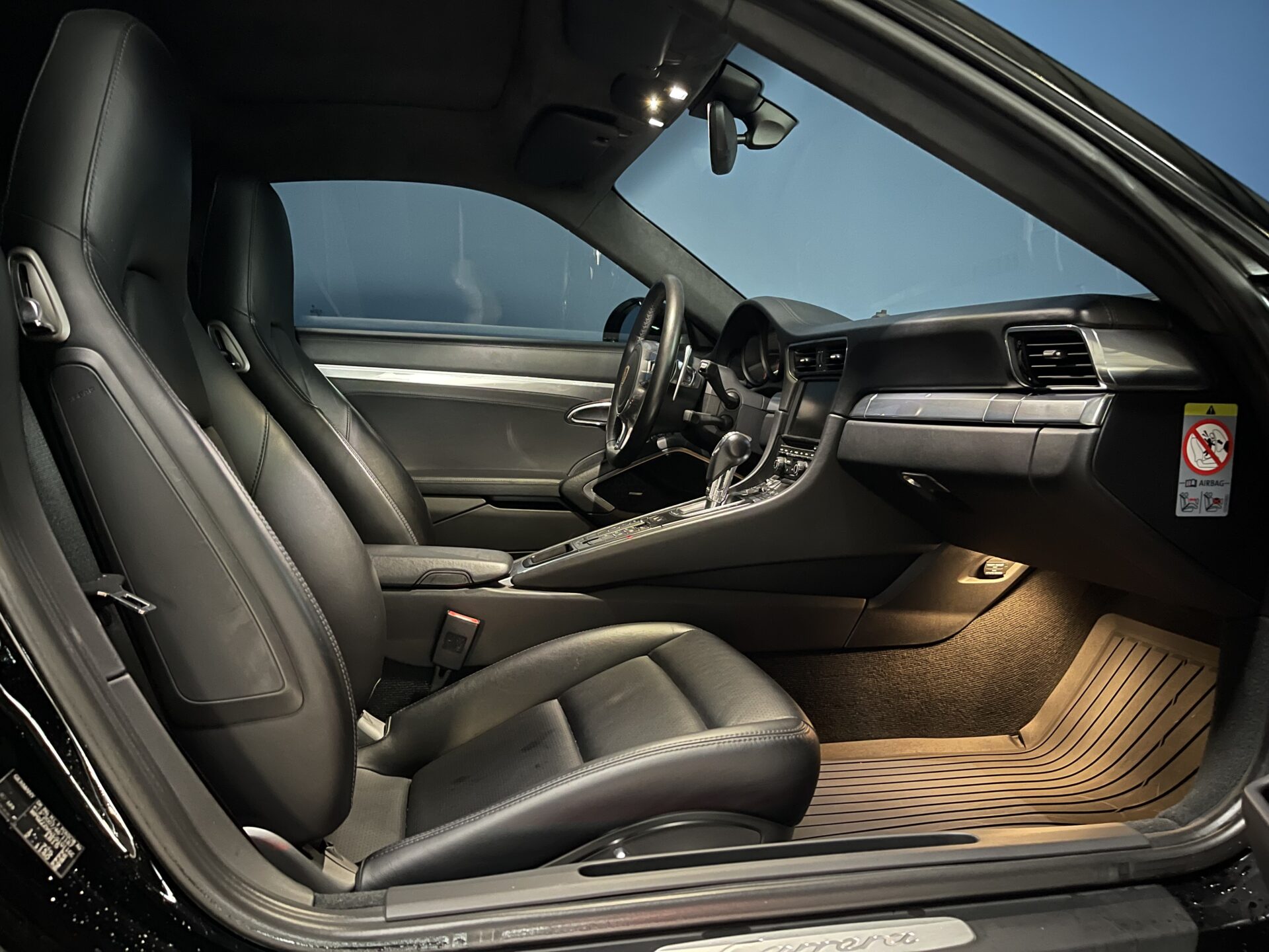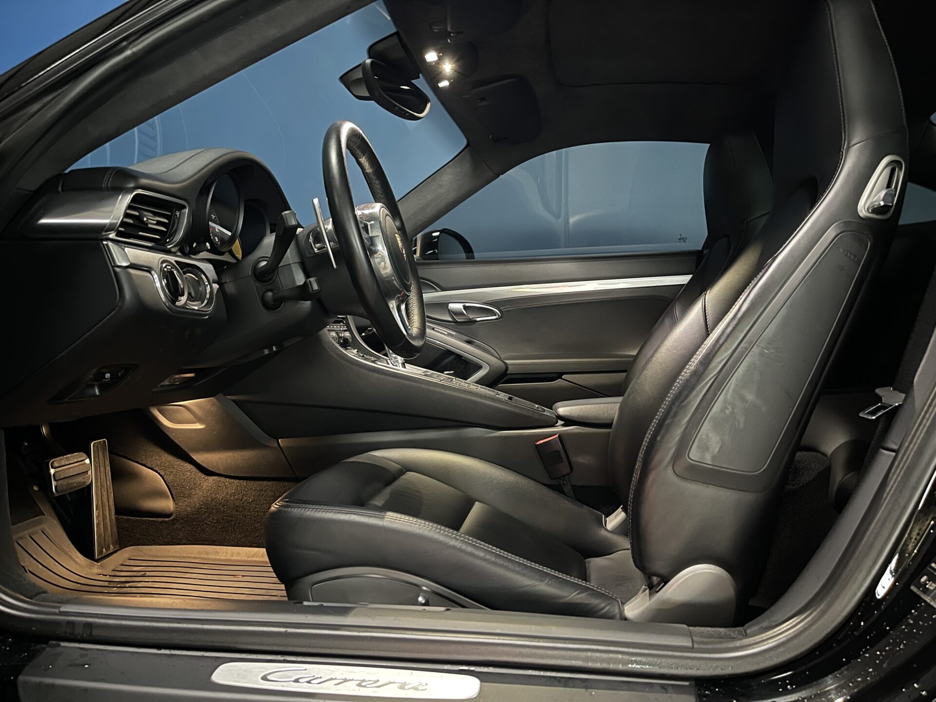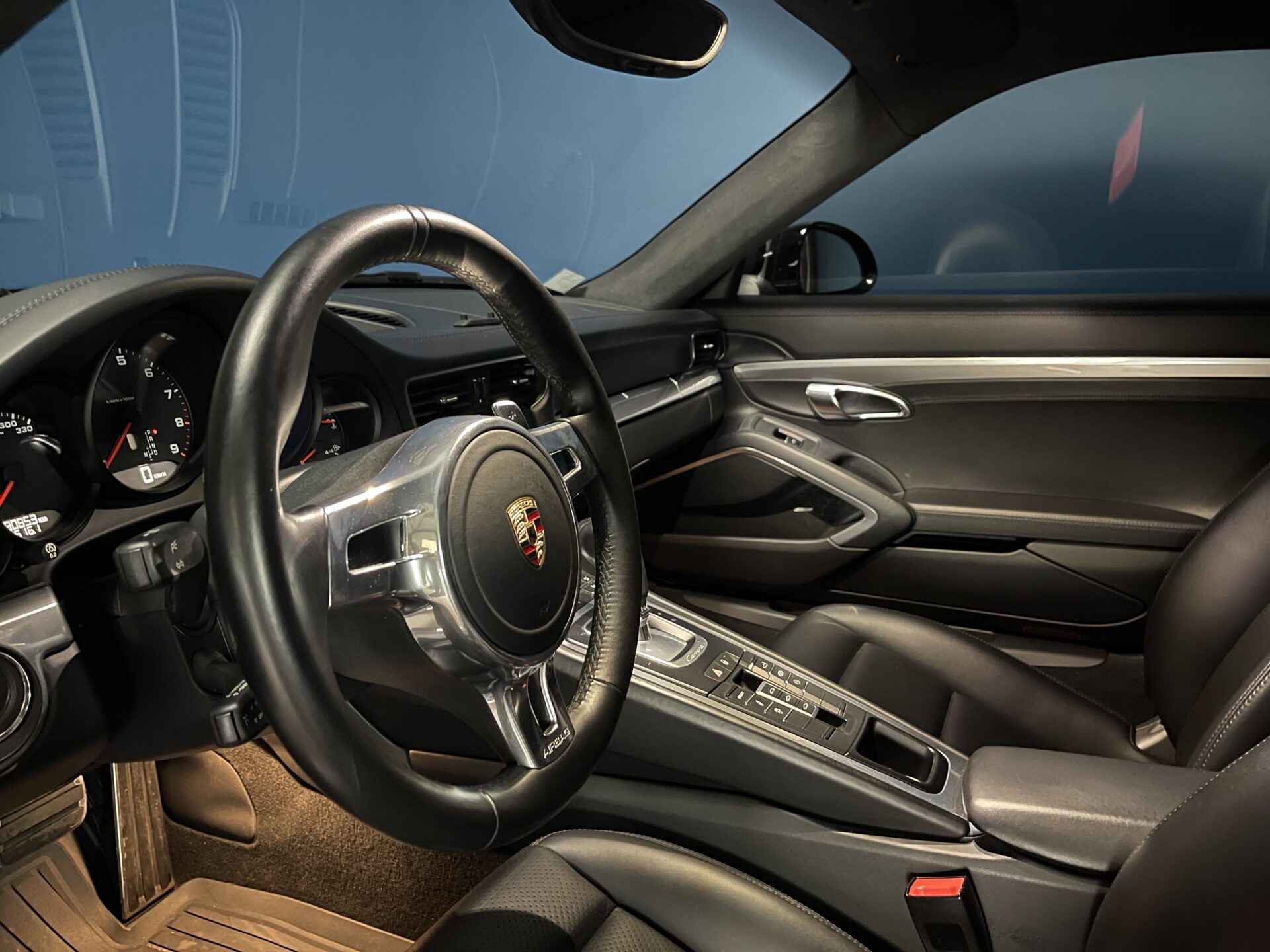 Monter à bord d’une 911 demeure une expérience unique. Sobriété, ergonomie parfaite, on est en terrain connu. Ou presque. Oui, bon nombre de puristes ont décrié la fameuse console centrale inspirée de la Panamera. Ca surprend, bien entendu, mais très honnêtement, On s'y fait très vite, accommodé et la forêt de boutons s’explore avec aisance pour peu que l’on consacre quelques minutes à comprendre le « quoi, comment ». On voit deux énormes avantages à cet agencement : le premier, chaque interrupteur commande une et une seule fonction, évitant ainsi au pilote de devoir fouiller dans l’ordinateur de bord pour effectuer son réglage. Le second concerne plus particulièrement le positionnement du levier de vitesses. Le reproche a souvent été fait que sur la 997, le levier était positionné trop bas sur le tunnel central, trop éloigné... Sur la 991, le levier tombe parfaitement sous la main, là où on l’attend. En termes d’habitabilité, l’empattement augmenté ne profite que partiellement aux passagers arrière, avec 6 mm de plus aux genoux. Par contre, la sensation d’espace à l’avant est réelle.