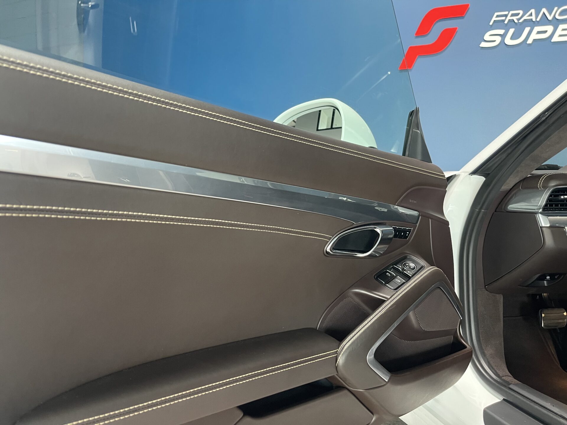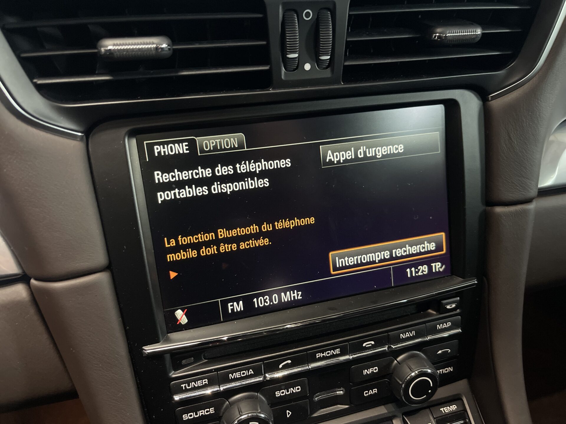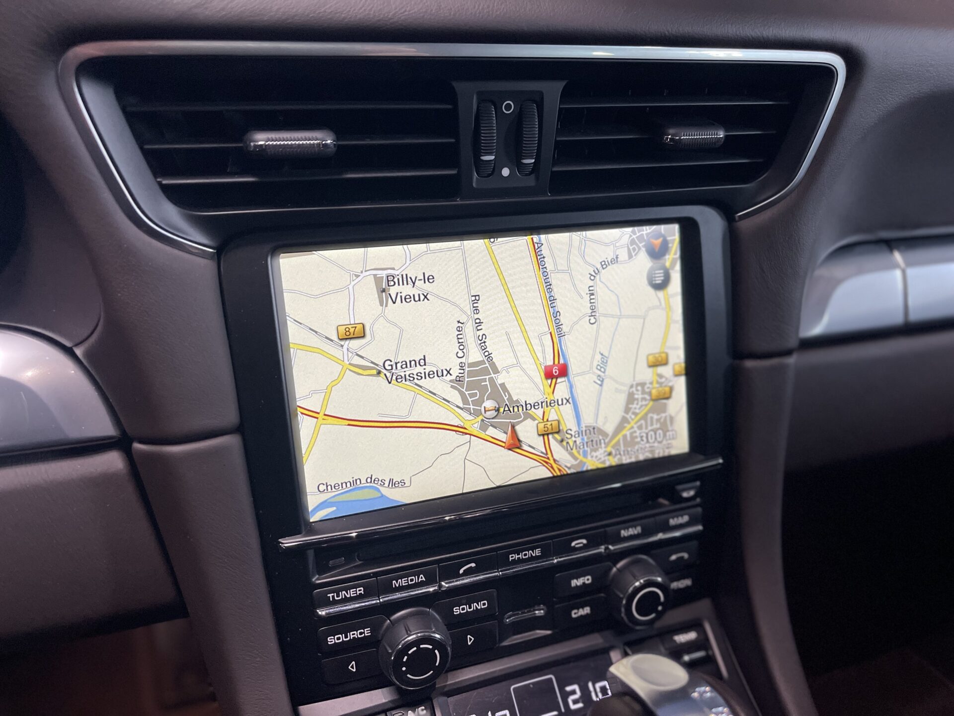 Dans l’habitacle, on trouve rapidement ses marques avec une planche de bord typiquement Porsche, le bloc de 5 compteurs bien connu de la 911, et une qualité de finition au diapason. L’un des compteurs a été remplacé par un écran qui peut afficher soit la navigation, l’ordinateur de bord, ou encore la force G subie !