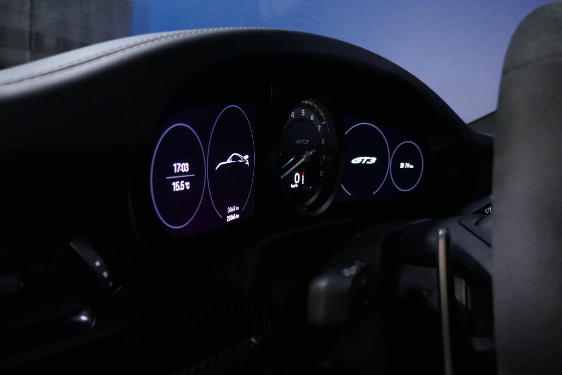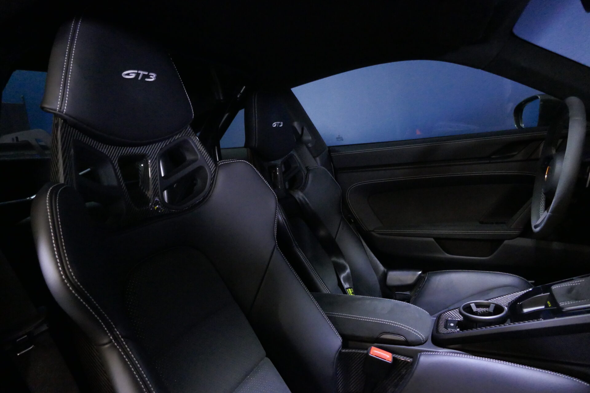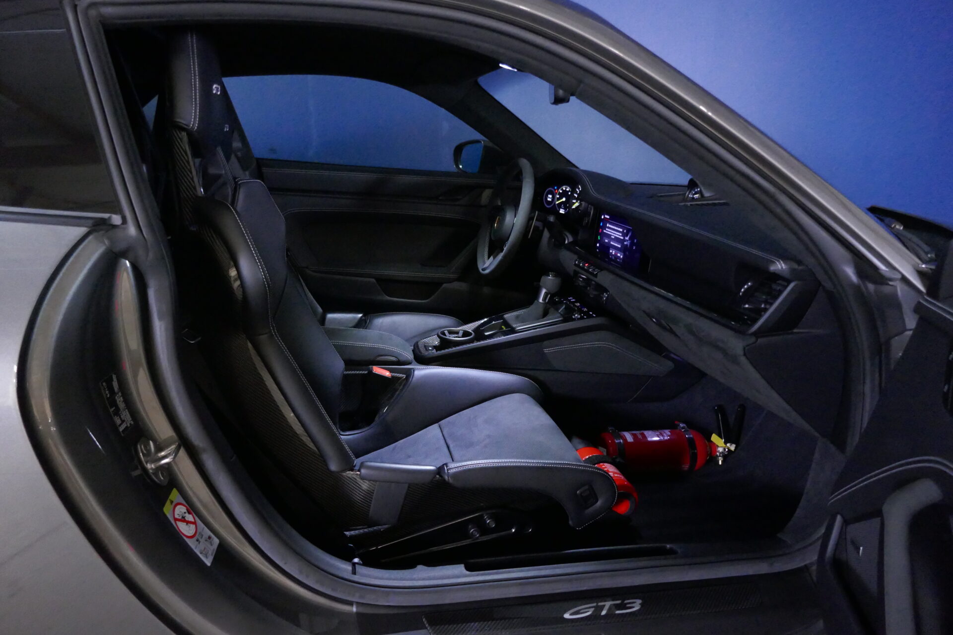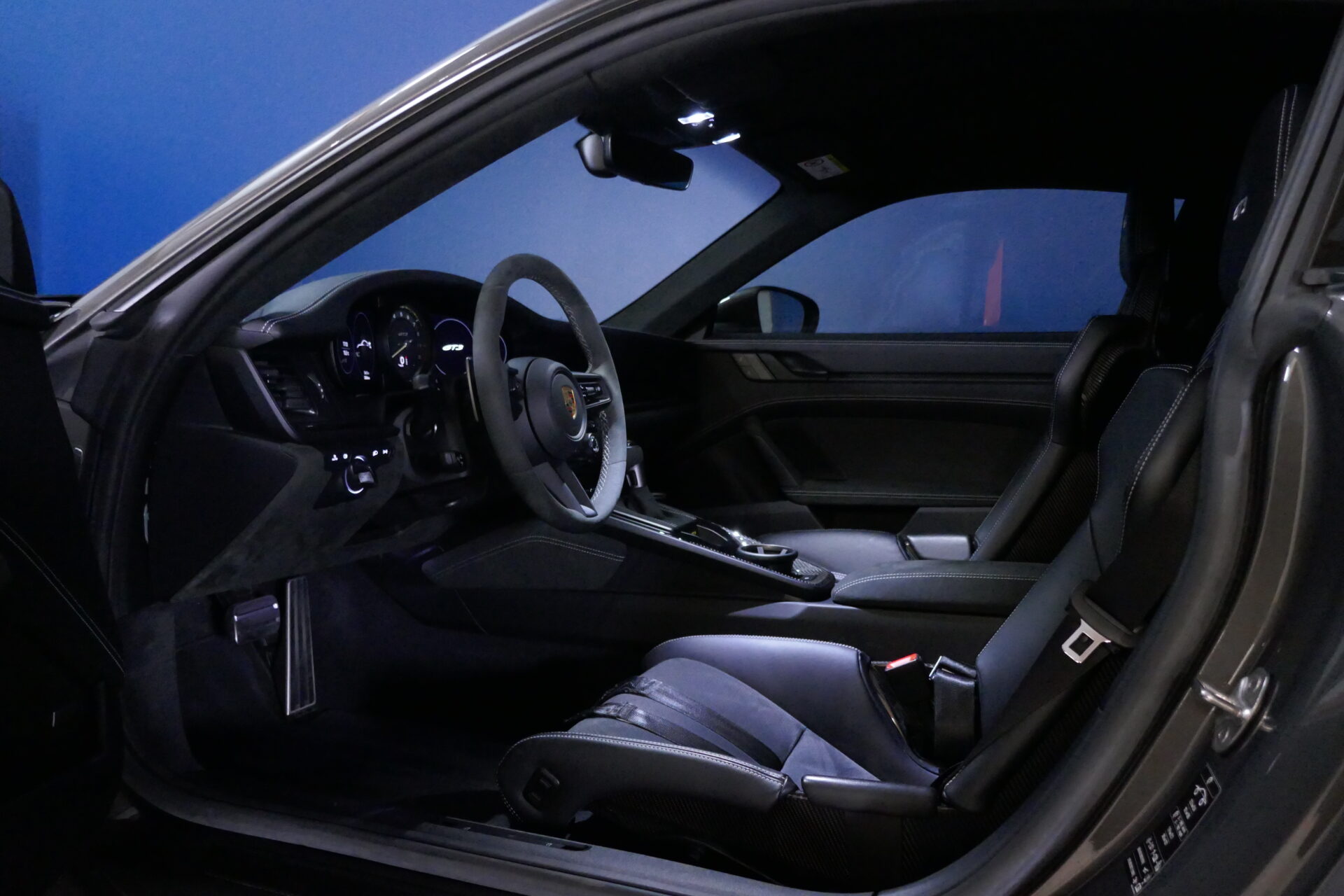 Le poids a d'ailleurs fait l'objet d'une chasse à l'homme sur cette génération 992. Pour limiter sa masse à seulement 1435 kg, les ingénieurs – et chefs de produits… – ont su concocter une fameuse recette amincissante : - 1 kg avec le toit en carbone, - 15 kg en optant pour les baquets fait du même matériau, - 17,7 kg grâce aux freins carbone-céramique… De manière proportionnelle, votre portefeuille s'allègera tout autant, de 18 252 € pour être précis. Mais qui serait assez vulgaire pour parler de prix, quand on sait l'importance d'un tel paramètre ? La GT3 atteint les 100 km/h en seulement 3,4 secondes et sait flirter avec les 320 km/h en vitesse de pointe. Des performances très actuelles, alors que les supercars d'aujourd'hui frôlent souvent les 800 ch et produisent deux fois plus de couple. De l'esbroufe, diront certains.