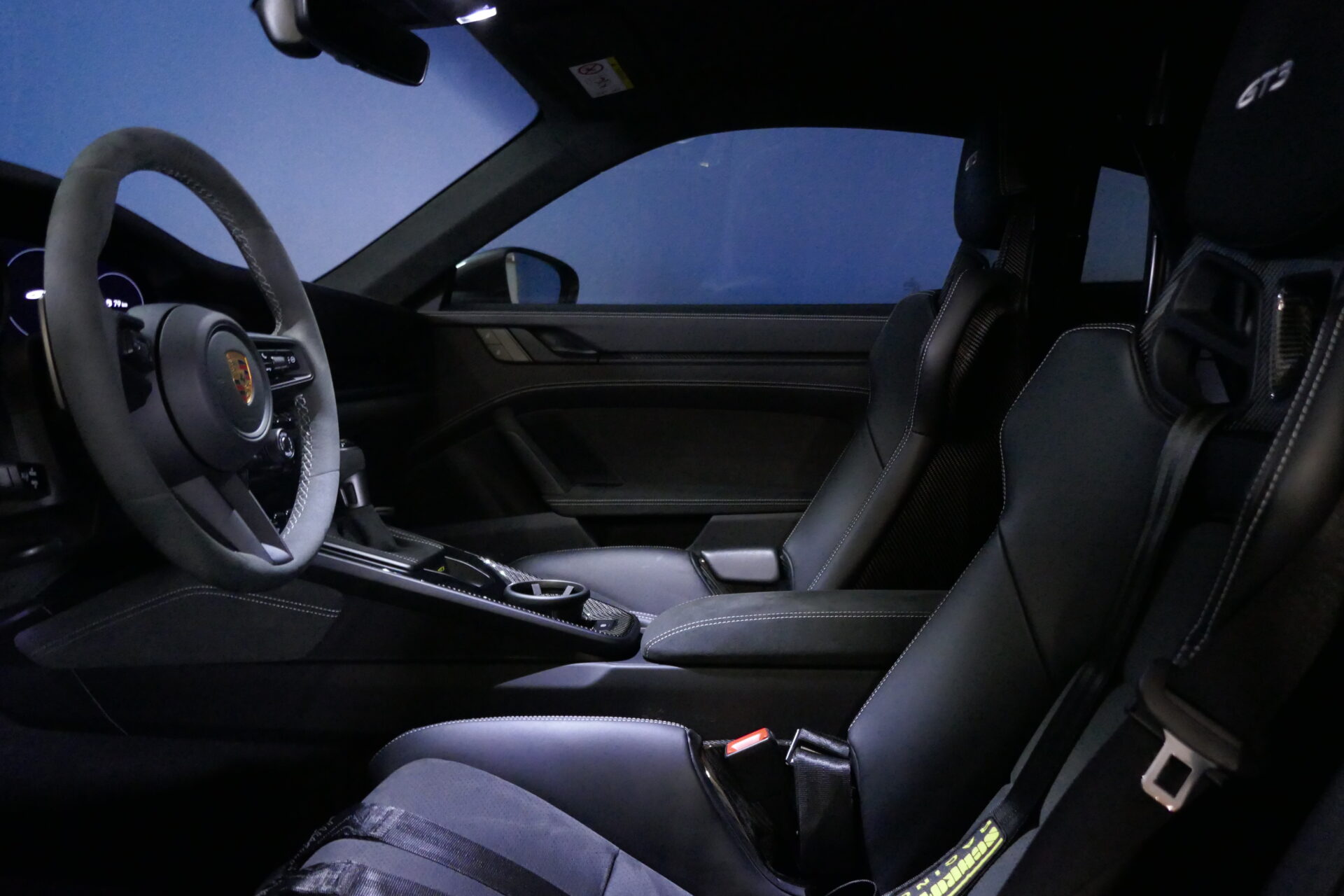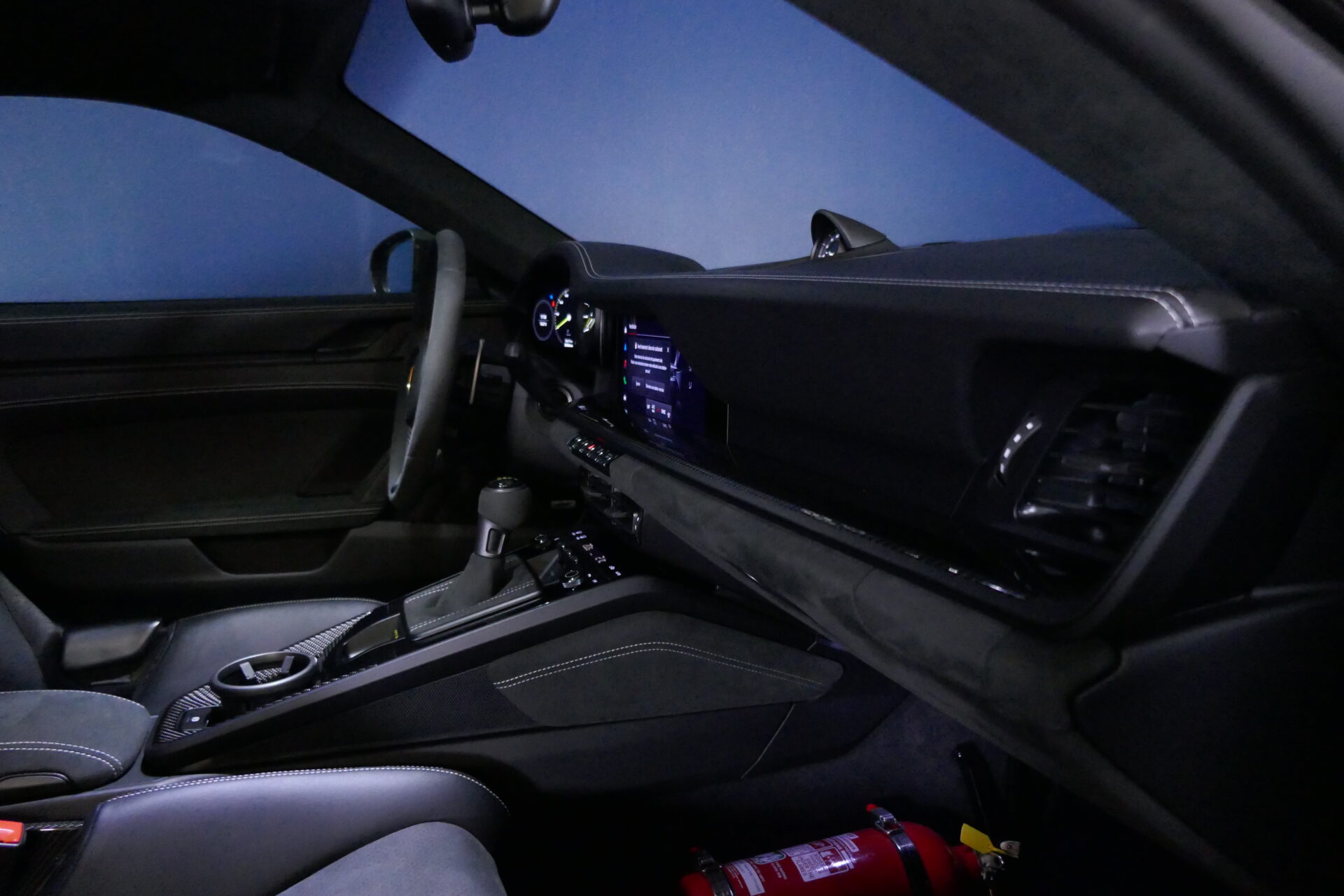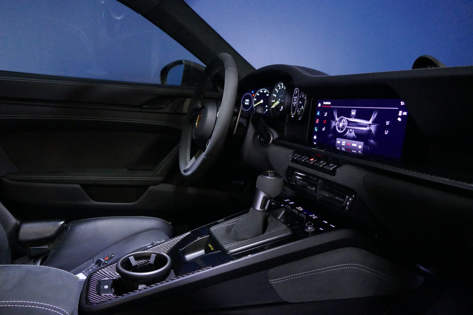 Le poids a d'ailleurs fait l'objet d'une chasse à l'homme sur cette génération 992. Pour limiter sa masse à seulement 1435 kg, les ingénieurs – et chefs de produits… – ont su concocter une fameuse recette amincissante : - 1 kg avec le toit en carbone, - 15 kg en optant pour les baquets fait du même matériau, - 17,7 kg grâce aux freins carbone-céramique… De manière proportionnelle, votre portefeuille s'allègera tout autant, de 18 252 € pour être précis. Mais qui serait assez vulgaire pour parler de prix, quand on sait l'importance d'un tel paramètre ? La GT3 atteint les 100 km/h en seulement 3,4 secondes et sait flirter avec les 320 km/h en vitesse de pointe. Des performances très actuelles, alors que les supercars d'aujourd'hui frôlent souvent les 800 ch et produisent deux fois plus de couple. De l'esbroufe, diront certains.