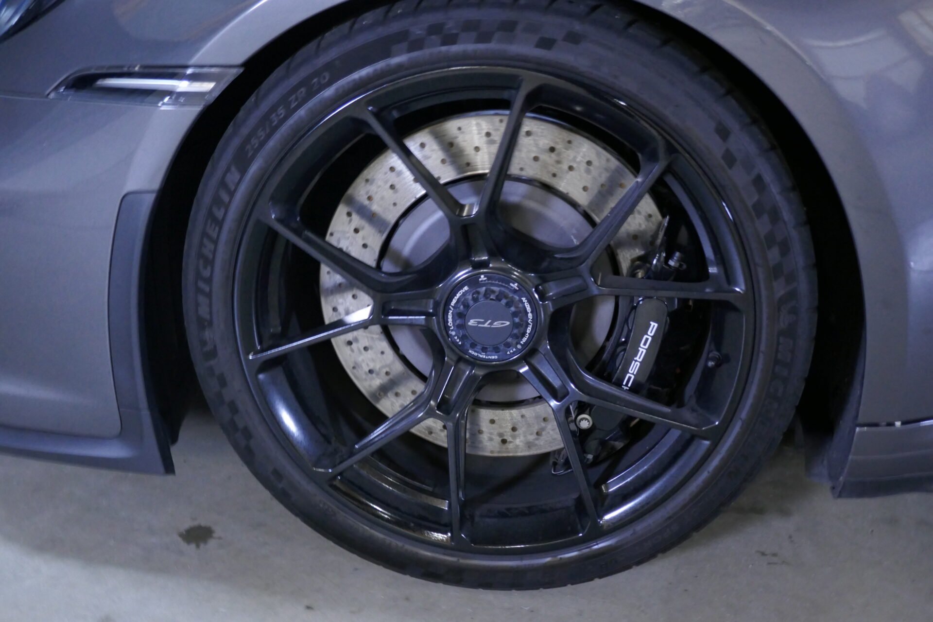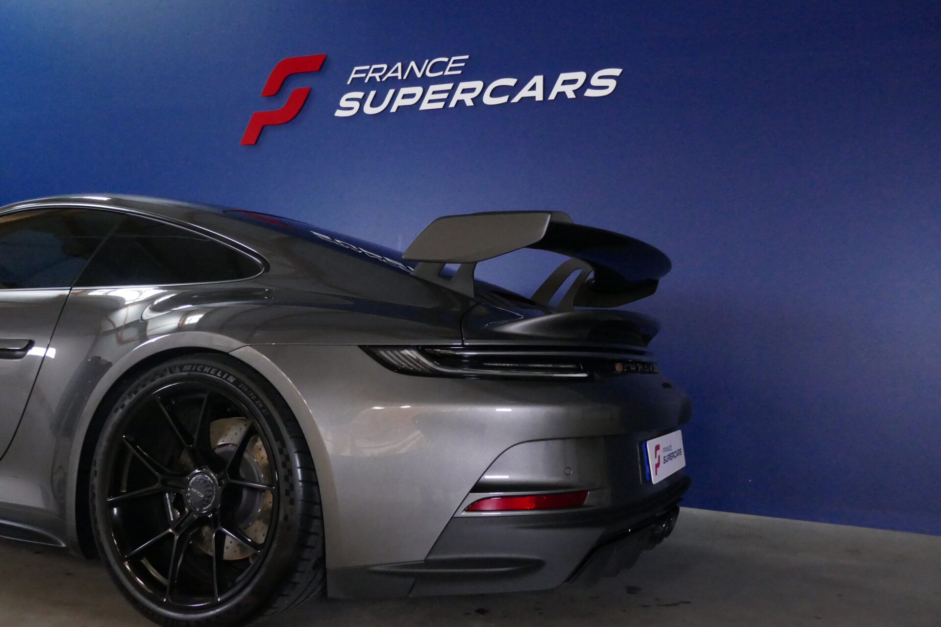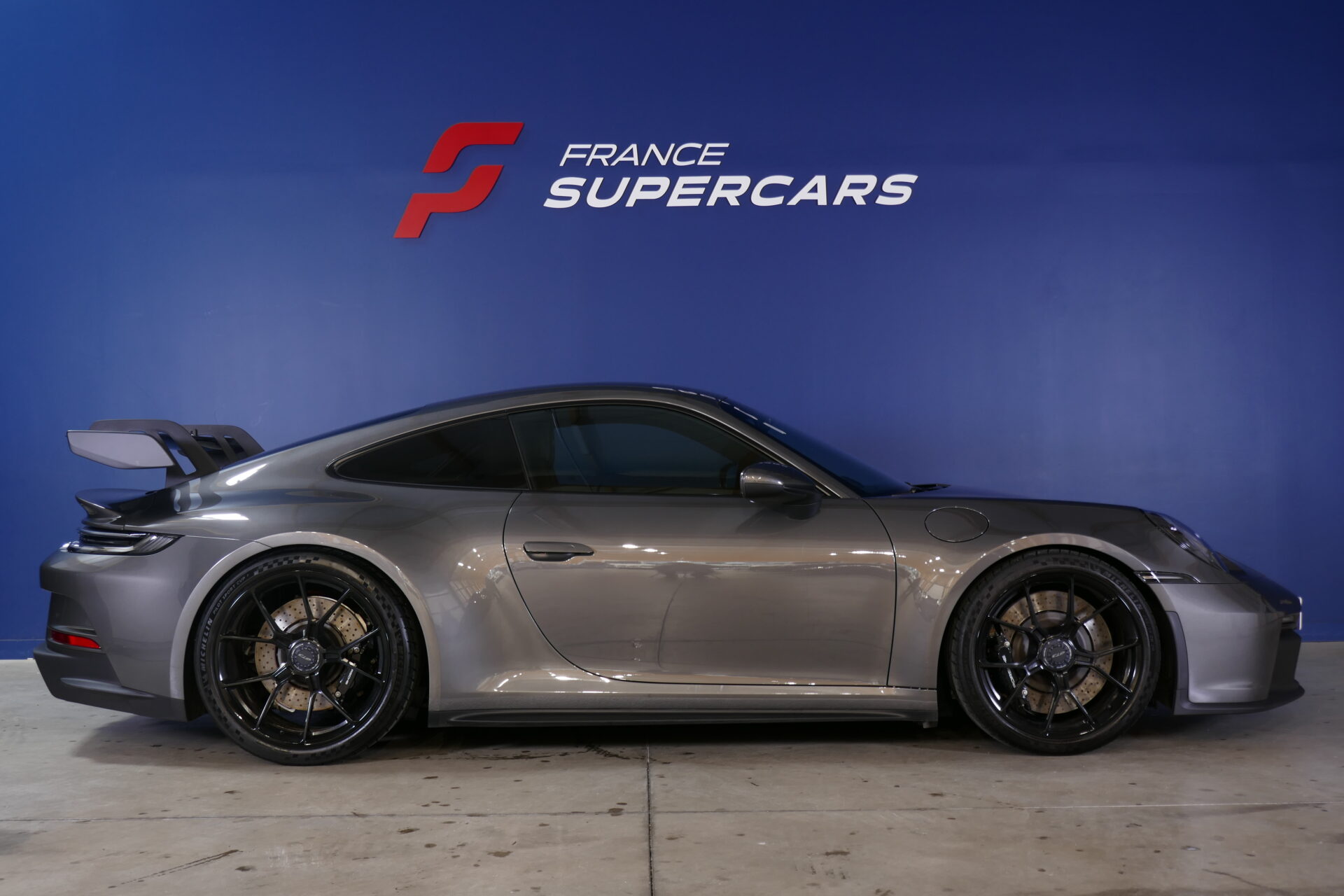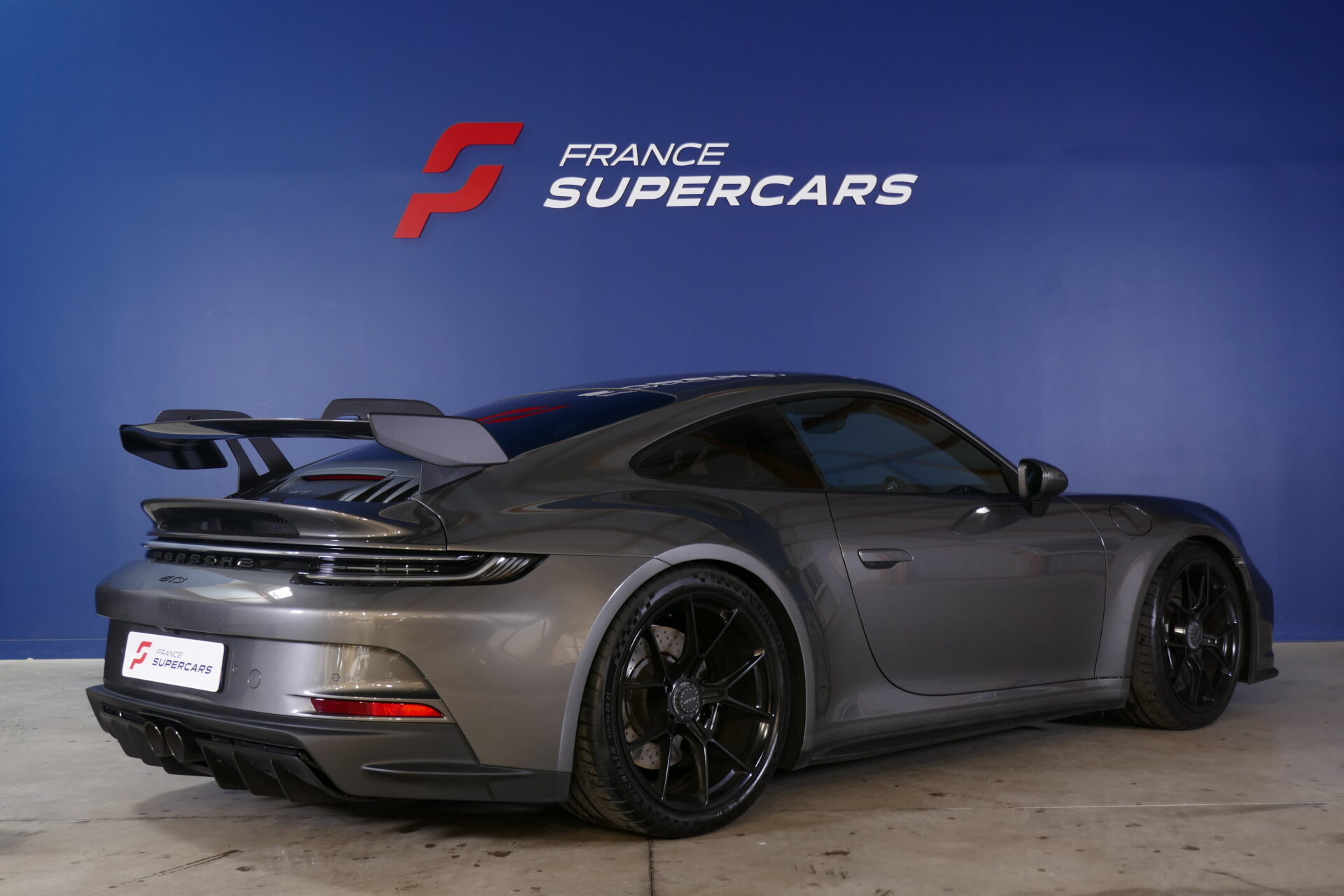 Le poids a d'ailleurs fait l'objet d'une chasse à l'homme sur cette génération 992. Pour limiter sa masse à seulement 1435 kg, les ingénieurs – et chefs de produits… – ont su concocter une fameuse recette amincissante : - 1 kg avec le toit en carbone, - 15 kg en optant pour les baquets fait du même matériau, - 17,7 kg grâce aux freins carbone-céramique… De manière proportionnelle, votre portefeuille s'allègera tout autant, de 18 252 € pour être précis. Mais qui serait assez vulgaire pour parler de prix, quand on sait l'importance d'un tel paramètre ? La GT3 atteint les 100 km/h en seulement 3,4 secondes et sait flirter avec les 320 km/h en vitesse de pointe. Des performances très actuelles, alors que les supercars d'aujourd'hui frôlent souvent les 800 ch et produisent deux fois plus de couple. De l'esbroufe, diront certains.