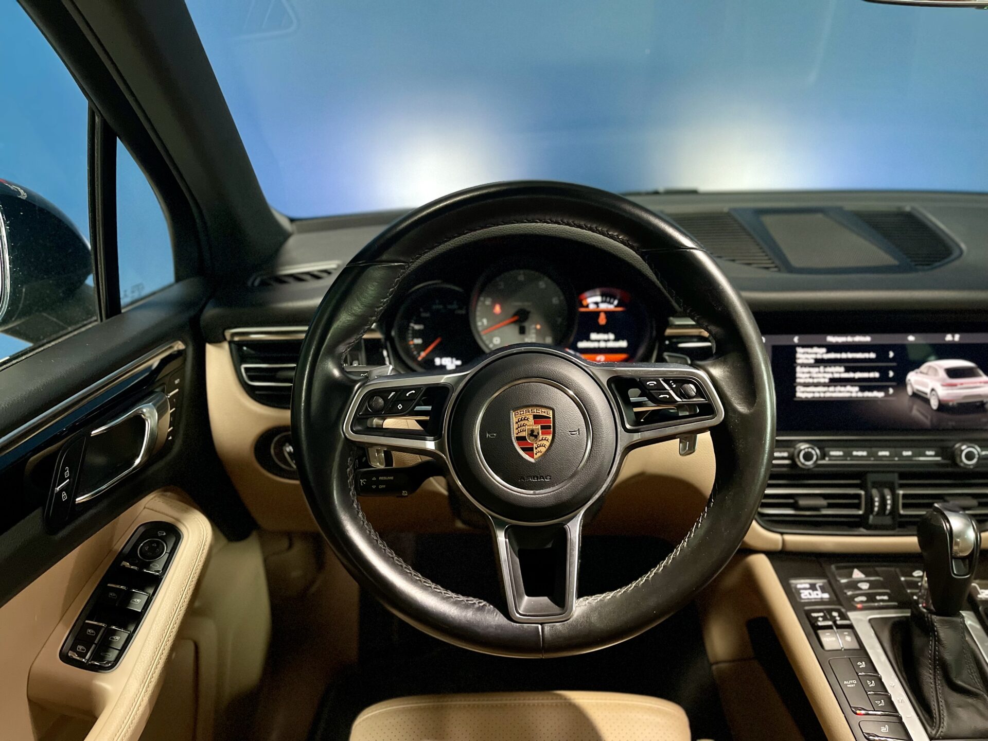 À l'intérieur, le Macan reçoit un plus grand écran central, qui est passé de 7,2 à 10,9 pouces. Les graphismes de cet écran sont jolis, et sa fluidité est exemplaire. Le constructeur a ajouté le superbe volant de la 911. Derrière le volant, le Macan a toujours une instrumentation analogique caractérisée par trois compteurs.