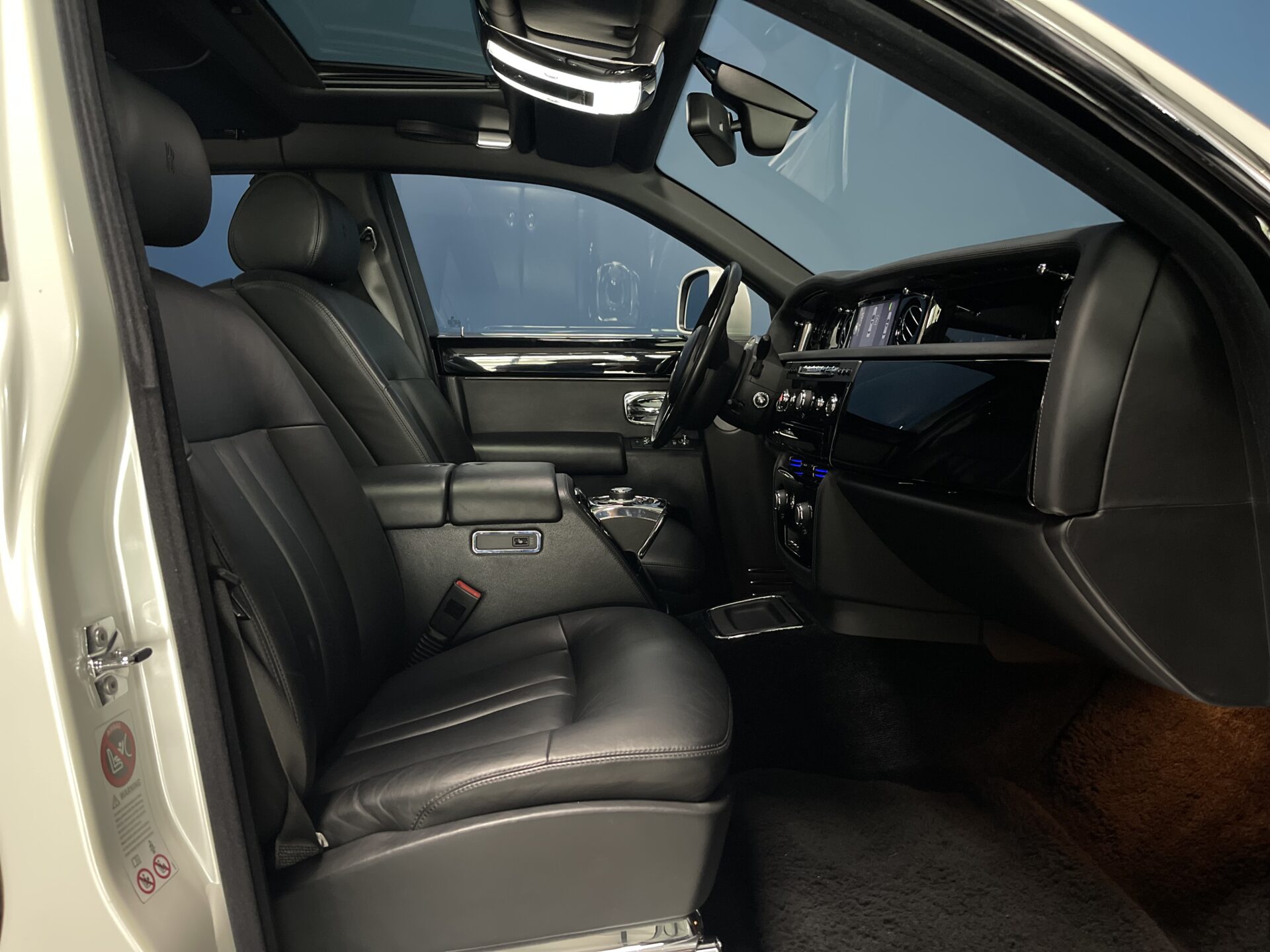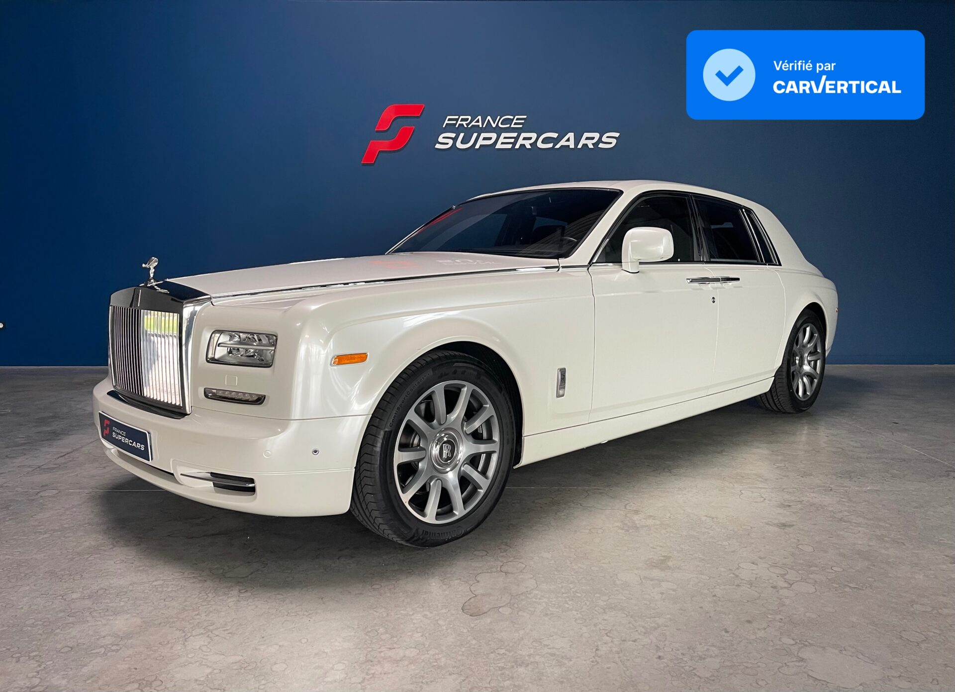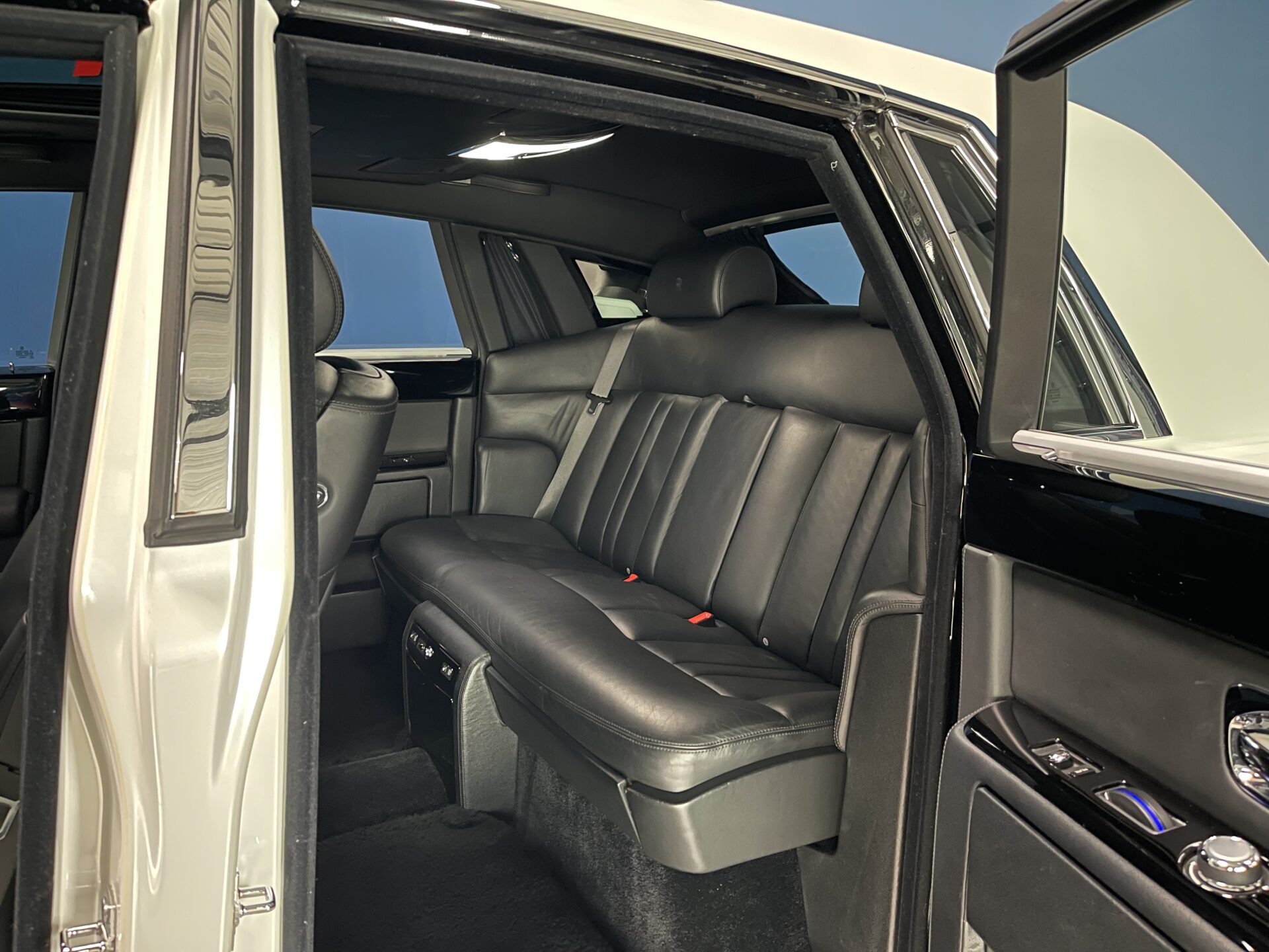 Notre Rolls Royce Phantom est une seconde main totalisant moins de 88 900 kms et sortant d'entretien de chez Rolls Geneve. Elle à un covering complet blanc diamant qui recouvre une peinture Noir phantom.