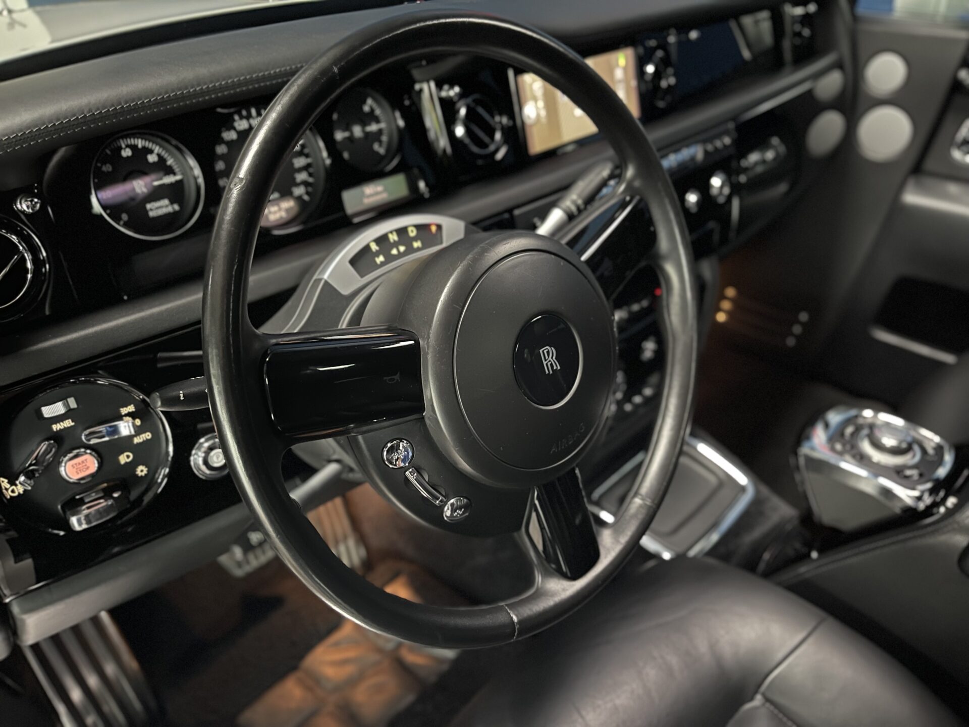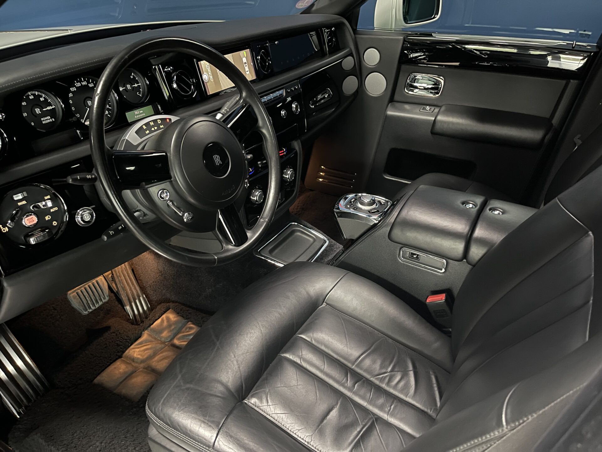 Pas de fioritures et de signes apparents de technologies de pointe comme cela peut l’être sur la Bentley Mulsanne. Pas de commandes au volant, ni de levier de vitesse central à tendance sportive. Juste un modeste Commodo "spécial chauffeur de maître" à trois positions, arrière, neutre et marche avant.
